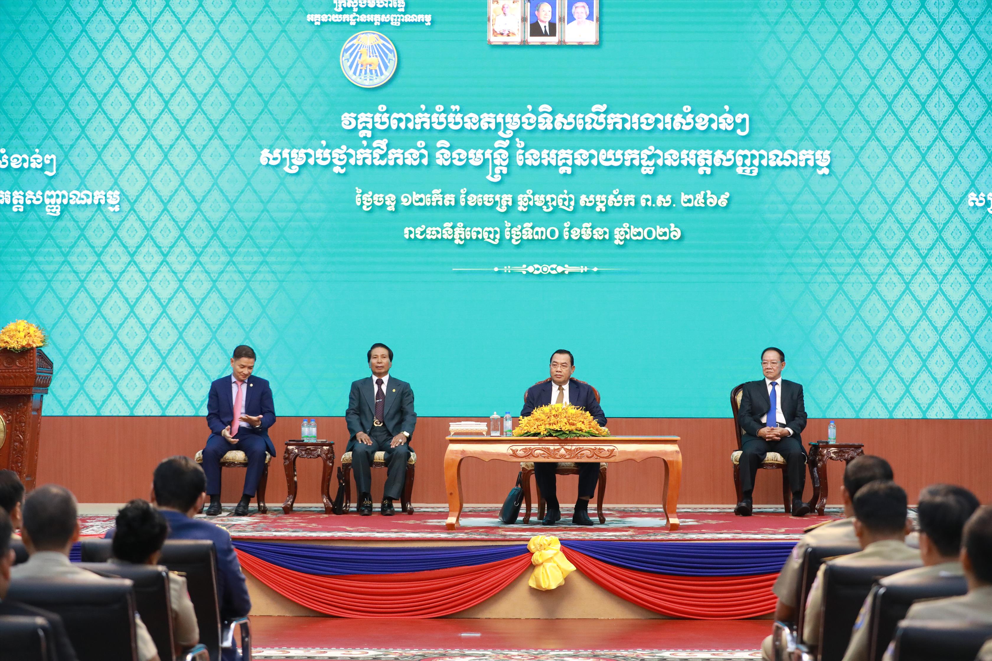 (ភ្នំពេញ)៖ ដោយទទួលបានការអនុញ្ញាតពីលោកអភិសន្តិបណ្ឌិត ស សុខា ឧបនាយករដ្ឋមន្ត្រី រដ្ឋមន្ត្រីក្រសួងមហាផ្ទៃ នៅថ្ងៃទី៣០ ខែមីនា ឆ្នាំ២០២៦ អគ្គនាយកដ្ឋានអត្តសញ្ញាណកម្ម បានរៀបចំ «វគ្គបំពាក់បំប៉នតម្រង់ ទិសលើការងារសំខាន់ៗ សម្រាប់ថ្នាក់ដឹកនាំ និងមន្រ្តី នៃអគ្គនាយកដ្ឋានអត្តសញ្ញាណកម្ម» ដែលបានប្រព្រឹត្តទៅដោយរលូន និងទទួលបានលទ្ធផលគួរជាទីគាប់ប្រសើរ ក្រោមវត្តមានលោក ប៉ាវ ហម ផាន រដ្ឋលេខាធិការក្រសួងមហាផ្ទៃ។