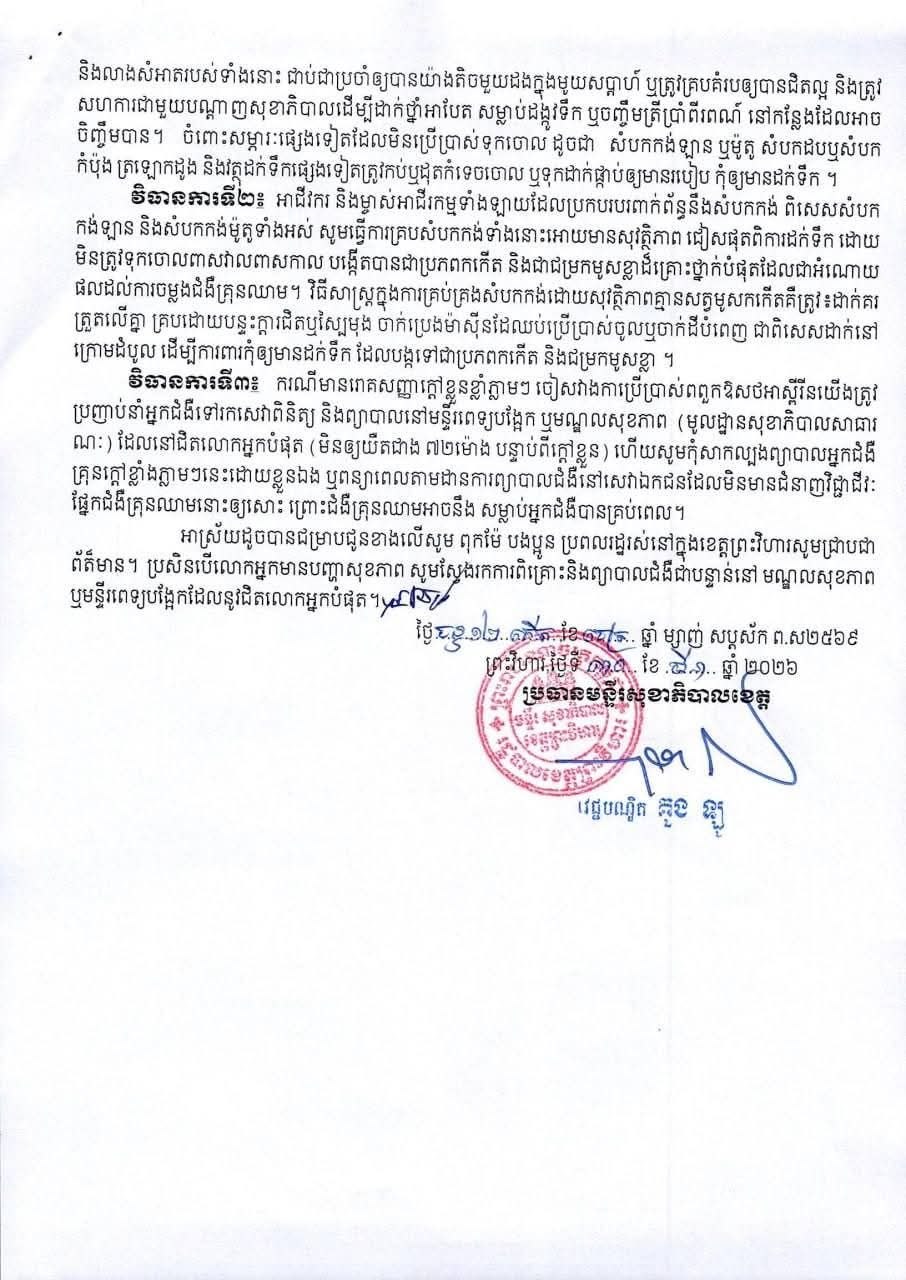 ខាងក្រោមនេះជាសេចក្តីជូនដំណឹងរបស់មន្ទីរសុខាភិបាលខេត្តព្រះវិហារ៖