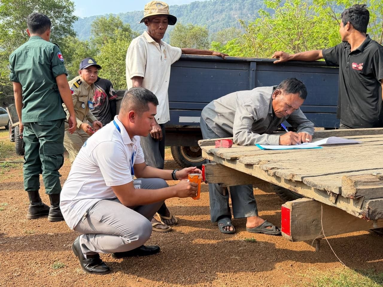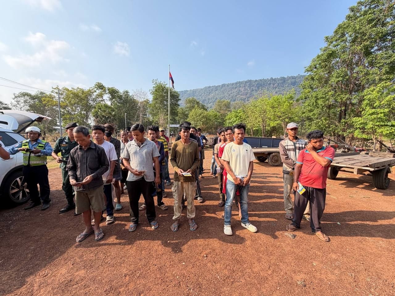 (ព្រះវិហារ)៖ ក្រុមការងារនៃមន្ទីរសាធារណការ និងដឹកជញ្ជូនខេត្តព្រះវិហារ នៅថ្ងៃទី៣១ ខែមីនា ឆ្នាំ២០២៦ បានសហការជាមួយនគរបាលចរាចរណ៍ស្រុកត្បែងមានជ័យ និងអាជ្ញាធរស្រុក ចុះអនុវត្តសកម្មភាពផ្សព្វផ្សាយច្បាប់ស្តីពី ចរាចរណ៍ផ្លូវគោក ជូនដល់ប្រជាពលរដ្ឋ ដែលជាអ្នកបើកបរគោយន្តកន្ត្រៃ ចំនួន ៥៣នាក់ នៅឃុំឈានមុខ ស្រុកត្បែងមានជ័យ។