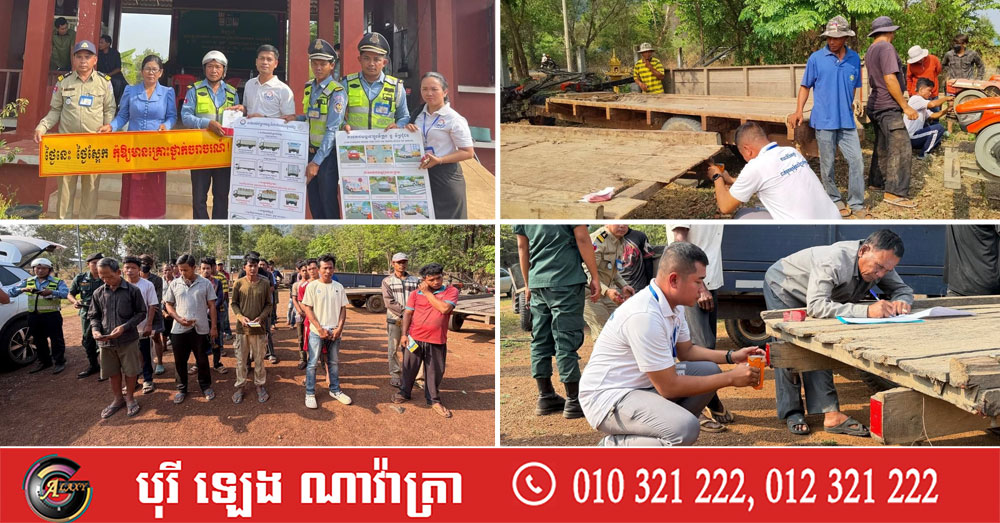 មន្ទីរសាធារណការខេត្តព្រះវិហារ សហការជាមួយអាជ្ញាធរ និងសមត្ថកិច្ច ផ្សព្វផ្សាយច្បាប់ស្តីពីចរាចរណ៍ផ្លូវគោក និងបិទស្ទីកឃ័រចំណាំងផ្លាតលើគោយន្តកន្ត្រៃជាង៥០គ្រឿង នៅស្រុកត្បែងមានជ័យ