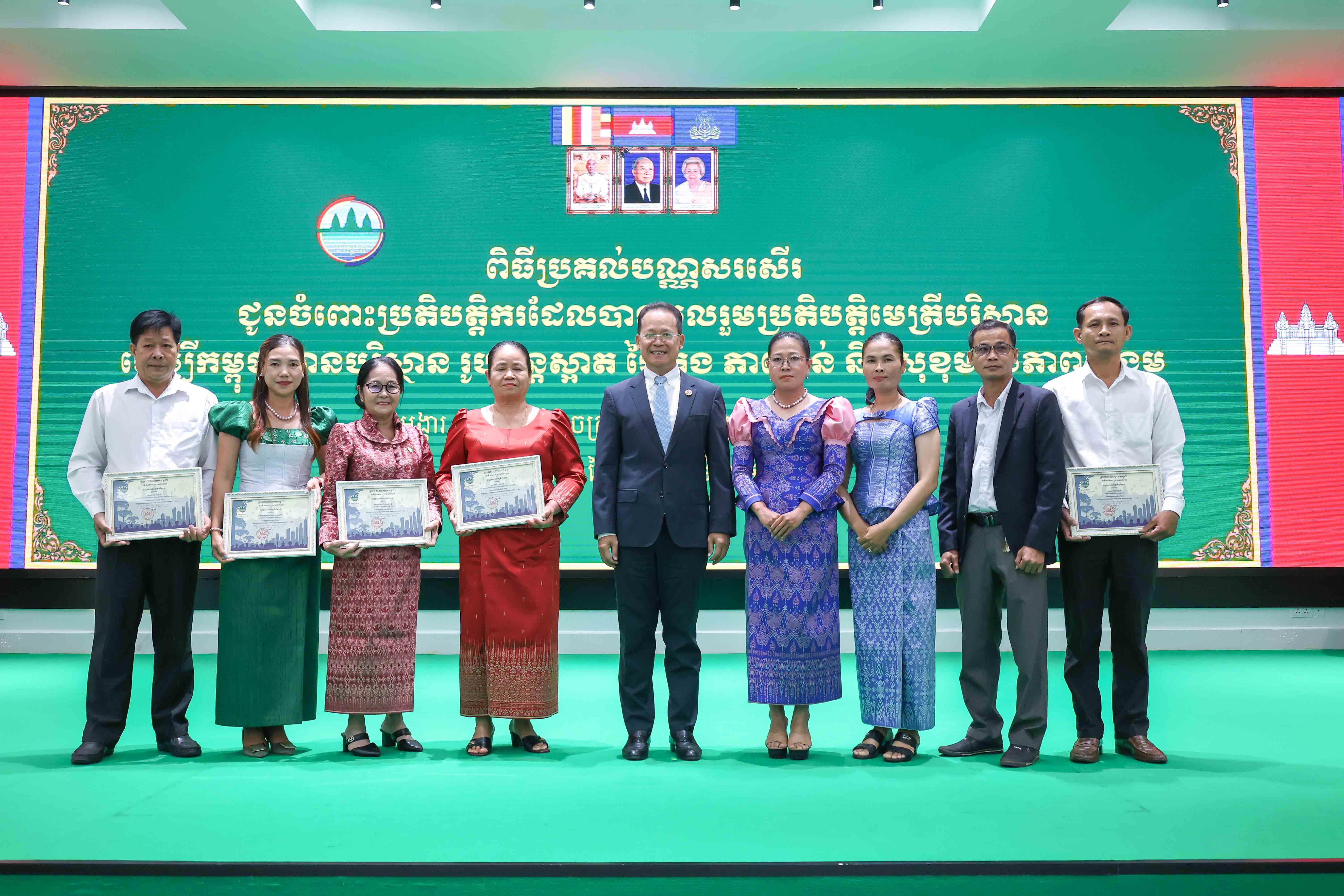 ក្នុងឱកាសនោះ លោករដ្ឋមន្រ្តីបានថ្លែងវាយតម្លៃខ្ពស់ចំពោះ ប្រតិបត្តករមេត្រីបរិស្ថានទាំងអស់ ដែលបានអនុវត្តសកម្មភាពនាពេលកន្លងមក ក្នុងការចូលរួមចំណែកដ៏សំខាន់ សម្រេចបាននូវការលើកកម្ពស់ចំណេះដឹងអំពីបរិស្ថាន ដើម្បីផ្លាស់ប្ដូរផ្នត់គំនិតសាធារណជន ឱ្យចូលរួមប្រតិបត្តិមេត្រីបរិស្ថាន ជាពិសេសជួយលើកកម្ពស់ចំណេះដឹង ដល់សិស្ស និស្សិត យុវជន និងសាធារណជនទូទៅ ឱ្យយល់ដឹងកាន់តែច្បាស់អំពីបញ្ហាបរិស្ថាន សុខភាព អនាម័យបរិស្ថាន និងចូលរួមអភិវឌ្ឍន៍ប្រទេសជាតិ ប្រកបដោយភាពរុងរឿង ប្រែក្លាយទៅជាប្រទេសមានបរិស្ថានស្អាត ស្អាតក្នុងទឹក ស្អាតលើដី និងស្អាតក្នុងខ្យល់ ដើម្បីការអភិវឌ្ឍន៍សេដ្ឋកិច្ចសង្គមប្រកបដោយចីរភាព។