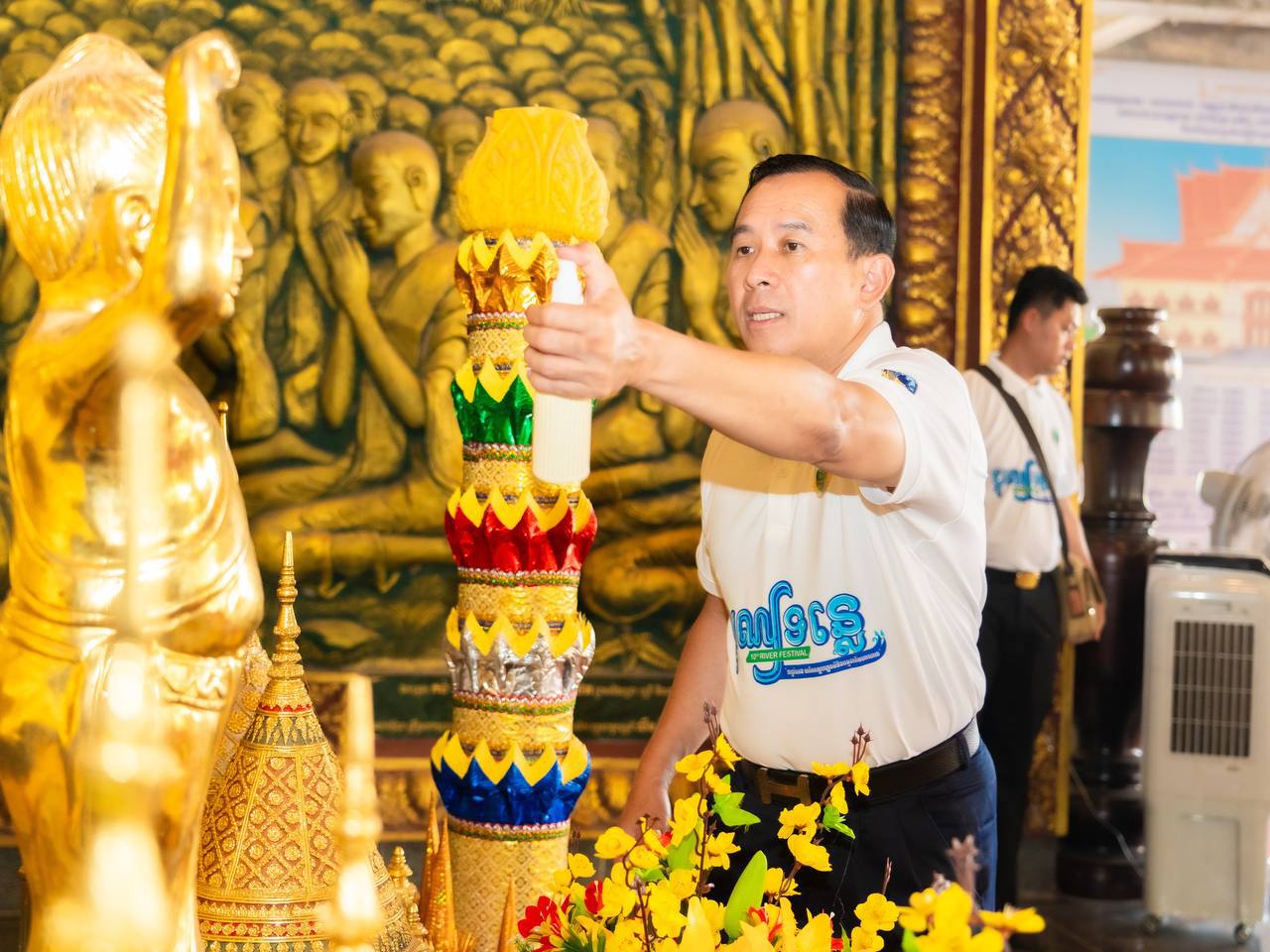 (ក្រចេះ)៖ លោក ហួត ហាក់ រដ្ឋមន្ត្រីក្រសួងទេសចរណ៍ និងភរិយា អញ្ជើញដឹកនាំក្រុមការងារចំរុះរៀបចំព្រឹត្តការណ៍បុណ្យទន្លេលើកទី១០ ចូលគោរពថ្វាយបង្គំ និងនាំយកទេយ្យទានប្រគេនជូនព្រះតេជគុណព្រះចៅអធិការវត្ត និងព្រះសង្ឈគង់នៅទីវត្តអារាមដ៏ចំណាស់ និងល្បីល្បាញក្នុងខេត្តក្រចេះ ព្រមទំាងពិនិត្យអំពីស្ថានភាពហេដ្ឋារចនាសម្ព័ន្ធ កតា្តសុខសុវត្ថិភាព បរិស្ថាន និងការរៀបចំបដិសណ្ឋារកិច្ចជុំវិញបរិវេណវត្ត ដើម្បីផ្តល់នូវភាពងាយស្រួល និងសណ្តាប់ធ្នាប់ល្អចូលមកទស្សនាស្វែងយល់ពីប្រវត្តិសាស្រ្តទីអារាមដ៏ល្បីល្បាញ និងផ្សារភ្ជាប់ជាមួយប្រវត្តិសាស្រ្តកម្ពុជា និងថ្វាយបង្គំពីសំណាក់ភ្ញៀវទេសចរជាតិ និងអន្តរជាតិ។