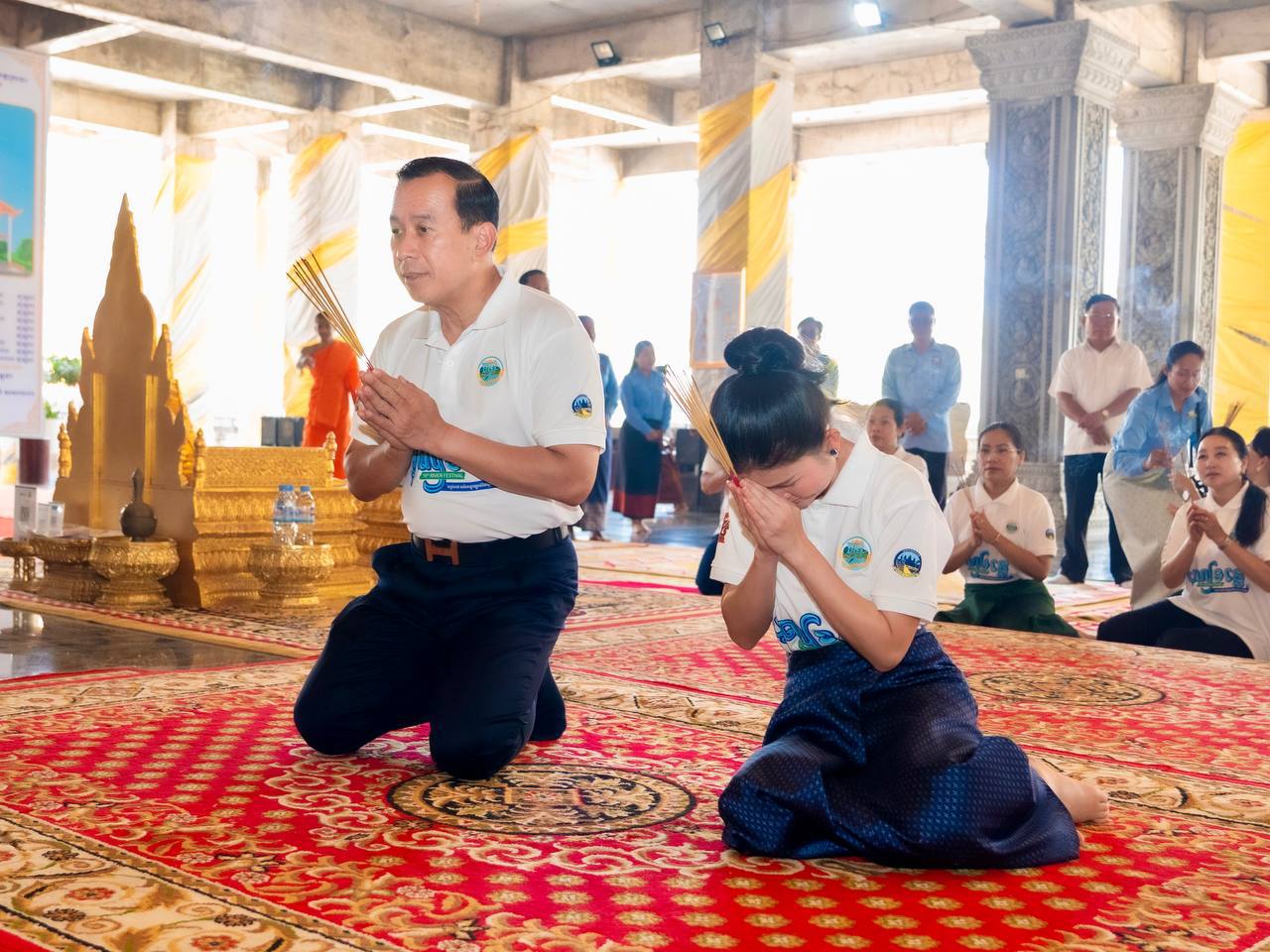 រដ្ឋមន្ត្រី ហួត ហាក់ និងភរិយា អញ្ជើញចុះពិនិត្យស្ថានភាពជាក់ស្តែងនៅវត្តសសរ១០០ ក្នុងឱកាសព្រឹត្តិការណ៍បុណ្យទន្លេលើកទី១០ នៅខេត្តក្រចេះ