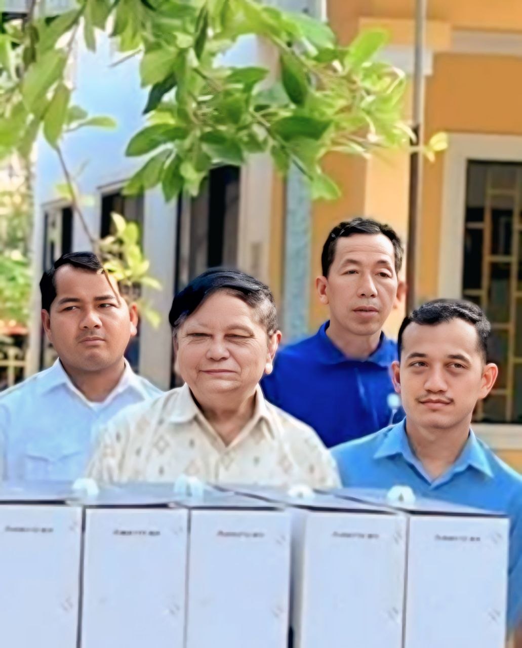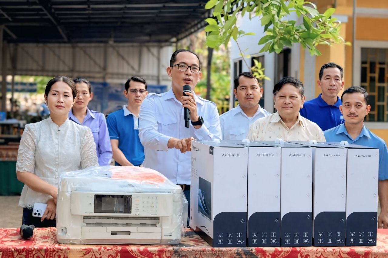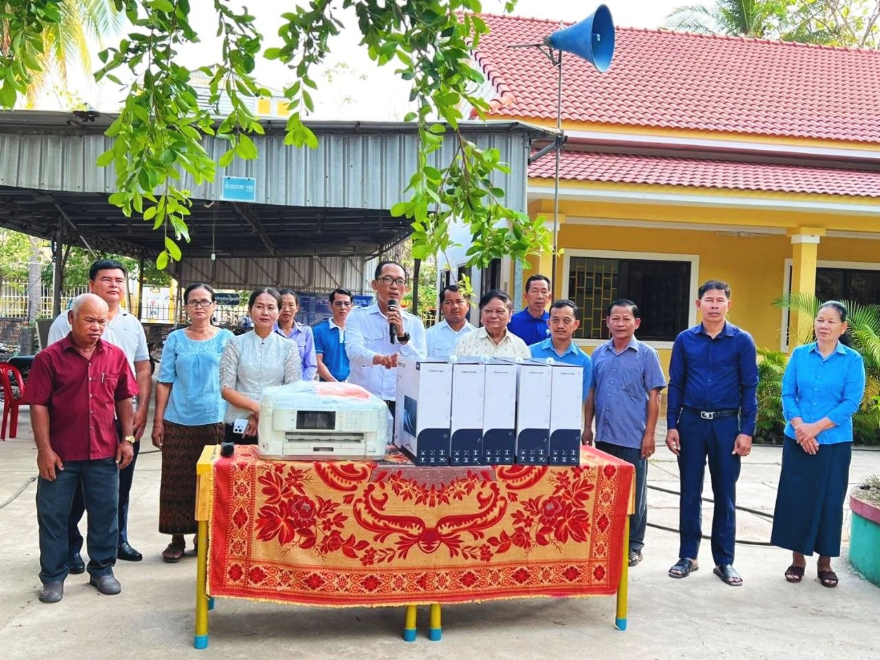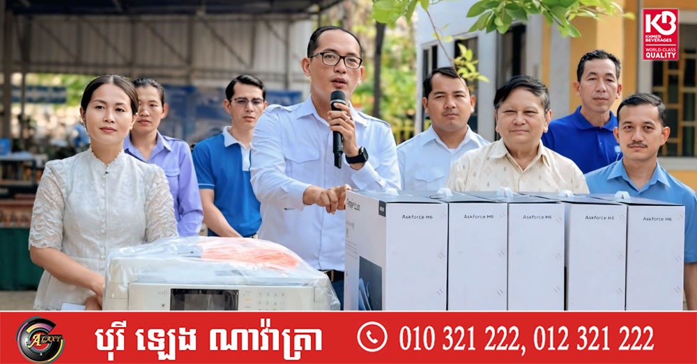 (តាកែវ)៖ លោក ទា ផូលីន ប្រធានខុទ្ទកាល័យ សម្តេចប្រធានក្រុមប្រឹក្សាជាតិរណសិរ្សសាមគ្គី អភិវឌ្ឍន៍មាតុភូមិកម្ពុជា នាព្រឹកថ្ងៃទី០១ ខែមេសា ឆ្នាំ២០២៦ បាននាំយកអំណោយ របស់លោកគ្រូ ឃ្លោក មេន រួមមាន៖ កុំព្យូរទ័រ៥គ្រឿង និងម៉ាស៊ីនព្រីធ័រ១គ្រឿង ប្រគល់ជូនគណៈគ្រប់គ្រងវិទ្យាល័យគិរីវង់ ស្ថិតនៅស្រុកគិរីវង់ ខេត្តតាកែវ។