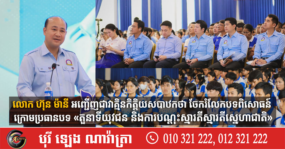 លោក ហ៊ុន ម៉ានី អញ្ជើញជាវាគ្មិនកិត្តិយសបាឋកថា ចែករំលែកបទពិសោធន៍ ក្រោមប្រធានបទ «តួនាទីយុវជន និងការបណ្ដុះស្មារតីស្មារតីស្នេហាជាតិ»