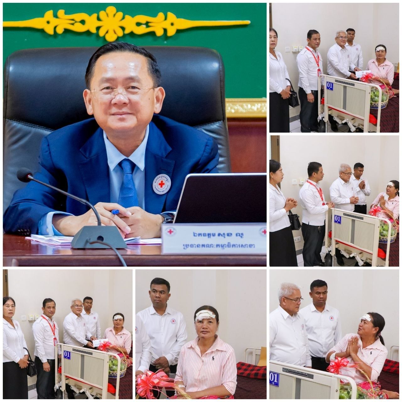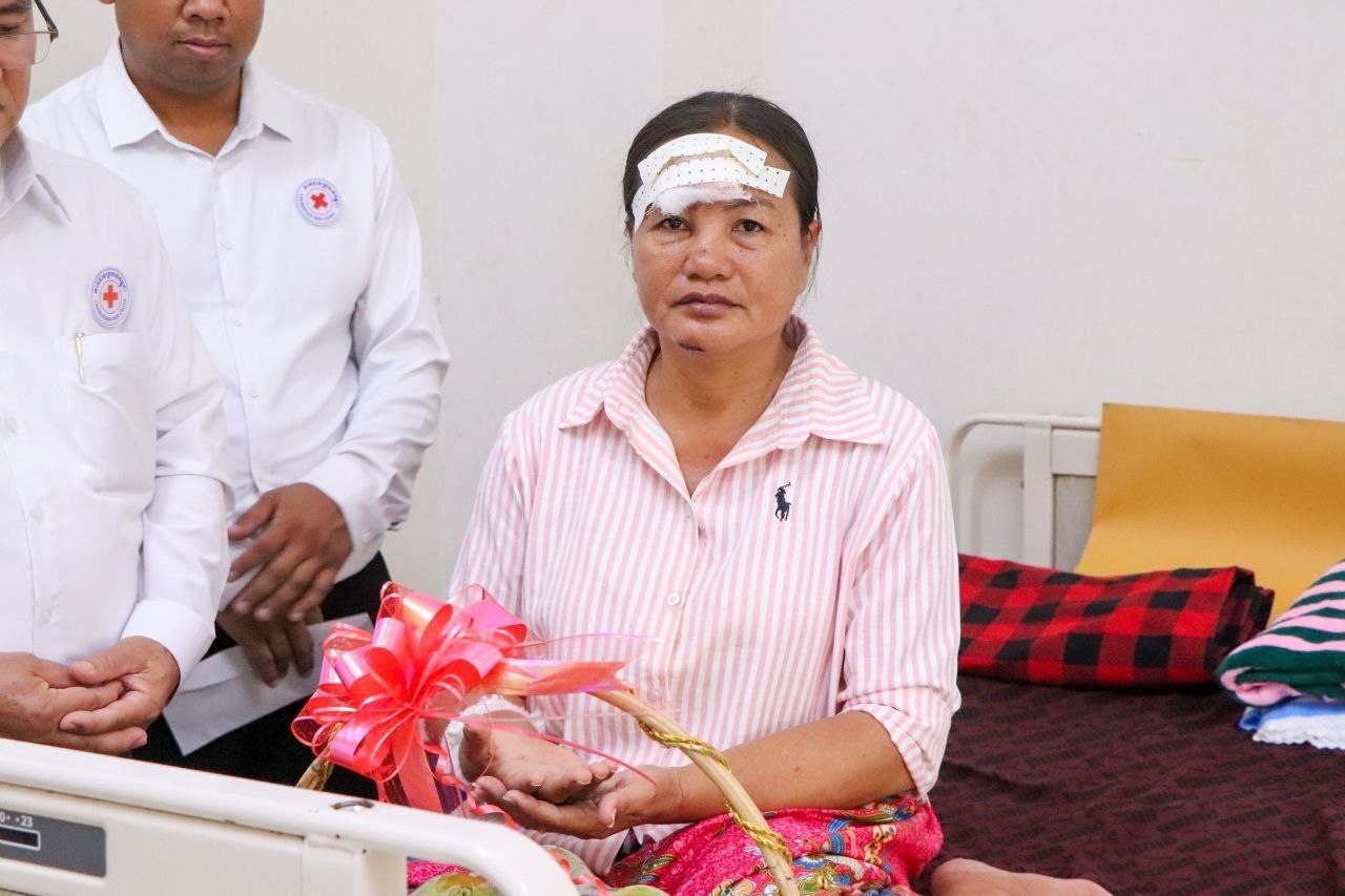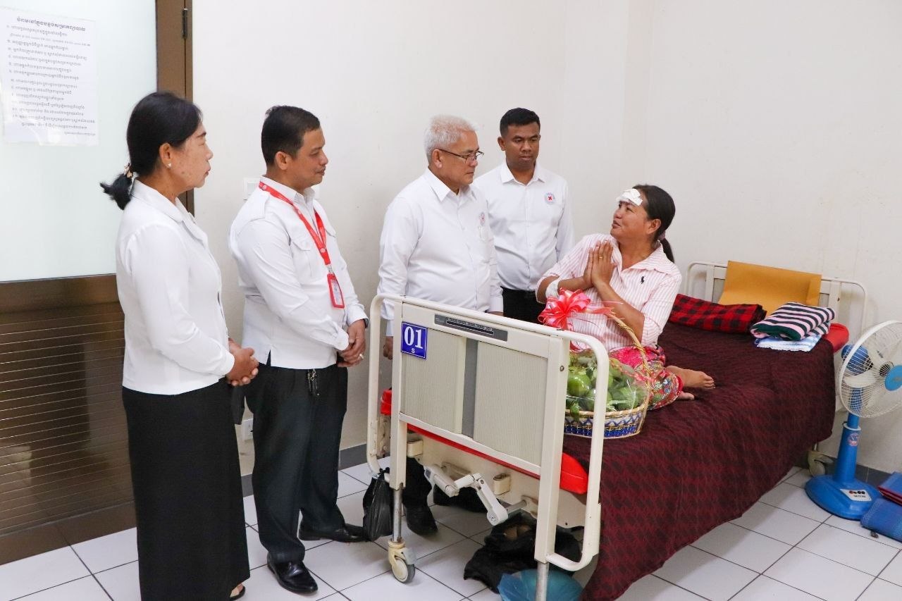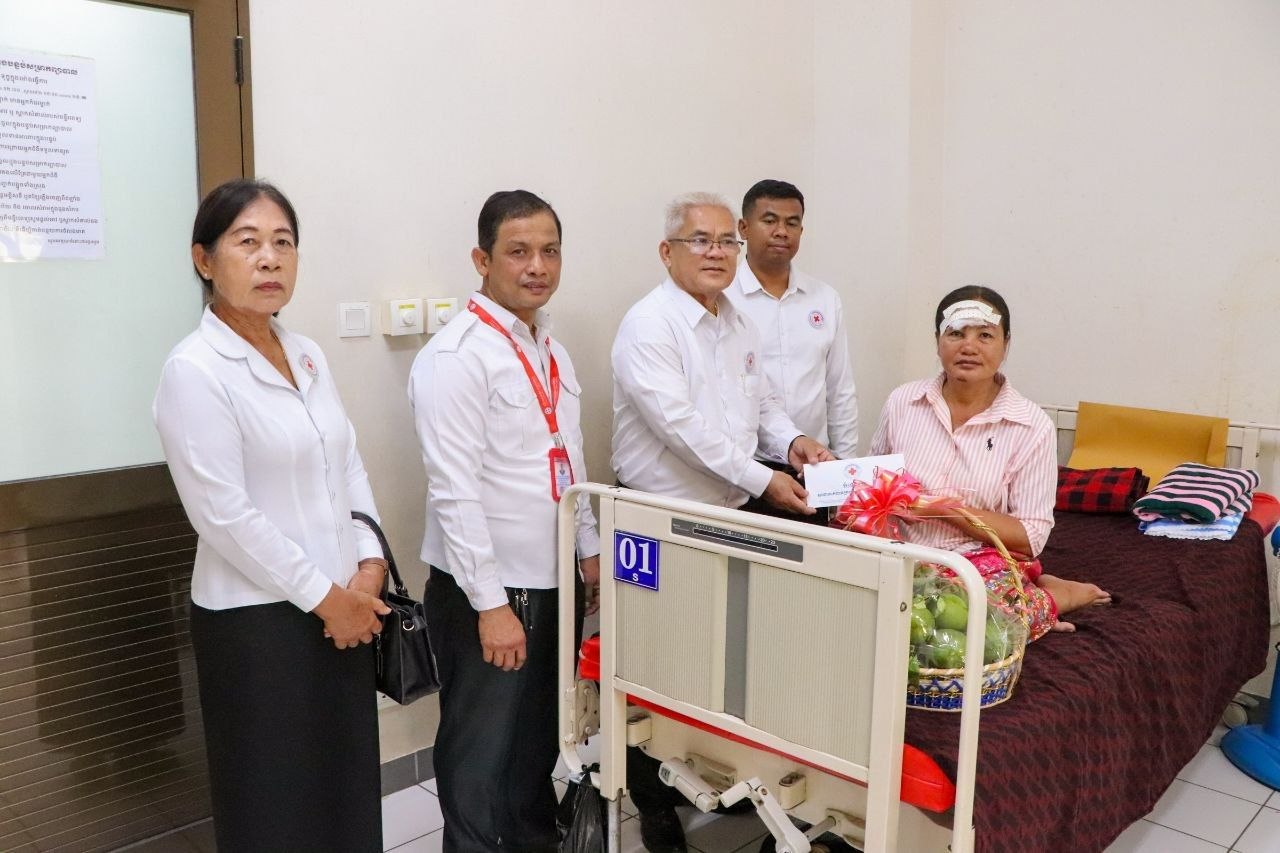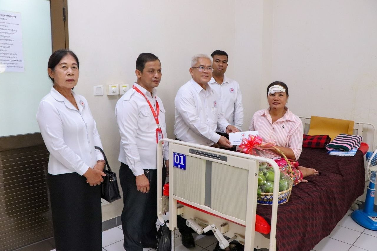 ប្រធានក្រុមកាកបាទក្រហមកម្ពុជាឃុំស្នឹង ស្រុកបាណន់ ដែលជួបគ្រោះថ្នាក់ចរាចណ៍ ក្នុងពេលបំពេញបេសកកម្ម ទទួលបានការយកចិត្តទុកដាក់ពីថ្នាក់ដឹកនាំកាកបាទក្រហមខេត្តបាត់ដំបង