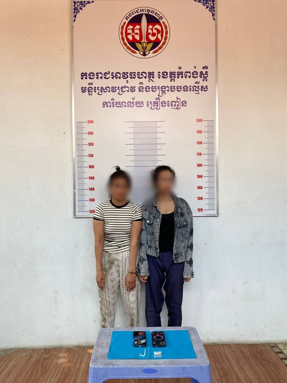 ជាក់ស្តែងកាលពីវេលាម៉ោង ៨៖២២នាទីព្រឹកនាថ្ងៃទី២៧ ខែមីនា ឆ្នាំ២០២៦ កម្លាំងមូលដ្ឋានកងរាជអាវុធហត្ថក្រុងច្បារមន បានបង្រ្កាប និងឃាត់ខ្លួនបានជនសង្ស័យជាស្ត្រី២នាក់ ដែលជាប់ពាក់ព័ន្ធករណីគ្រឿងញៀន ស្ថិតនៅភូមិភ្នំដី សង្កាត់ច្បារមន ក្រុងច្បារមន ខេត្តកំពង់ស្ពឺ។