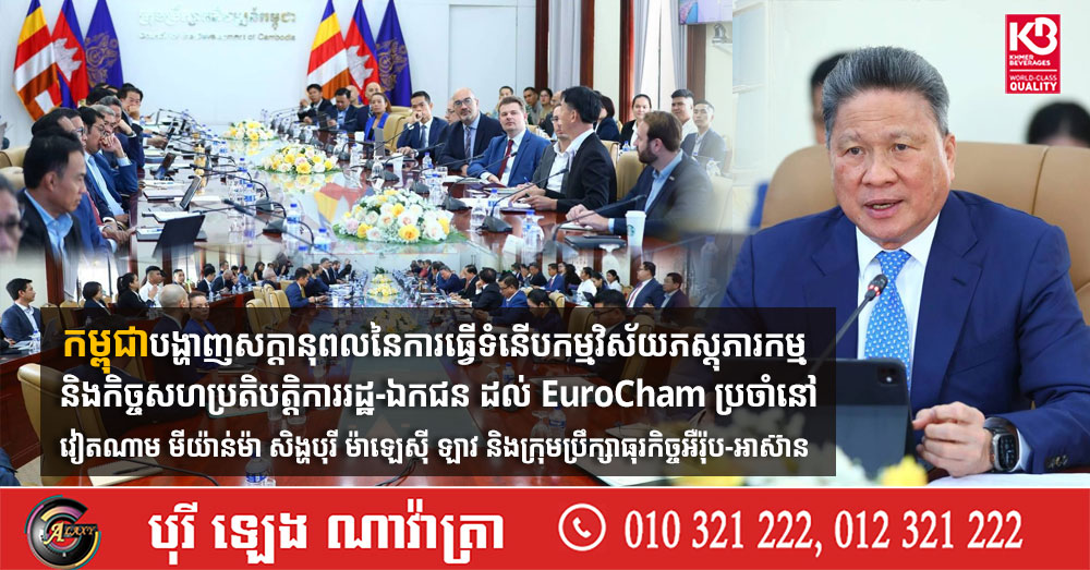 កម្ពុជាបង្ហាញសក្តានុពលនៃការធ្វើទំនើបកម្មវិស័យភស្តុភារកម្ម និងកិច្ចសហប្រតិបត្តិការរដ្ឋ-ឯកជន ដល់ EuroCham ប្រចាំនៅវៀតណាម មីយ៉ាន់ម៉ា សិង្ហបុរី ម៉ាឡេស៊ី ឡាវ និងក្រុមប្រឹក្សាធុរកិច្ចអឺរ៉ុប-អាស៊ាន (Video inside)