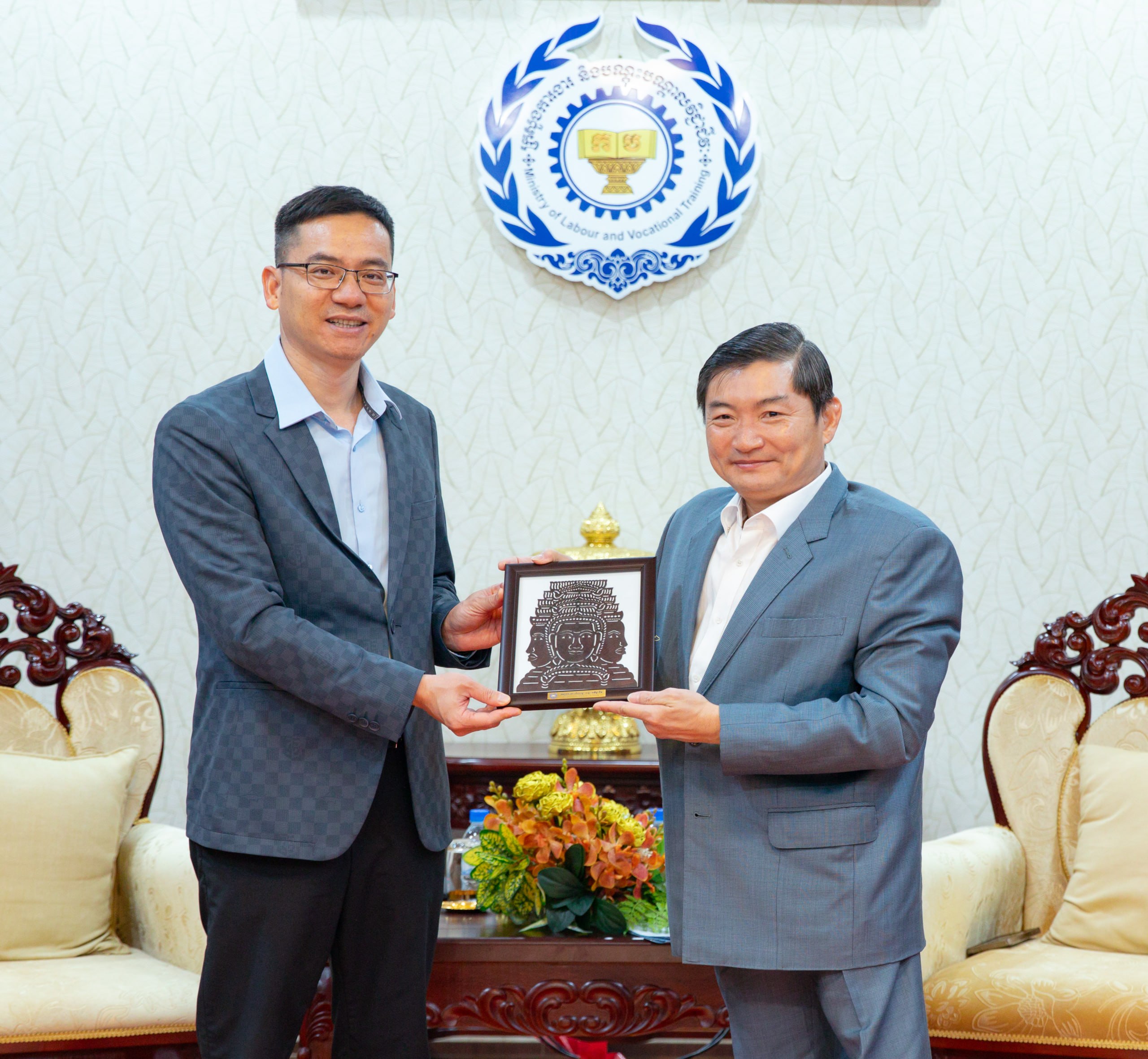 (ភ្នំពេញ)៖ លោក ហេង សួរ រដ្ឋមន្ត្រីក្រសួងការងារ និងបណ្ដុះបណ្ដាលវិជ្ជាជីវៈ បានទទួលជួបសម្ដែងការគួរសម និងពិភាក្សាការងារជាមួយ លោក យៀក ឆឹងហ៊ុយ (Ye Chenghui) ប្រធានផ្នែកលក់នៃក្រុមហ៊ុន BYD (Cambodia) Co., Ltd. និងជានាយកផ្នែកលក់រថយន្តប្រចាំតំបន់អាស៊ីប៉ាស៊ីហ្វិករបស់ក្រុមហ៊ុន BYD នាព្រឹកថ្ងៃទី១ ខែមេសា ឆ្នាំ២០២៦ ដើម្បីផ្លាស់ប្តូរយោបល់លើការបង្កើតឱកាសពង្រឹងកិច្ចសហប្រតិបត្តិការ ក្នុងការអភិវឌ្ឍកម្លាំងពលកម្មជំនាញយានយន្តអគ្គិសនី (EV) ក្នុងទិសដៅបំពេញតម្រូវការទីផ្សារ និងចូលរួមថែរក្សាបរិស្ថាននៅកម្ពុជា ជាពិសេសក្នុងពេលមានវិបត្តិប្រេងឥន្ធនៈសកល។