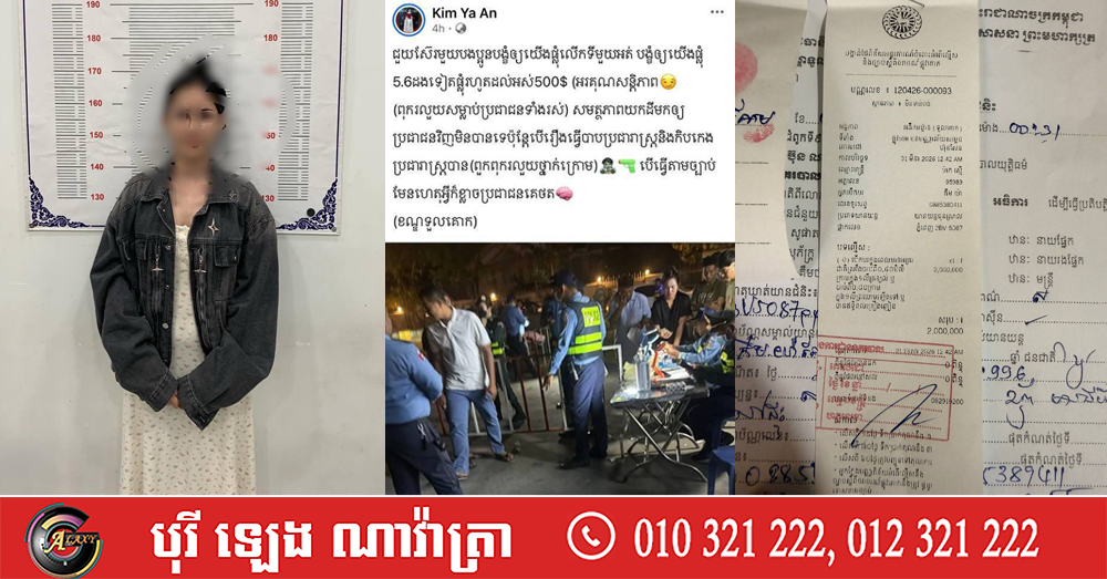 (ភ្នំពេញ)៖ បុរសភេទទី៣ម្នាក់ ដែលប្រើបណ្តាញសង្គម Facebook ឈ្មោះ «Kim Ya An» ដែលបានបង្ហោះសាររិះគន់រឿងឃាត់ពិនិត្យជាតិស្រវឹងនោះ ត្រូវបាននគរបាលឃាត់ខ្លួន បញ្ជូនទៅតុលាការនៅរសៀលថ្ងៃទី១ ខែមេសា ឆ្នាំ២០២៦។
