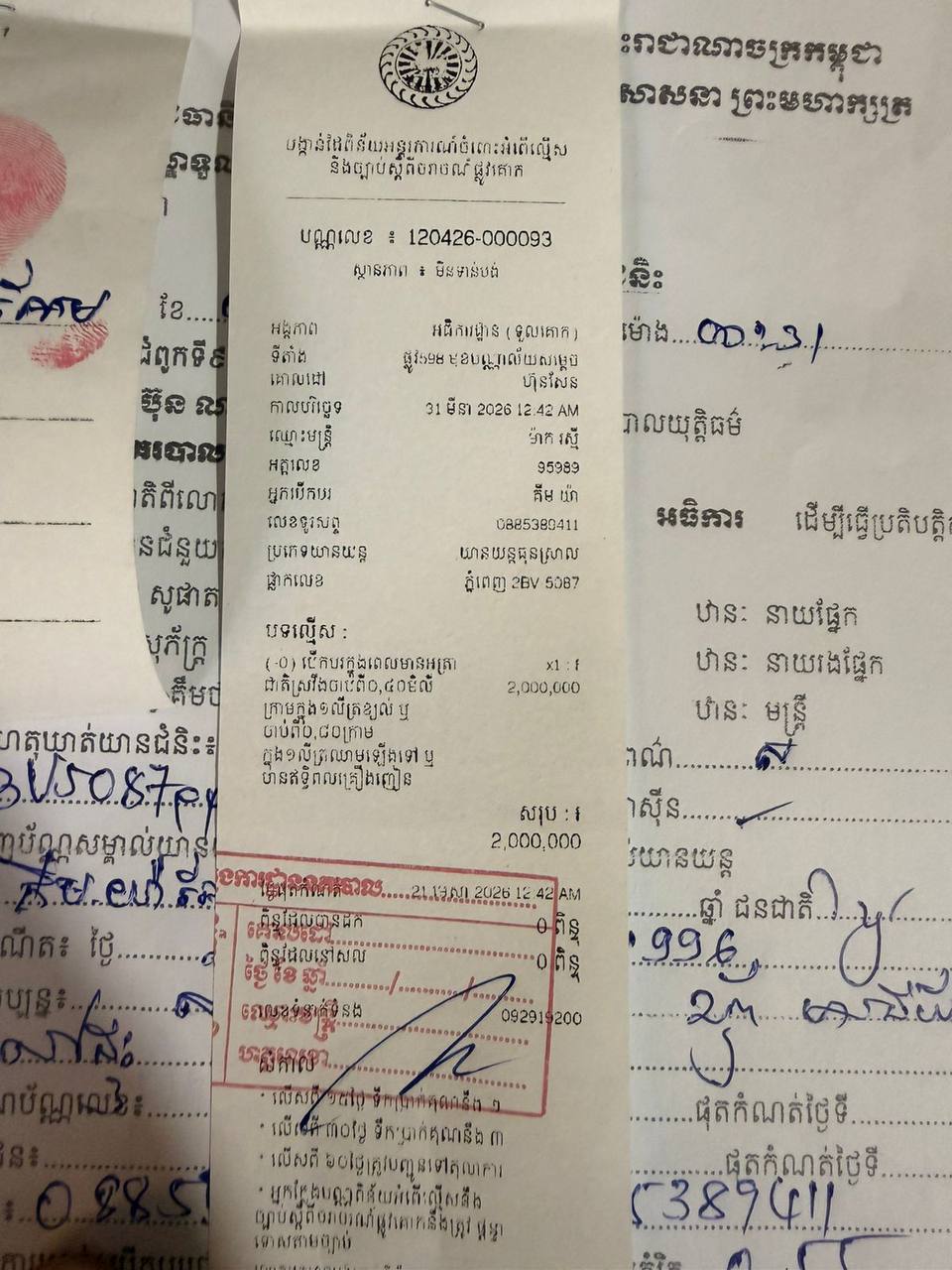 លុះនៅម៉ោង ២៤៖៣០នាទីឈានចូលថ្ងៃទី៣១ ខែមីនា ឆ្នាំ២០២៦ កម្លាំងសមត្ថកិច្ច បានឃាត់រថយន្ត១គ្រឿងម៉ាក NISSAN ពណ៌ស ផ្លាកលេខភ្នំពេញ 2BV-5087 ដើម្បីត្រួតពិនិត្យជាតិអាល់កុល ខណៈនោះអ្នកបើកបររថយន្ត បានសហការផ្លុំ ឧបករណ៍វាស់ជាតិអាល់កុល ដោយលើកទី១ និងទី២ផ្លុំមិនបានត្រឹមត្រូវតាមបច្ចេកទេសនោះទេ។