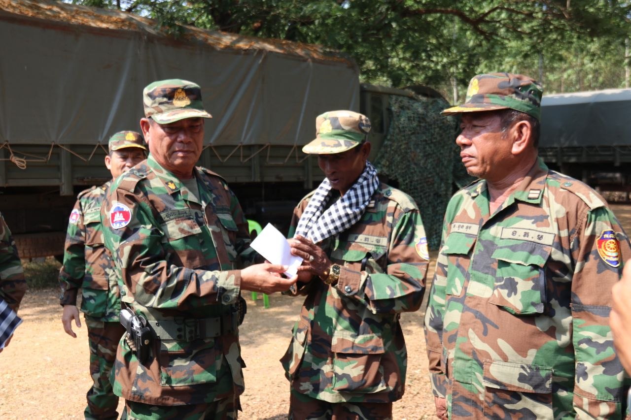 ឧត្តមសេនីយ៍ទោ ហ៊ុល សំអុន ចុះសួរសុខទុក្ខ និងនាំយកនូវស្បៀងអាហារ បងប្អូនកងទ័ព ដែលកំពុងឈរជើងប្រចាំការ នៅតាមបន្ទាត់ព្រំដែនកម្ពុជា-ថៃ