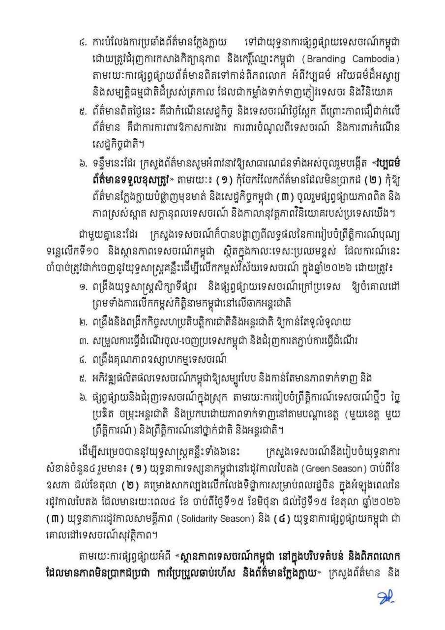 ក្រសួងព័ត៌មាន និងក្រសួងទេសចរណ៍ សេចក្តីប្រកាសព័ត៌មានរួមពីលទ្ធផលនៃការផ្សព្វផ្សាយពីស្ថានភាពទេសចរណ៍កម្ពុជា នៅក្នុងបរិបទតំបន់ និងពិភពលោកដែលមានភាព មិនប្រាកដប្រជា ប្រែប្រួលឆាប់រហ័ស និងព័ត៌មានក្លែងក្លាយ
