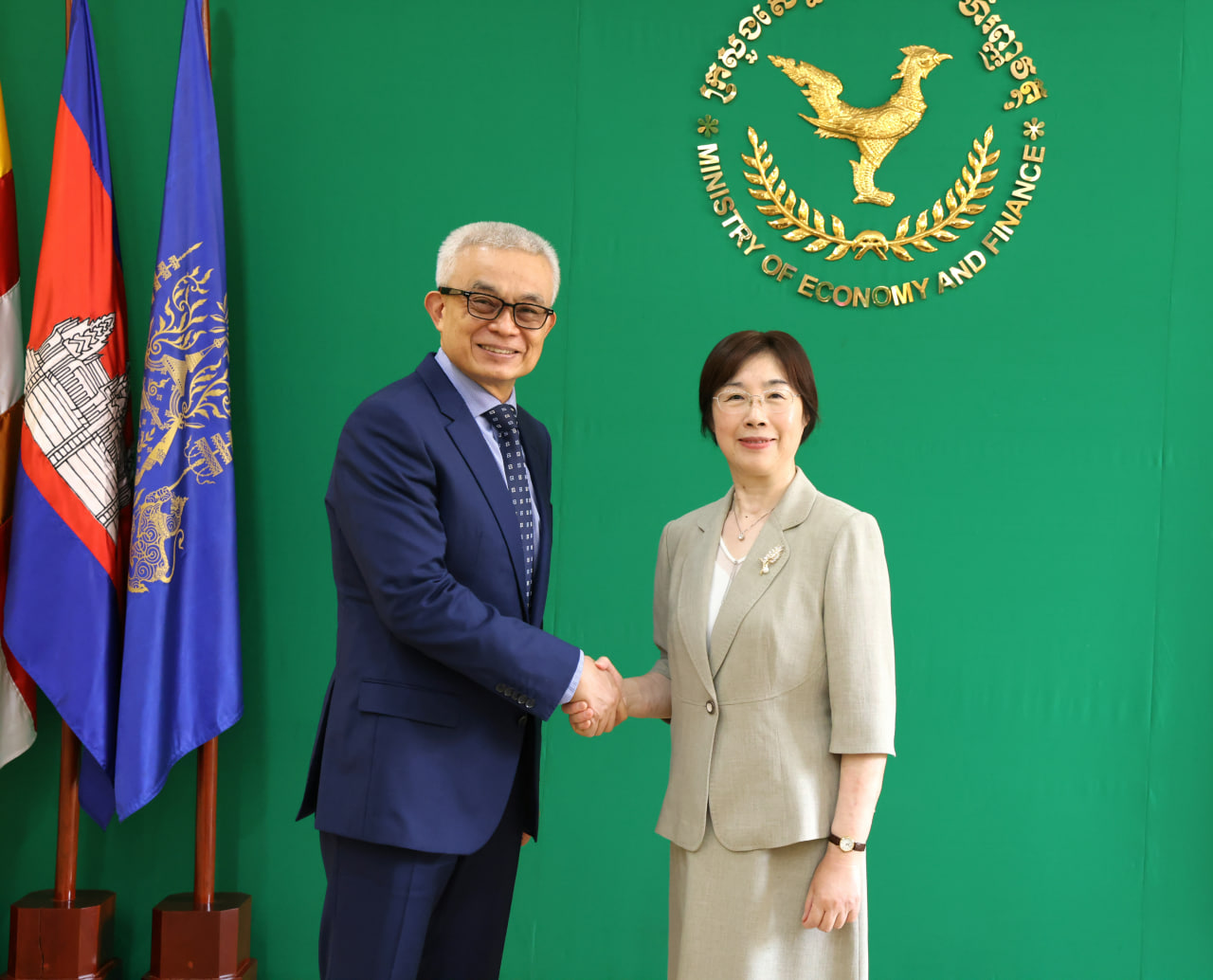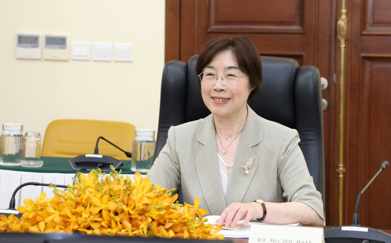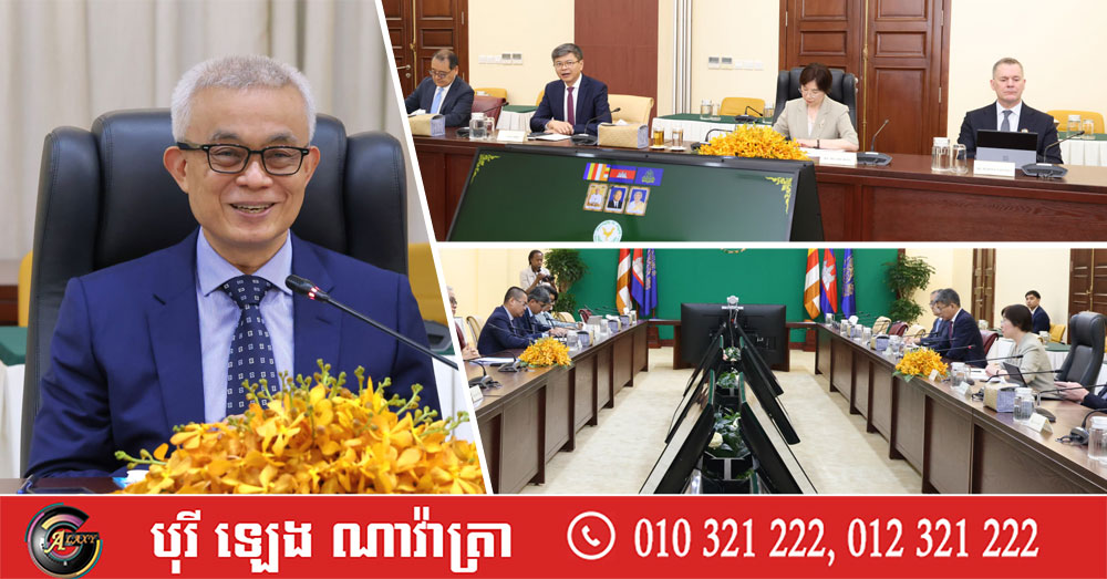 (ភ្នំពេញ)៖ អគ្គបណ្ឌិតសភាចារ្យ អូន ព័ន្ធមុនីរ័ត្ន ឧបនាយករដ្ឋមន្រ្តី រដ្ឋមន្រ្តីក្រសួងសេដ្ឋកិច្ច និងហិរញ្ញវត្ថុ នៅថ្ងៃទី១ ខែមេសា ឆ្នាំ២០២៦ បានទទួលជួបពិភាក្សាការងារជាមួយលោកស្រី Zou Jiayi ប្រធាន និងជាប្រធានក្រុមប្រឹក្សាភិបាល នៃធនាគារវិនិយោគហេដ្ឋារចនាសម្ព័ន្ធអាស៊ី ក្នុងឱកាសដែលលោកស្រី មកបំពេញទស្សនកិច្ចផ្លូវការលើកដំបូងមកកាន់កម្ពុជា។