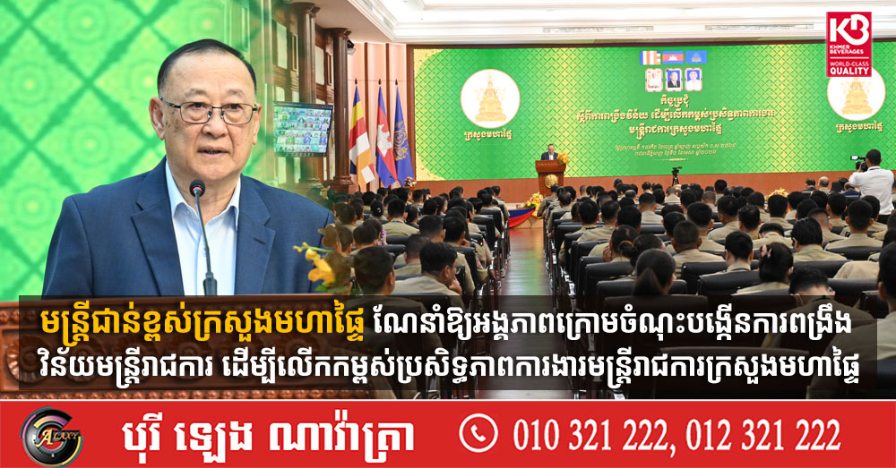 មន្រ្តីជាន់ខ្ពស់ក្រសួងមហាផ្ទៃ ណែនាំឱ្យអង្គភាពក្រោមចំណុះបង្កើនការពង្រឹងវិន័យមន្ត្រីរាជការ ដើម្បីលើកកម្ពស់ប្រសិទ្ធភាពការងារមន្ត្រីរាជការក្រសួងមហាផ្ទៃ