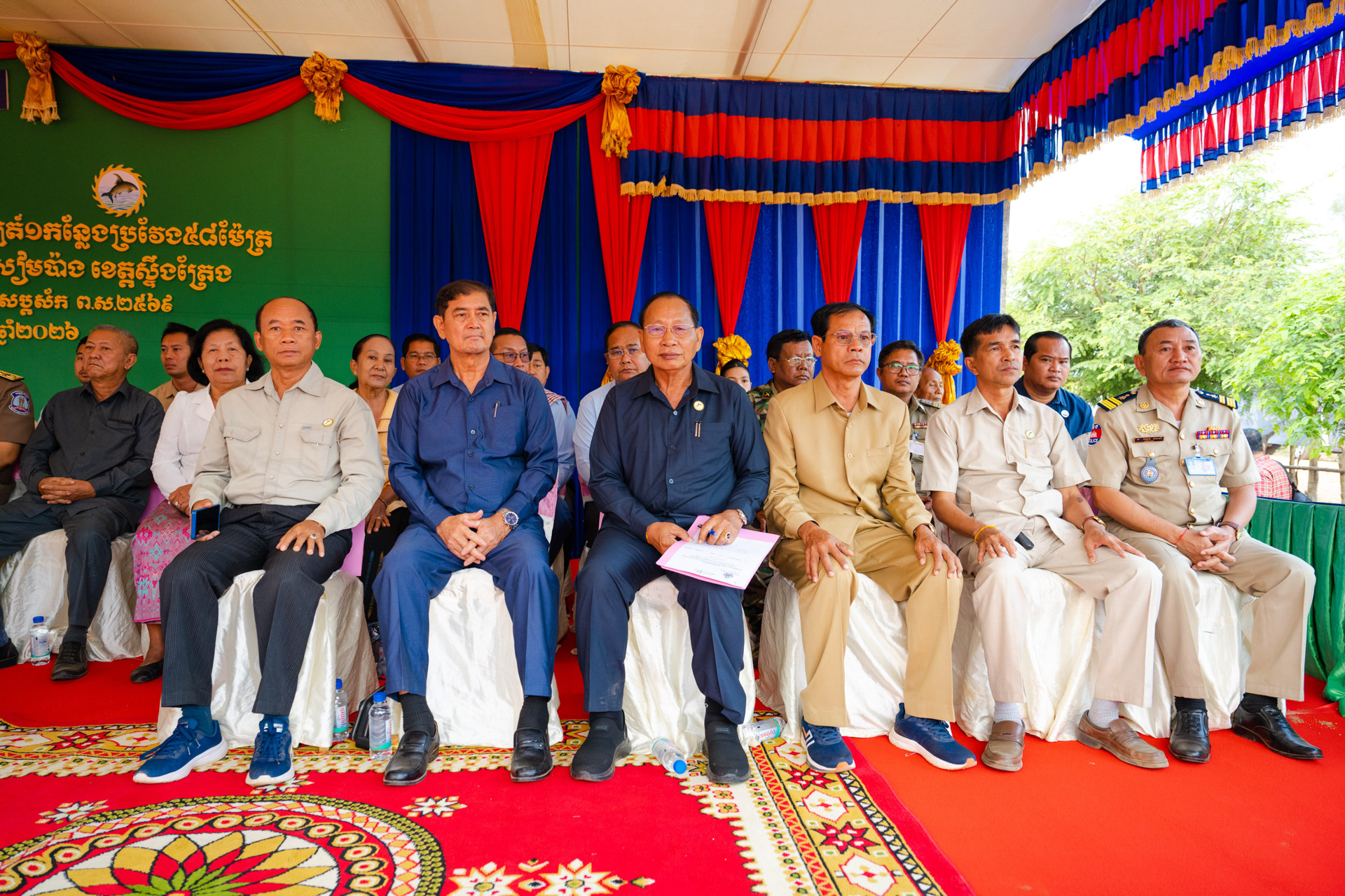 នាឱកាសន៉ដែរ លោក សរ សុពុត្រា អភិបាលនៃគណៈអភិបាលខេត្តស្ទឹងត្រែង បានអញ្ជើញមានមតិស្វាគមន៍ជូនអង្គពិធី ដោយបានជម្រាបជូនអំពីស្ថានភាពភូមិសាស្ដ្រ សេដ្ឋកិច្ច សង្គមកិច្ច ការថែរក្សាសុខសន្ដិភាព ស្ថិរភាពនយោបាយ ការពង្រីកវិសាលភាពនៃការអភិវឌ្ឍលើគ្រប់ផ្នែក ជាពិសេសការស្ដារ កសាង និងអភិវឌ្ឍន៍ហេដ្ឋារចនាសម្ព័ន្ធផ្លូវគមនាគមន៍ទាំងនៅទីប្រជុំជន និងនៅតំបន់ជនបទ ព្រមទាំងការកសាងនូវសមិទ្ធផលថ្មីៗជាបន្ដបន្ទាប់។