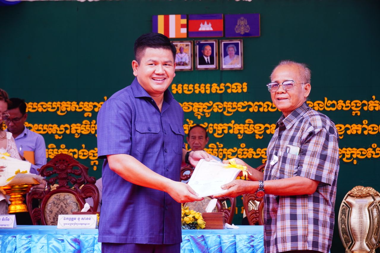 (កណ្ដាល)៖ លោក ឈឿន ប៊ុណ្ណារ័ត្ន រដ្ឋលេខាធិការក្រសួងរៀបចំដែនដី នគរូបនីយកម្ម និងសំណង់ និងលោក នូ សាខន ប្រធានក្រុមប្រឹក្សាខេត្ដ, លោក គួច ចំរើន អភិបាលខេត្តកណ្តាល នាថ្ងៃទី១ ខែមេសា ឆ្នាំ២០២៦ បានអញ្ជើញចែកវិញ្ញាបនបត្រសម្គាល់ម្ចាស់អចលនវត្ថុចំនួន ៤,៦៨២បណ្ណ ជូនប្រជាពលរដ្ឋមកពី ៩ភូមិ ក្នុងសង្កាត់សំពៅពូន និងសង្កាត់ព្រែកជ្រៃ ក្រុងសំពៅពូន។