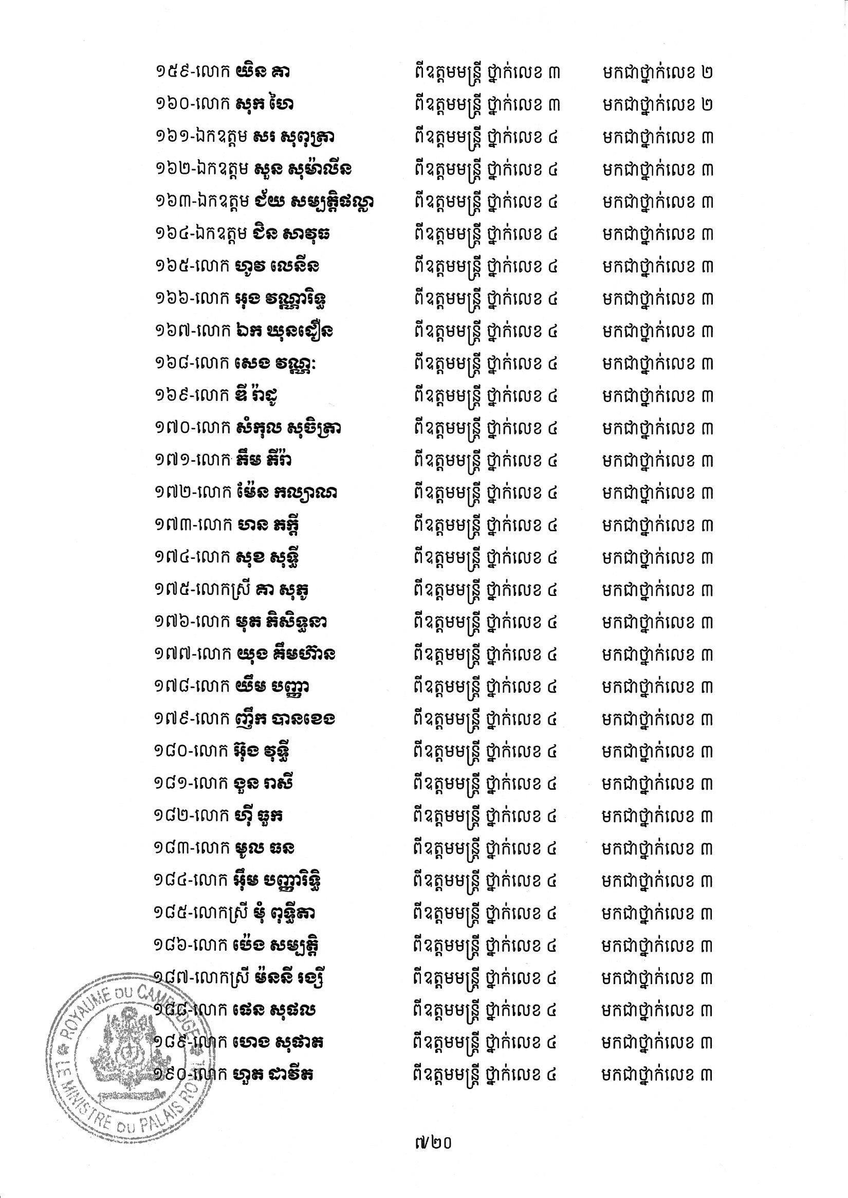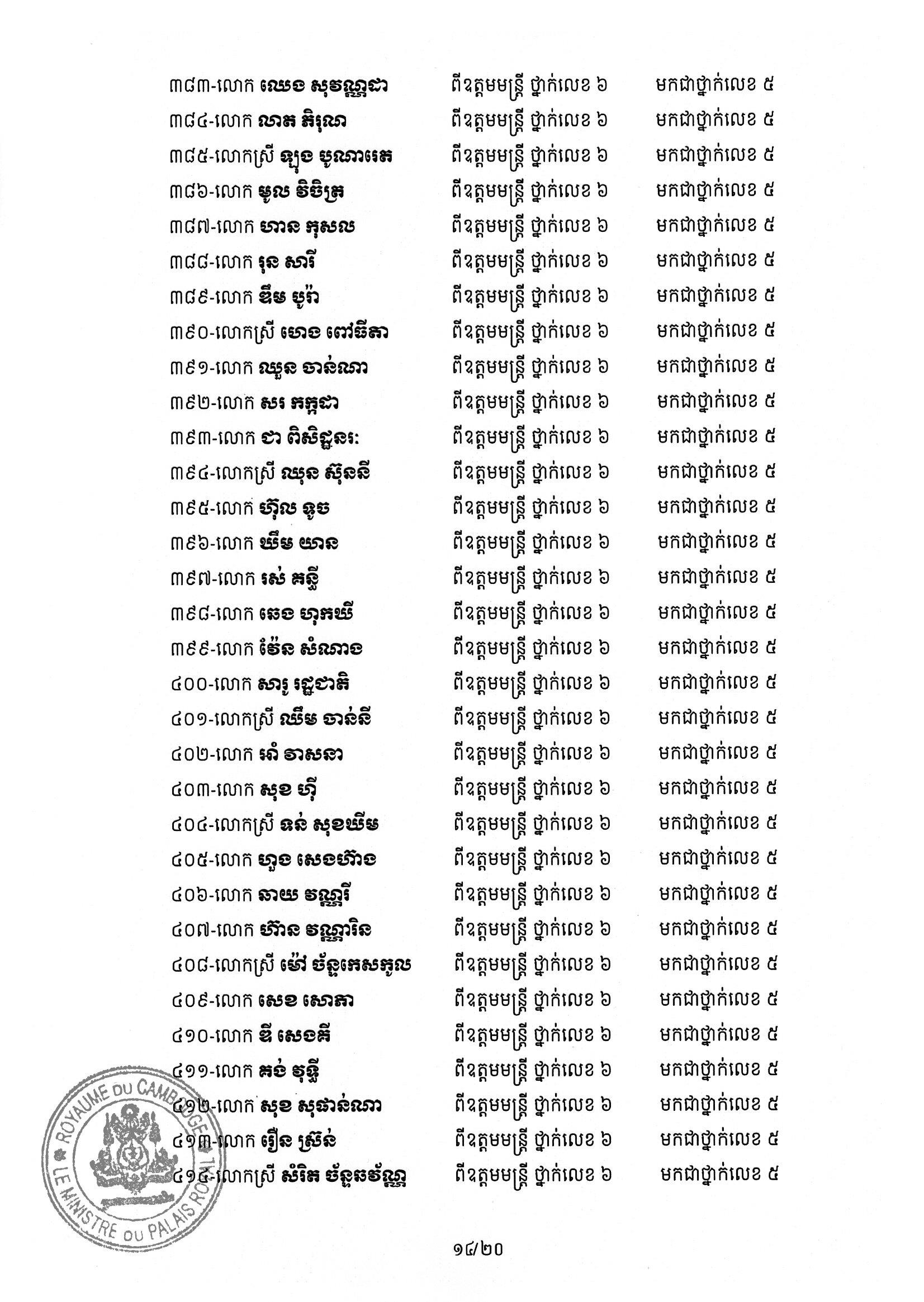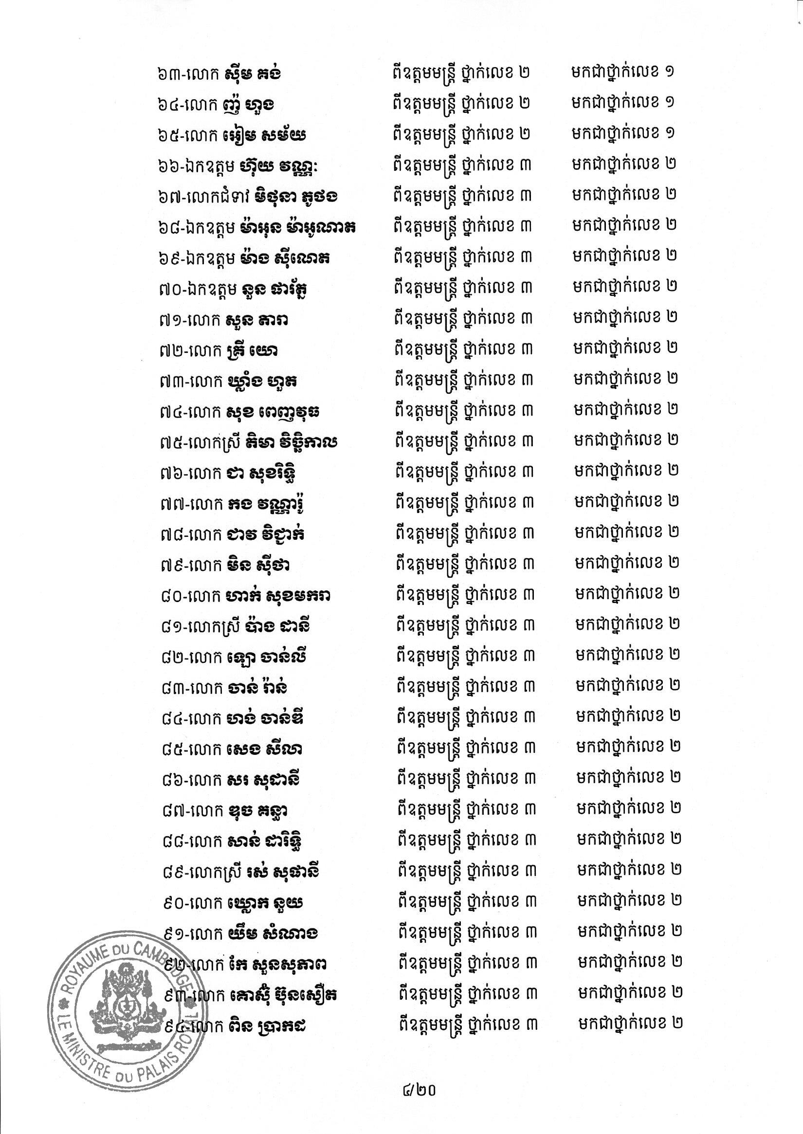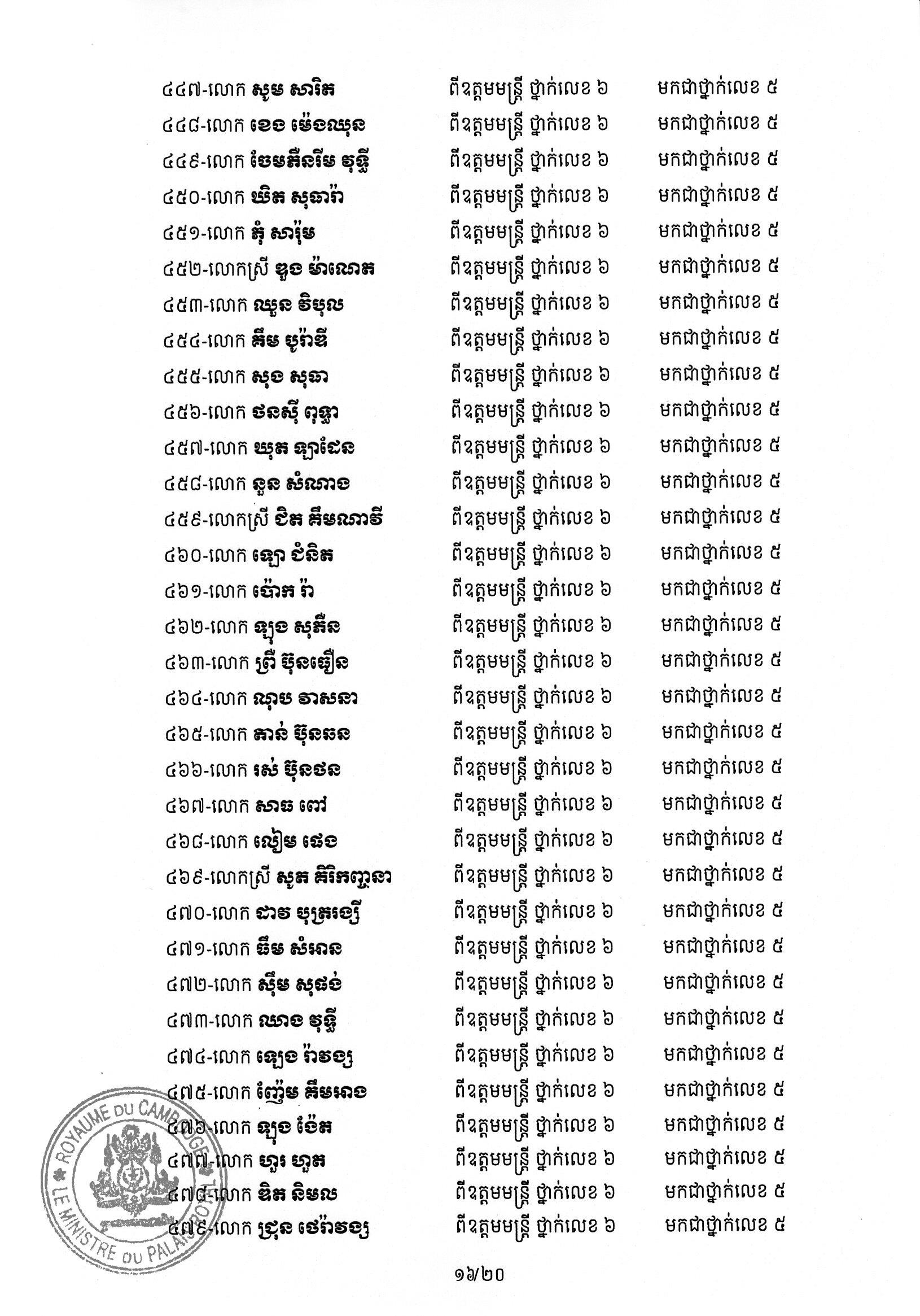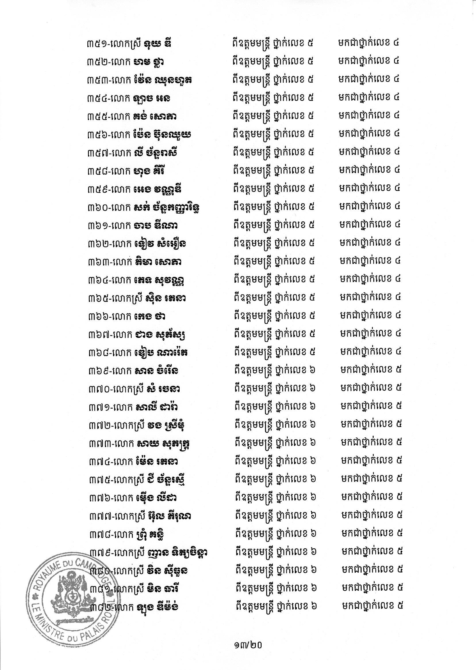 សម្ដេចតេជោ ហ៊ុន សែន ប្រមុខរដ្ឋស្ដីទី ចេញព្រះរាជក្រឹត្យដំឡើងថ្នាក់ និងឋានន្តរស័ក្តិប្រចាំឆ្នាំ ក្នុងឋានន្តរស័ក្តិឧត្តមមន្ត្រី នៃក្រខ័ណ្ឌមន្ត្រីរដ្ឋបាលជាន់ខ្ពស់ក្រសួងមហាផ្ទៃ ៦០២រូប