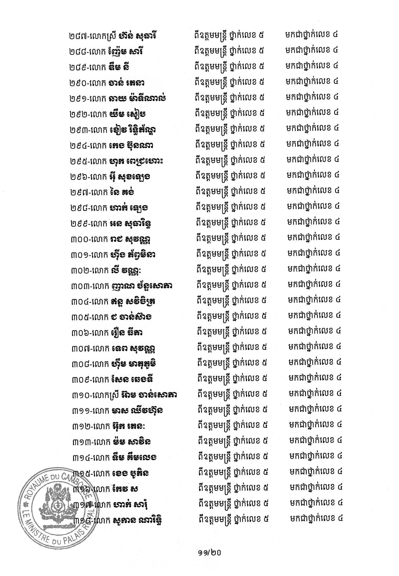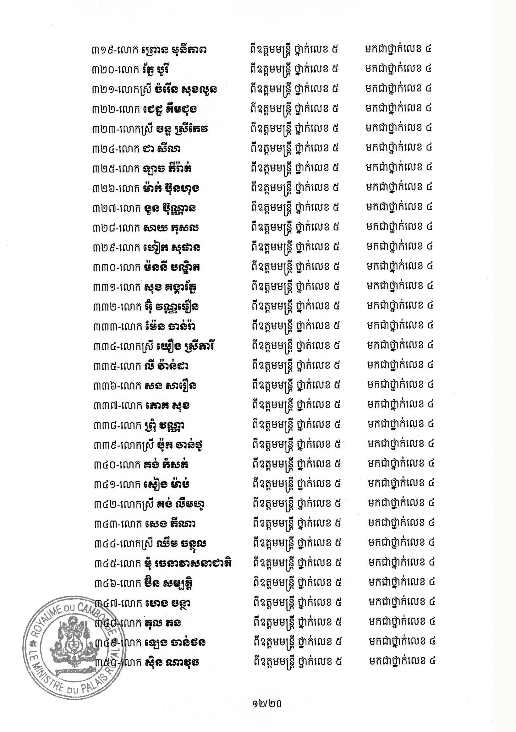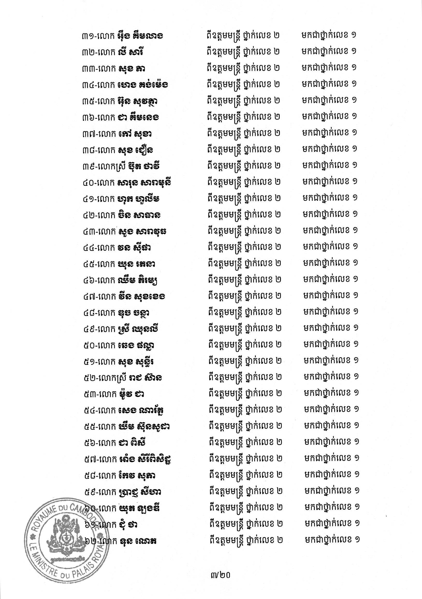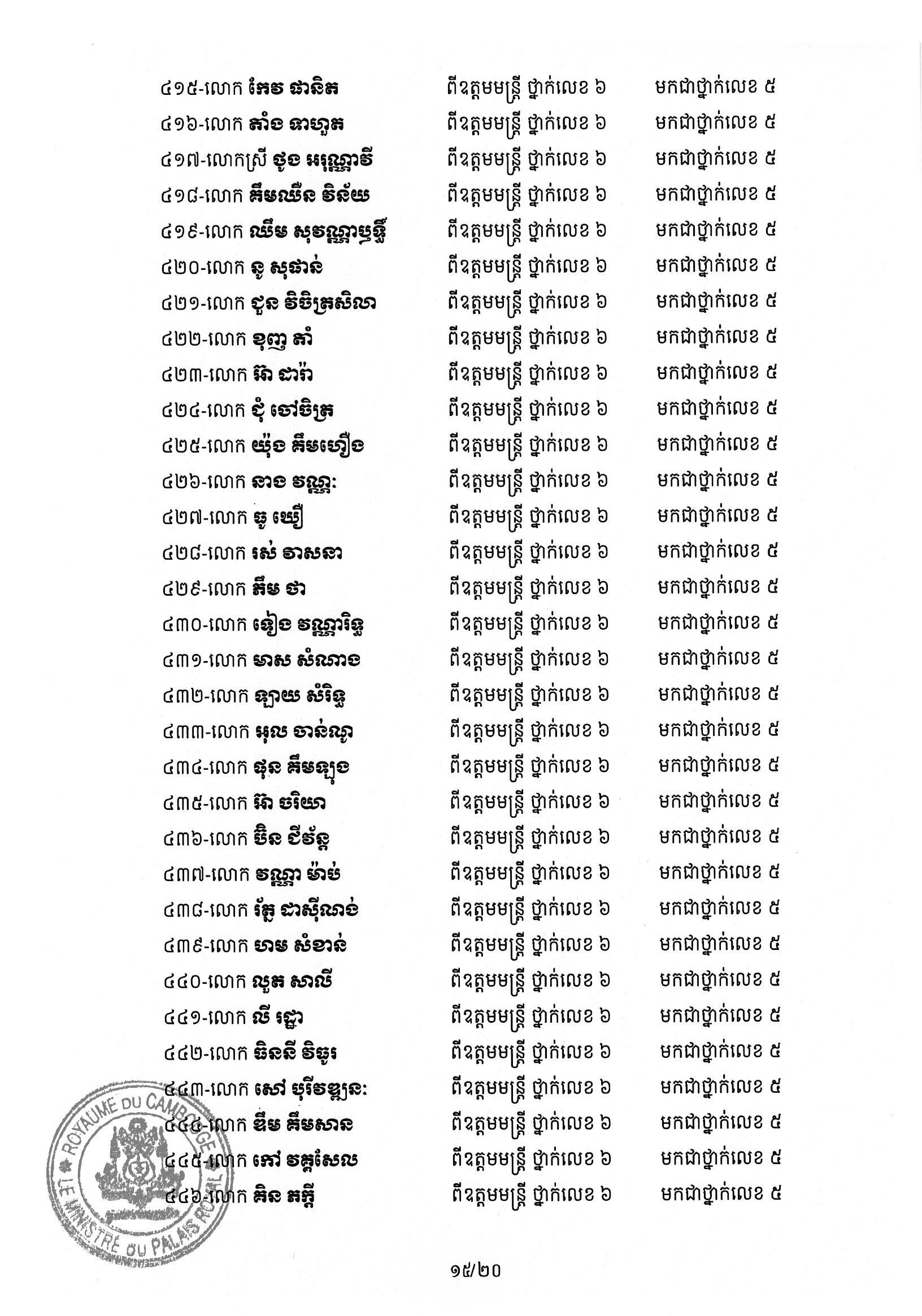 សម្ដេចតេជោ ហ៊ុន សែន ប្រមុខរដ្ឋស្ដីទី ចេញព្រះរាជក្រឹត្យដំឡើងថ្នាក់ និងឋានន្តរស័ក្តិប្រចាំឆ្នាំ ក្នុងឋានន្តរស័ក្តិឧត្តមមន្ត្រី នៃក្រខ័ណ្ឌមន្ត្រីរដ្ឋបាលជាន់ខ្ពស់ក្រសួងមហាផ្ទៃ ៦០២រូប