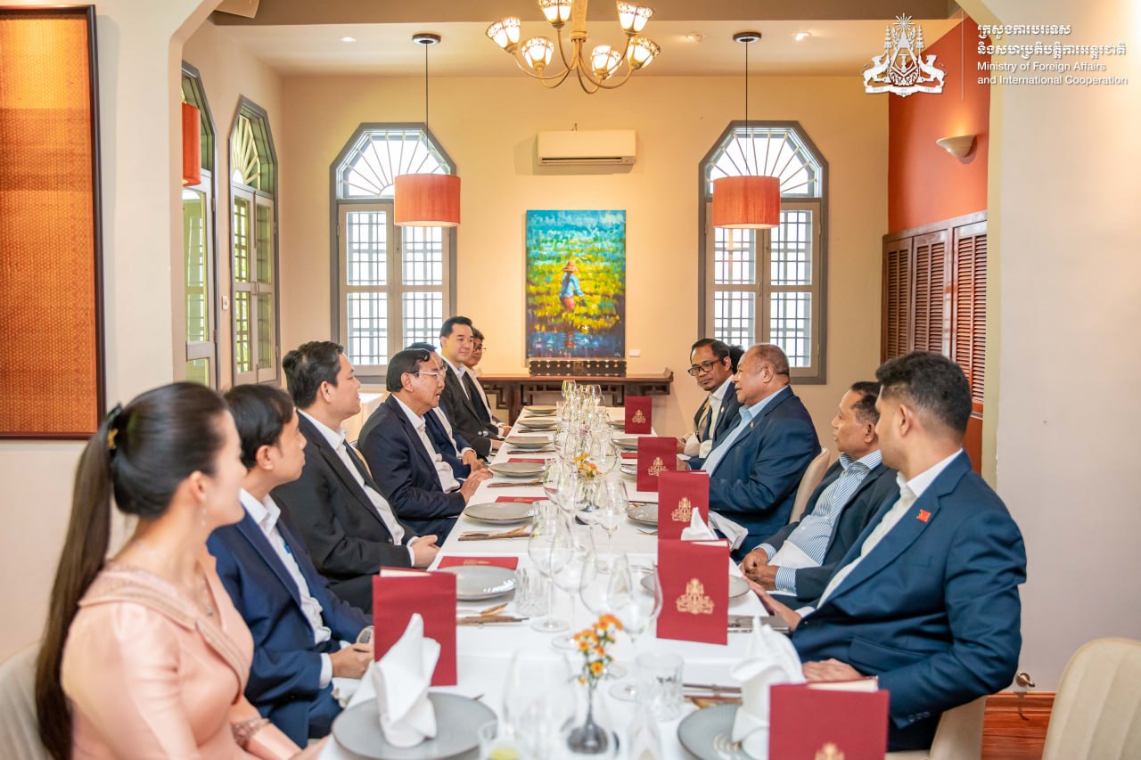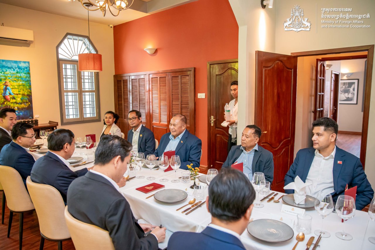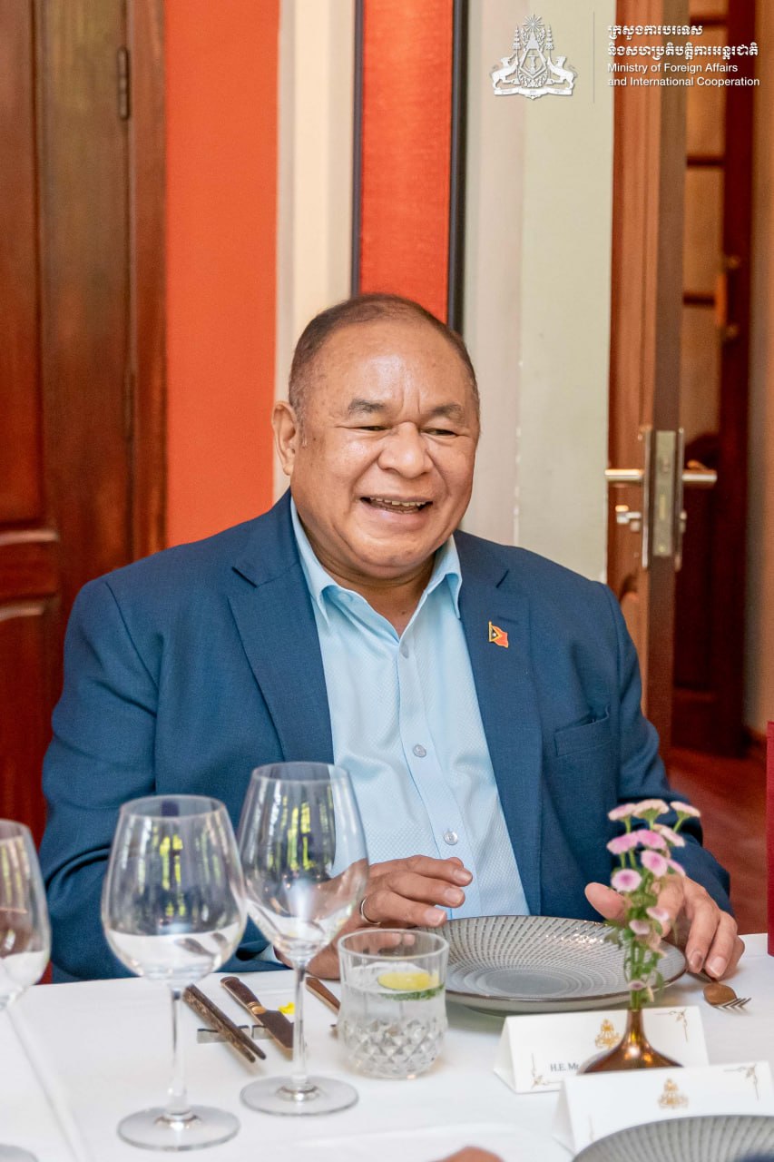 (ភ្នំពេញ)៖ លោកឧបនាយករដ្ឋមន្រ្តី ប្រាក់ សុខុន រដ្ឋមន្ត្រីការបរទេស និងសហប្រតិបត្តិការអន្តរជាតិ នៅថ្ងៃទី២ ខែមេសា ឆ្នាំ២០២៦ បានរៀបចំអាហារថ្ងៃត្រង់ជូនជាកិត្តិយសដល់ លោក បេនឌីតូ ដូស សាន់តូស ហ្វ្រេសតាស រដ្ឋមន្រ្តីការបរទេស និងសហប្រតិបត្តិការទីម័រឡេស្តេ ក្នុងឱកាសលោកអញ្ជើញមកចូលរួមកិច្ចប្រជុំត្រួតពិនិត្យពាក់កណ្តាលអាណត្តិ នៃកម្មវិធីសកម្មភាពដូហា សម្រាប់ប្រទេសមានការអភិវឌ្ឍតិចតួចនៃតំបន់អាស៊ី-ប៉ាស៊ីហ្វិក នៅរាជធានីភ្នំពេញ។
