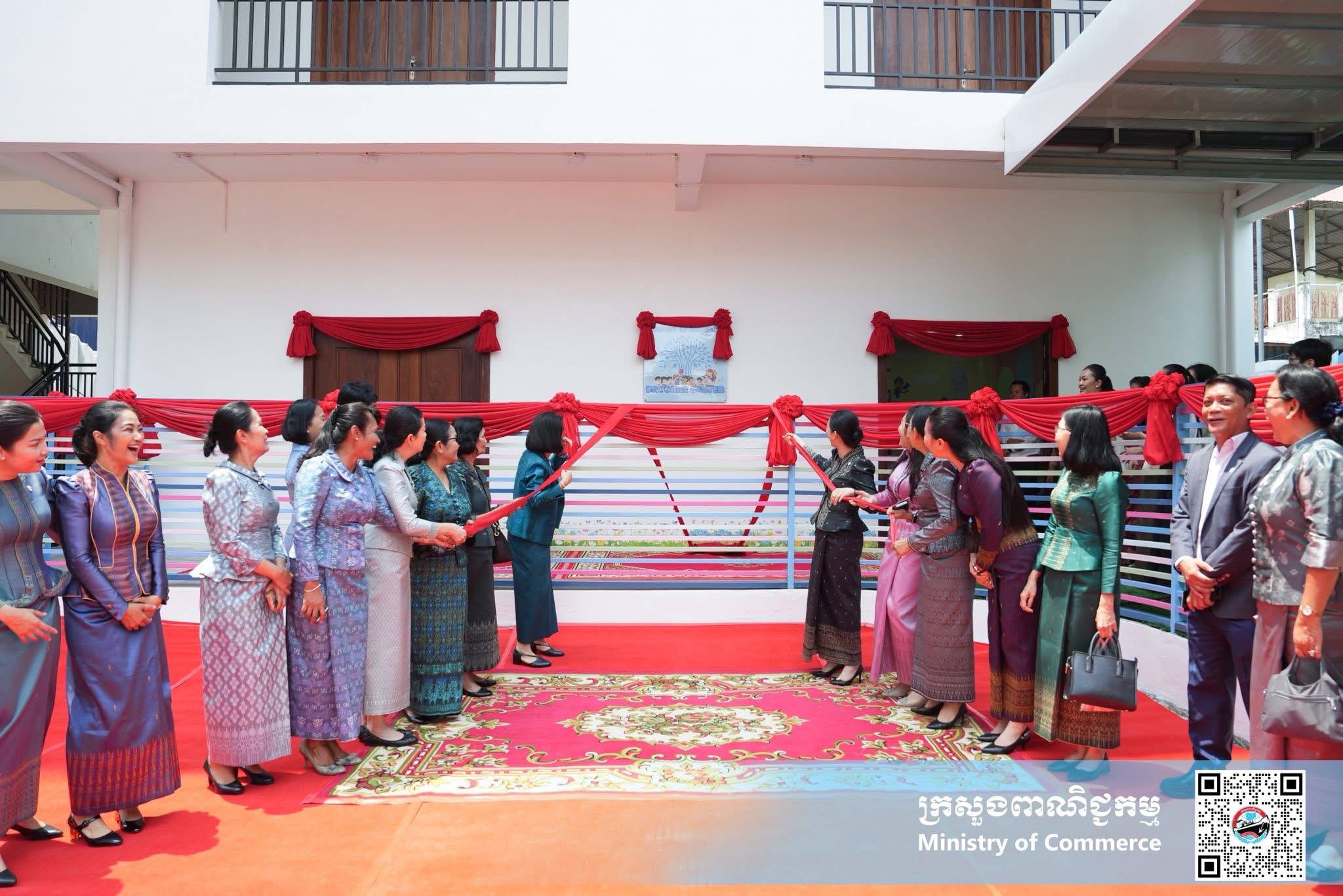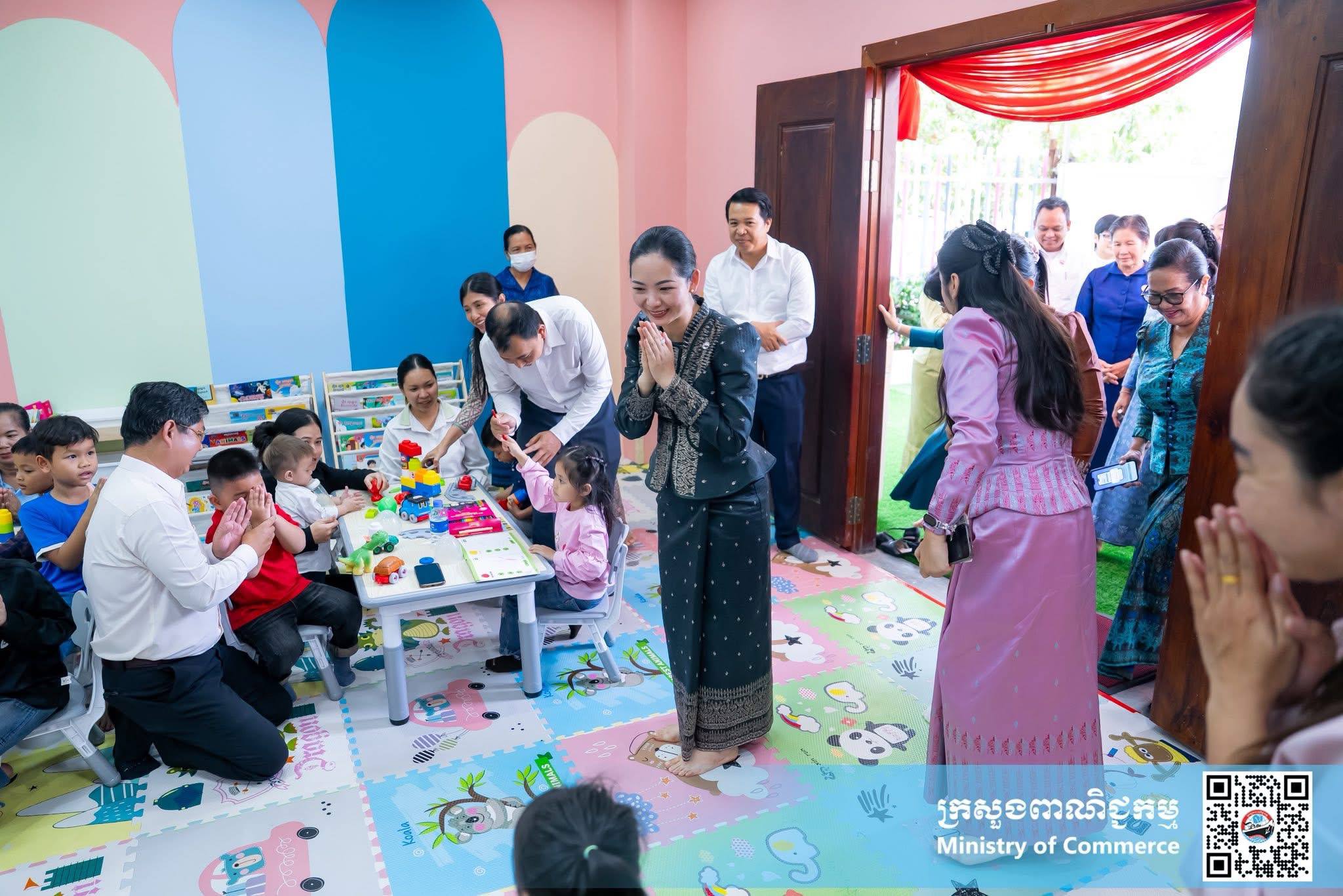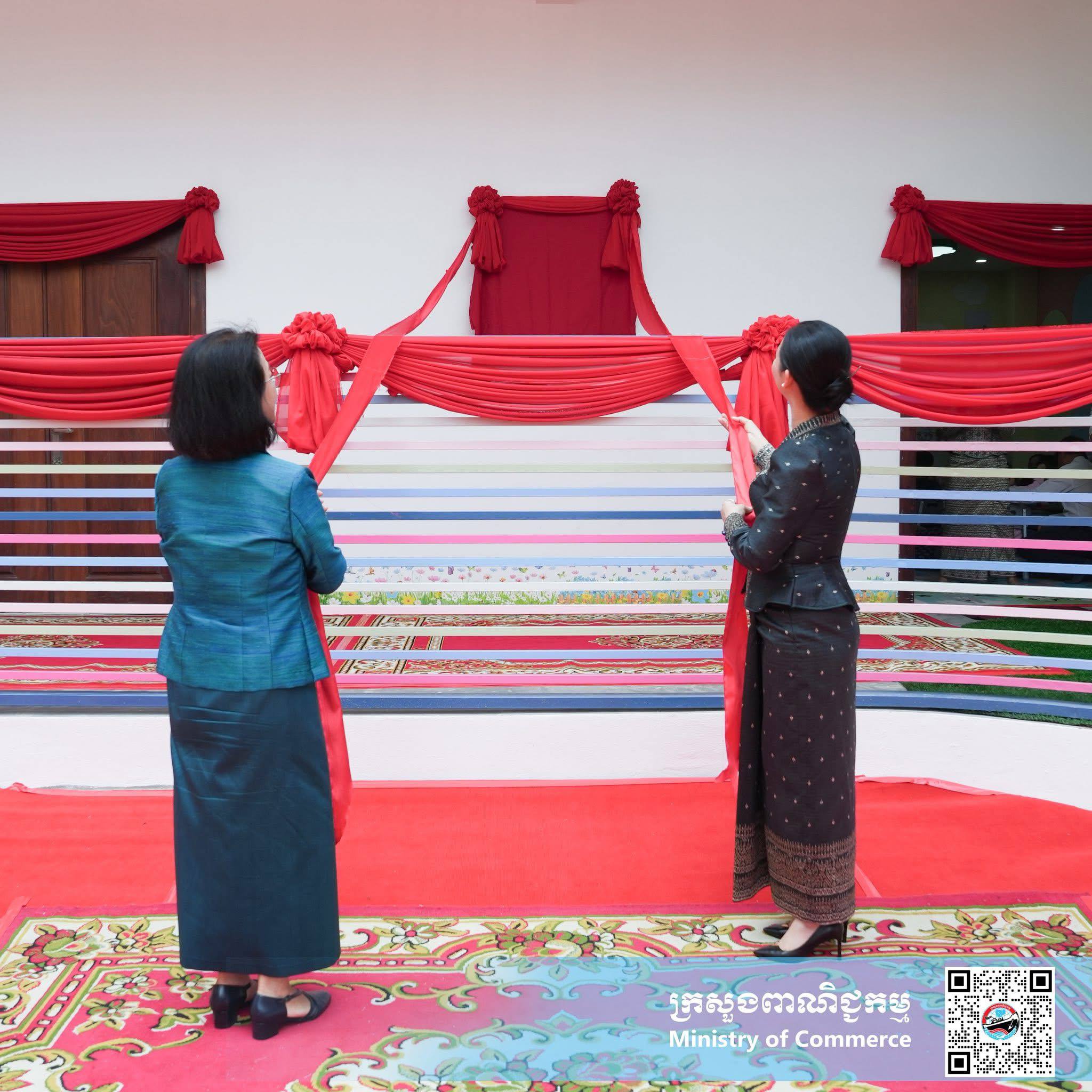 (ភ្នំពេញ)៖ កុមារដ្ឋាននៃក្រសួងពាណិជ្ជកម្ម ត្រូវបានរដ្ឋមន្រ្តីក្រសួងពាណិជ្ជកម្ម លោកស្រី ចម និម្មល និង រដ្ឋមន្ត្រីក្រសួងកិច្ចការនារី លោកស្រីកិត្តិបណ្ឌិត អ៊ឹង កន្ថាផាវី បើកសម្ពោធដាក់ឱ្យប្រើប្រាស់ នៅថ្ងៃទី២ ខែមេសា ឆ្នាំ២០២៦ ដើម្បីផ្តល់ជាសេវាកម្មថែទាំកុមារ ប្រកបដោយសុវត្ថិភាព ការថែរក្សាអនាម័យ សម្រាប់កូនៗរបស់ថ្នាក់ដឹកនាំ និងមន្រ្តីរាជការ-មន្រ្តីកិច្ចសន្យា ដែលកំពុងបម្រើការងារនៅក្រសួងពាណិជ្ជកម្ម។