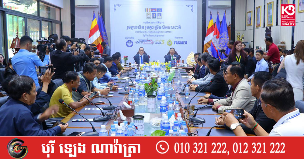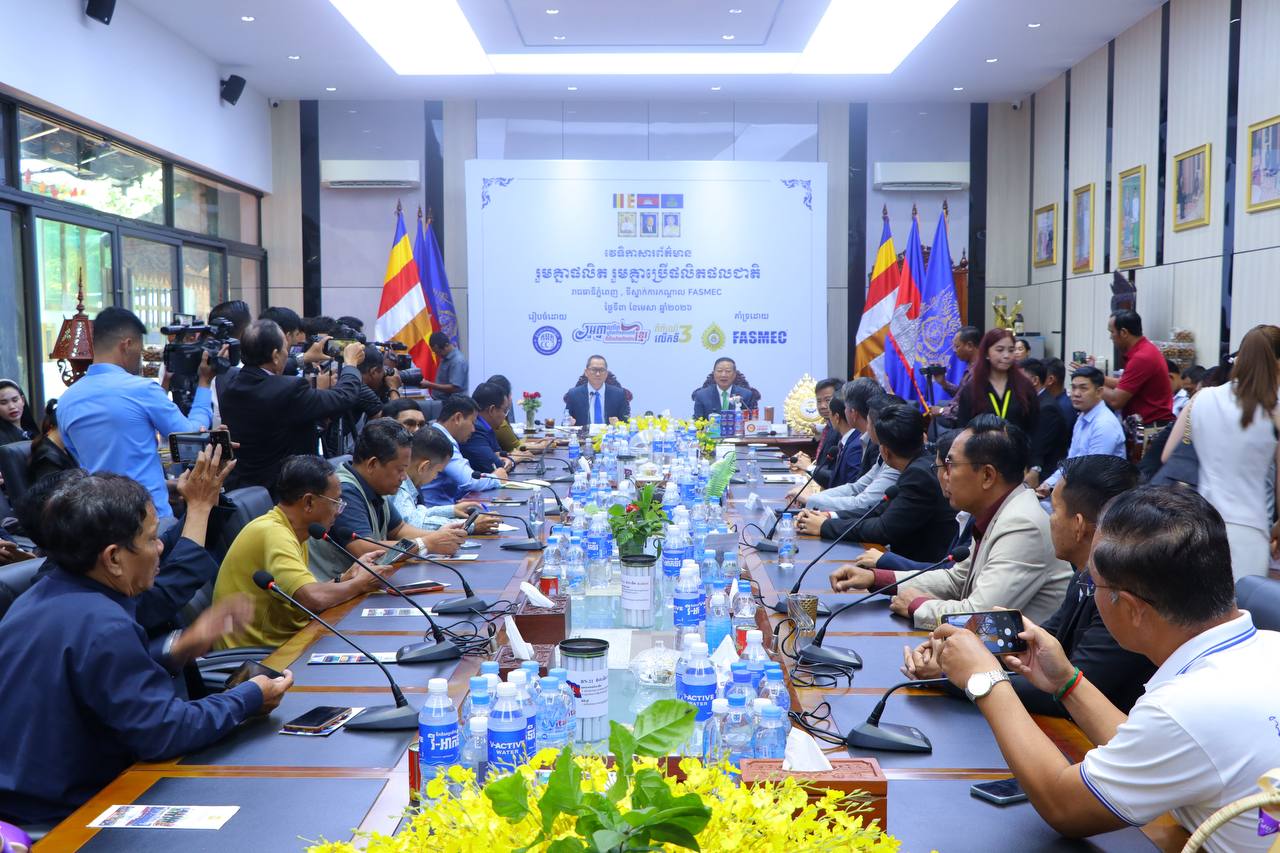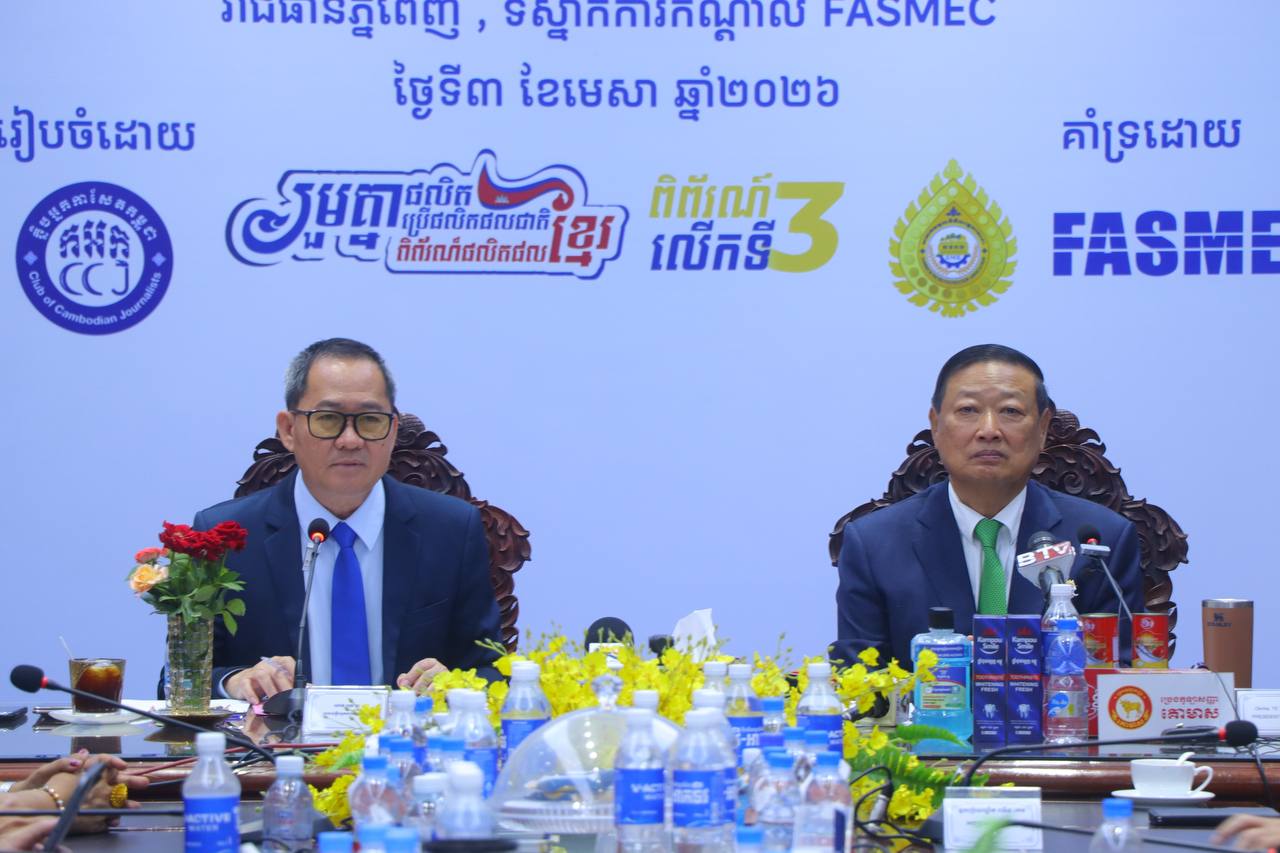 (ភ្នំពេញ)៖ ក្លិបអ្នកកាសែតកម្ពុជា (ក.អ.ក) និងសមាគមមូលនិធិសម្តេចតេជោ ដើម្បីអភិវឌ្ឍន៍សហគ្រាសធុនតូច និងមធ្យមនៅកម្ពុជា (FASMEC) នៅថ្ងៃទី៣ ខែមេសា ឆ្នាំ២០២៦ បានរៀបចំវេទិកាសារព័ត៌មានលើប្រធានបទ៖ «រួមគ្នាផលិត រួមគ្នាប្រើផលិតផលជាតិ» ដើម្បីពង្រឹង និងពង្រីកផលិតផលក្នុងស្រុកទាំងបរិមាណ និងគុណភាព សុវត្ថិភាព ធ្វើយ៉ាងណាបំពេញតម្រូវការប្រើប្រាស់អំឡុងពេលពហិការមិនប្រើប្រាស់ផលិតផលប្រទេសថៃ។