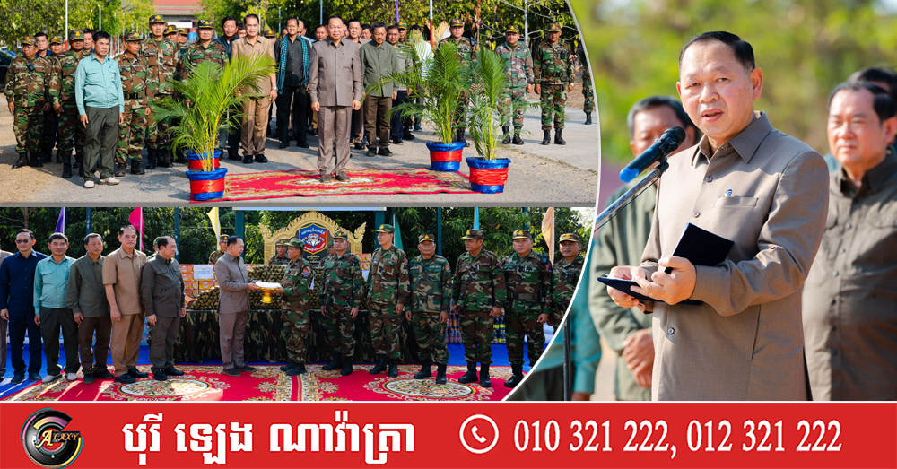 (បាត់ដំបង)៖ លោក ឆាយ ឫទ្ធិសែន រដ្ឋមន្ត្រីក្រសួងអភិវឌ្ឍន៍ជនបទ រួមដំណើរដោយឯកឧត្តមជាថ្នាក់ដឹកនាំ និងមន្ដ្រីរាជការក្រសួងអភិវឌ្ឍន៍ជនបទ នាព្រឹកថ្ងៃទី៣ ខែមេសា ឆ្នាំ២០២៦ បានអញ្ជើញសំណេះសំណាលសួរសុខទុក្ខ និងប្រគល់អំណោយដ៏ថ្លៃថ្លារបស់សម្តេចមហាបវរធិបតីនាយករដ្ឋមន្ដ្រី និងលោកជំទាវបណ្ឌិត ជូនដល់កងទ័ពជួរមុខដែលបាននិងកំពុងឈរជើងបំពេញភាកិច្ចការពារដែនអធិបតេយ្យភាព និងបូរណភាពទឹកដីកម្ពុជា នៅទីបញ្ជាការកងពលតូចថ្មើរជើងលេខ៥២ ស្ថិតក្នុងស្រុករតនមណ្ឌល ខេត្តបាត់ដំបង ដែលបានចងជាសម្ព័ន្ធមេត្រីជាមួយក្រសួងអភិវឌ្ឍន៍ជនបទ នាឱកាសចូលឆ្នាំថ្មីប្រពៃណីជាតិពេលខាងមុខនេះ។
