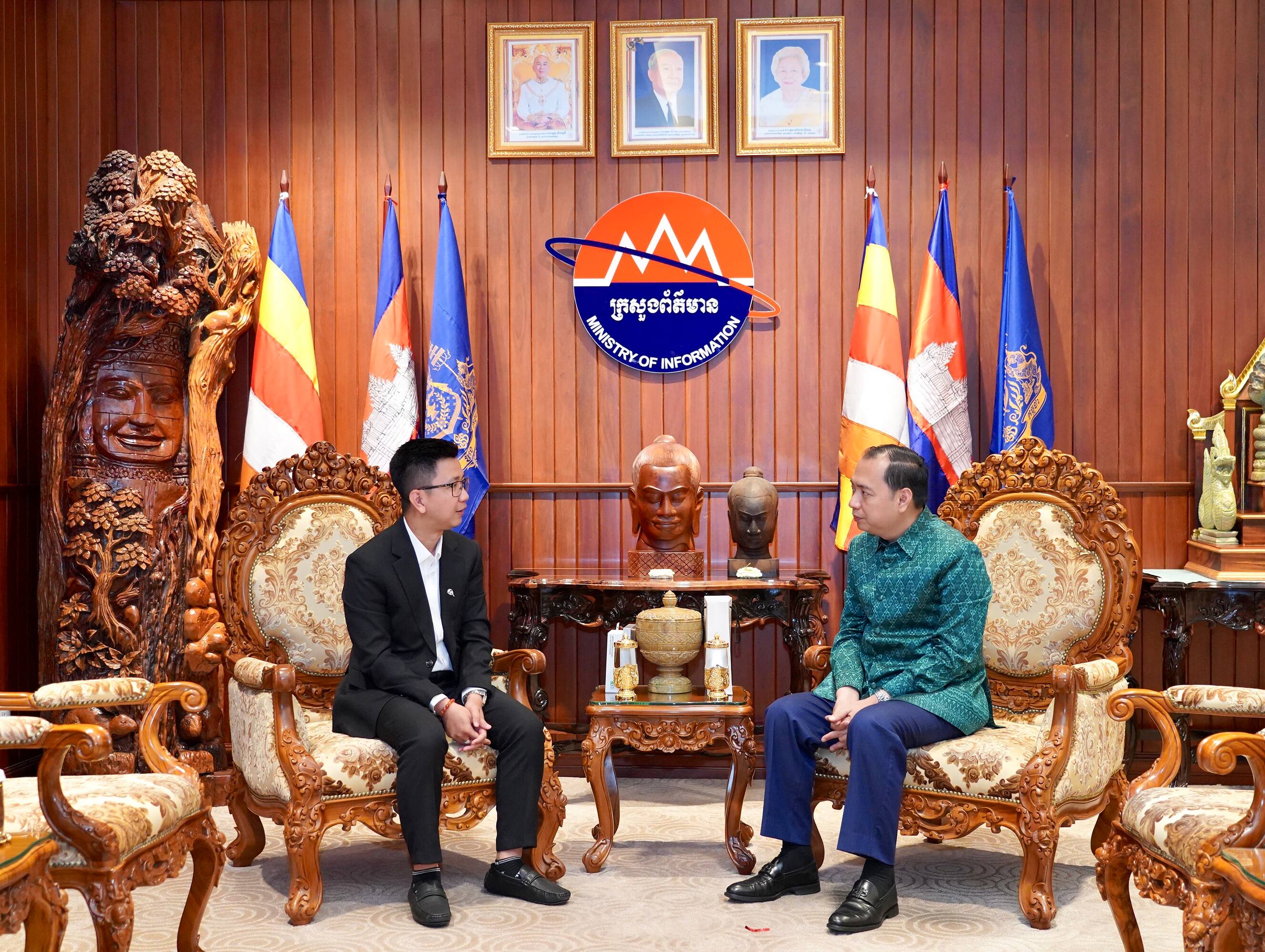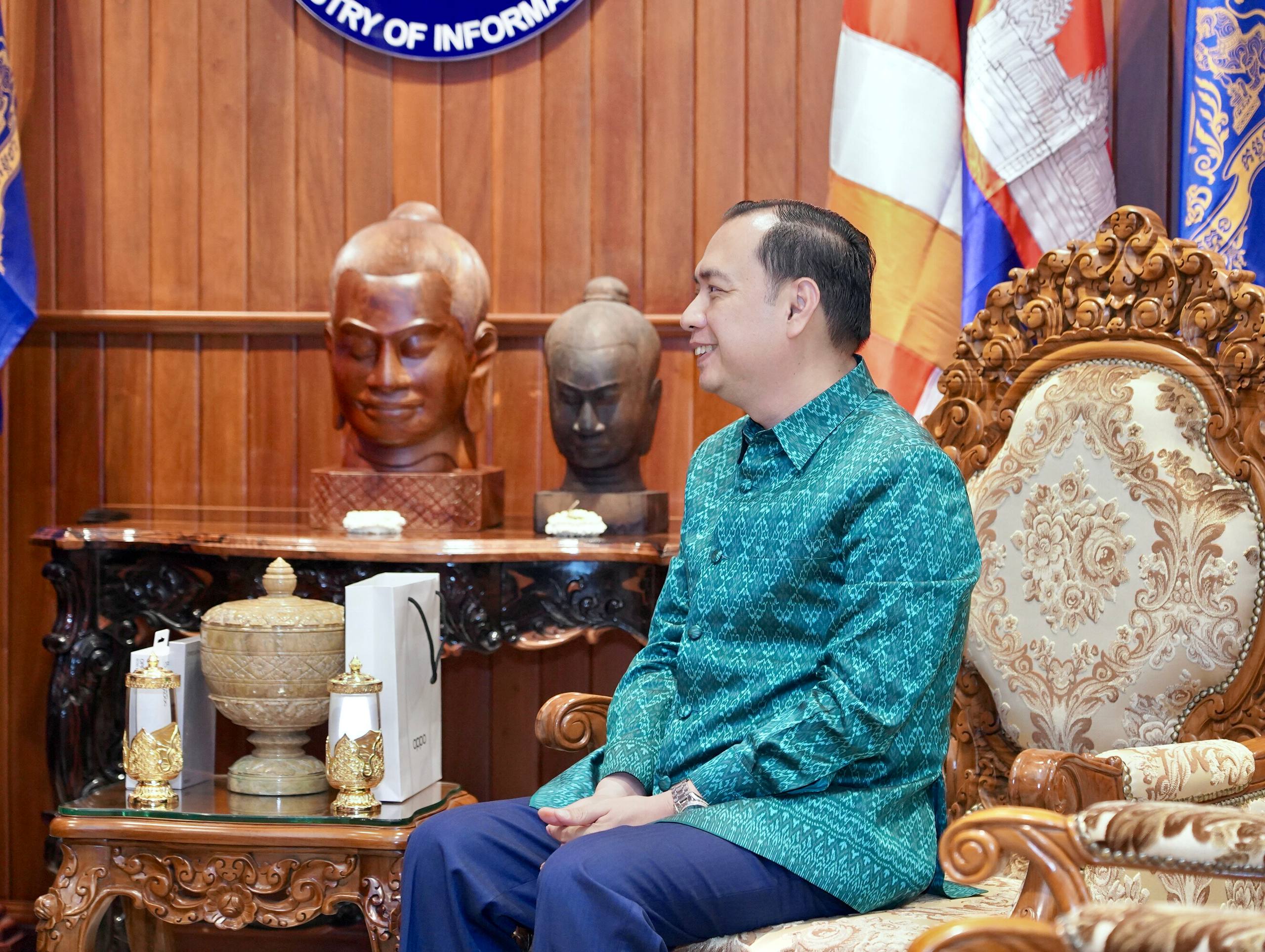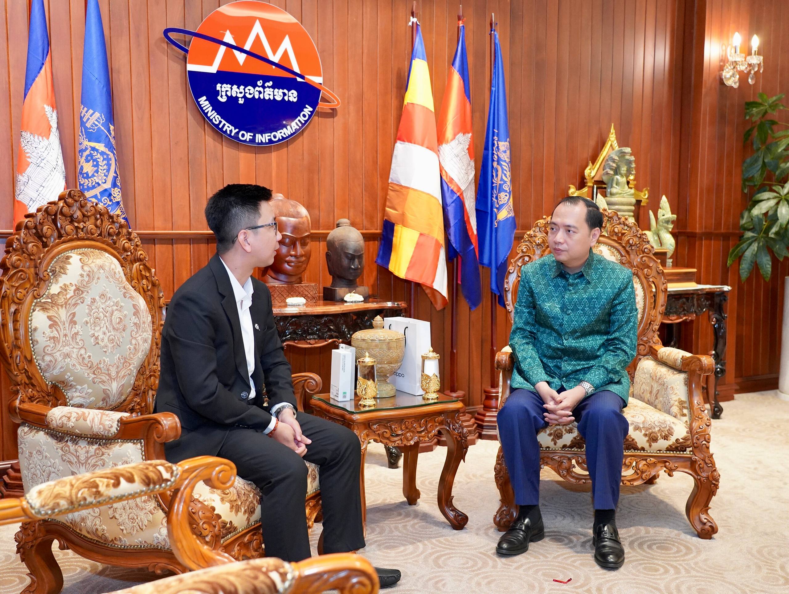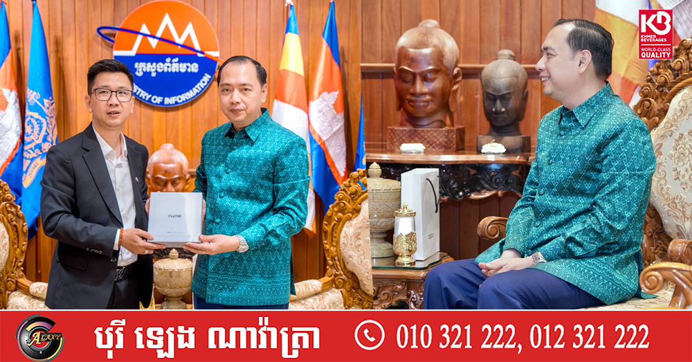 (ភ្នំពេញ)៖ លោក នេត្រ ភក្ត្រា រដ្ឋមន្ត្រីក្រសួងព័ត៌មាន នៅព្រឹកថ្ងៃទី៣ ខែមេសា ឆ្នាំ២០២៦ បានអនុញ្ញាតឱ្យលោក ទូច ស៊ាងអ៊ុយ (Steven) នាយកគ្រប់គ្រងផែនការ និងទីផ្សារ ជាតំណាងក្រុមហ៊ុន OPPO ចូលជួបសម្ដែងការគួរសម និងពិភាក្សាការងារ ក្នុងឱកាសនោះក្រុមហ៊ុន OPPO បាននាំយកនូវកាដូជូនលោករដ្ឋមន្ត្រី ដើម្បីជាការចូលរួមអបអរសាទរពិធីបុណ្យចូលឆ្នាំថ្មីប្រពៃណីជាតិខ្មែរ។