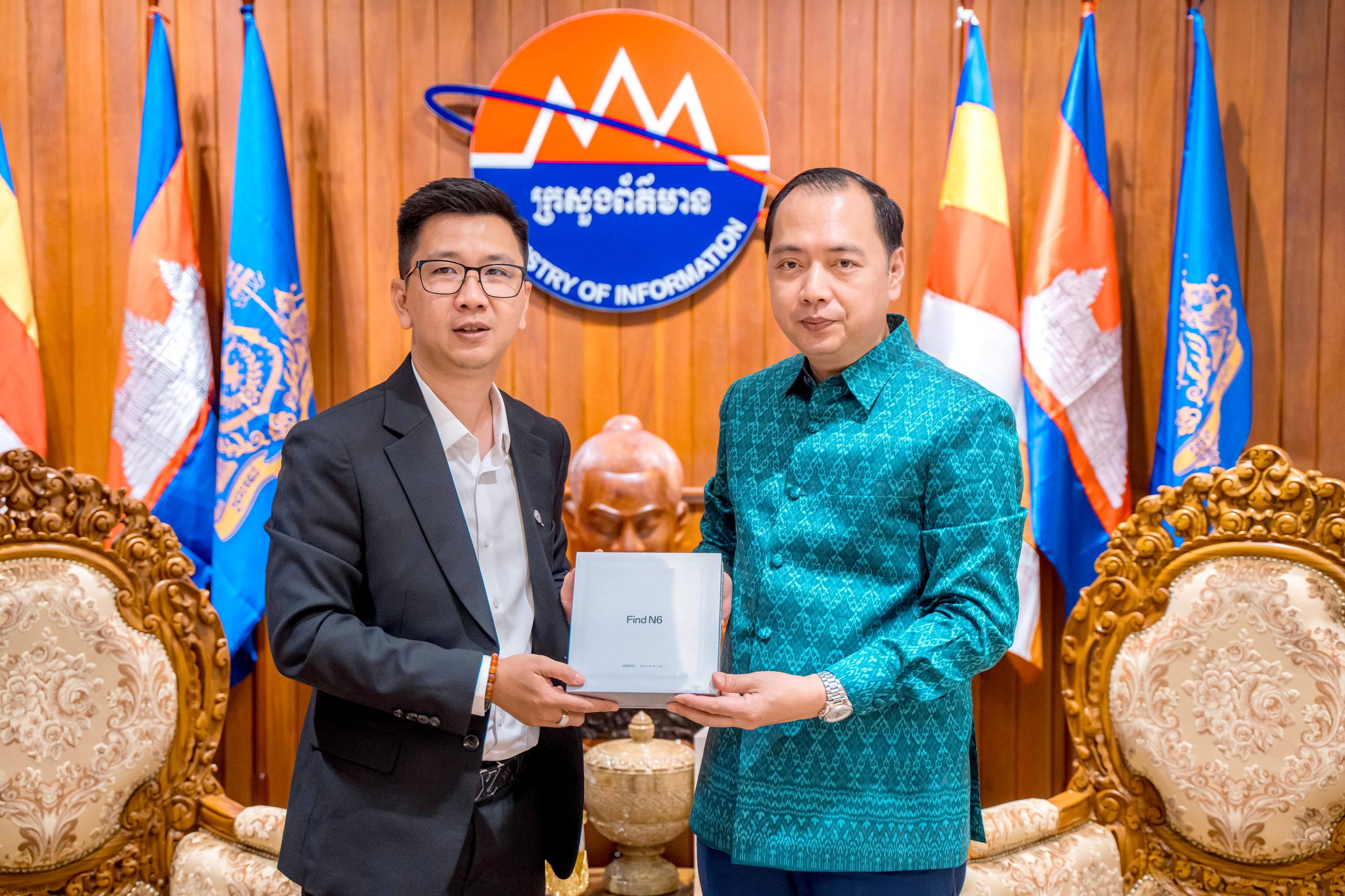 ក្នុងឱកាសនេះ តំណាងក្រុមហ៊ុន OPPO លោក STEVEN ក៏បាននាំយកនូវផលិតផលស្មាតហ្វូនបត់លំដាប់កំពូលជំនាន់ថ្មីបំផុតគឺ OPPO Find N6 ដើម្បីបង្ហាញជូនដល់លោករដ្ឋមន្ត្រី ដែលនេះជាការឆ្លុះបញ្ចាំងពីការរីកចម្រើននៃបច្ចេកវិទ្យាដ៏ទំនើប និងការប្តេជ្ញាចិត្តរបស់ក្រុមហ៊ុន OPPO ក្នុងការផ្តល់ជូននូវបទពិសោធន៍ដ៏ល្អឯកសម្រាប់អ្នកប្រើប្រាស់នៅក្នុងប្រទេសកម្ពុជា។