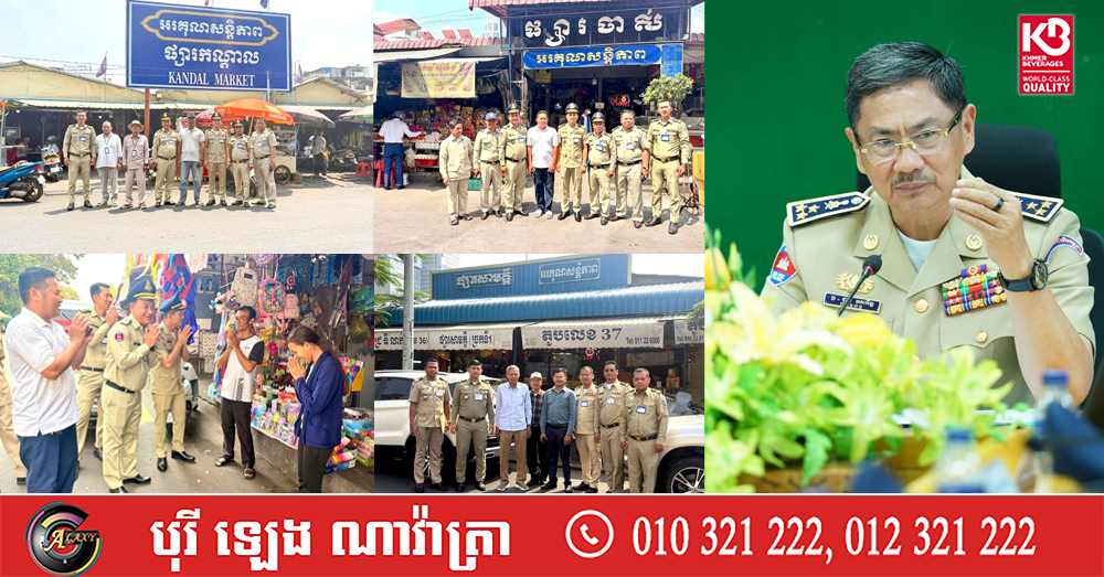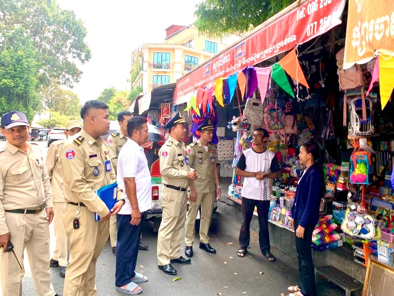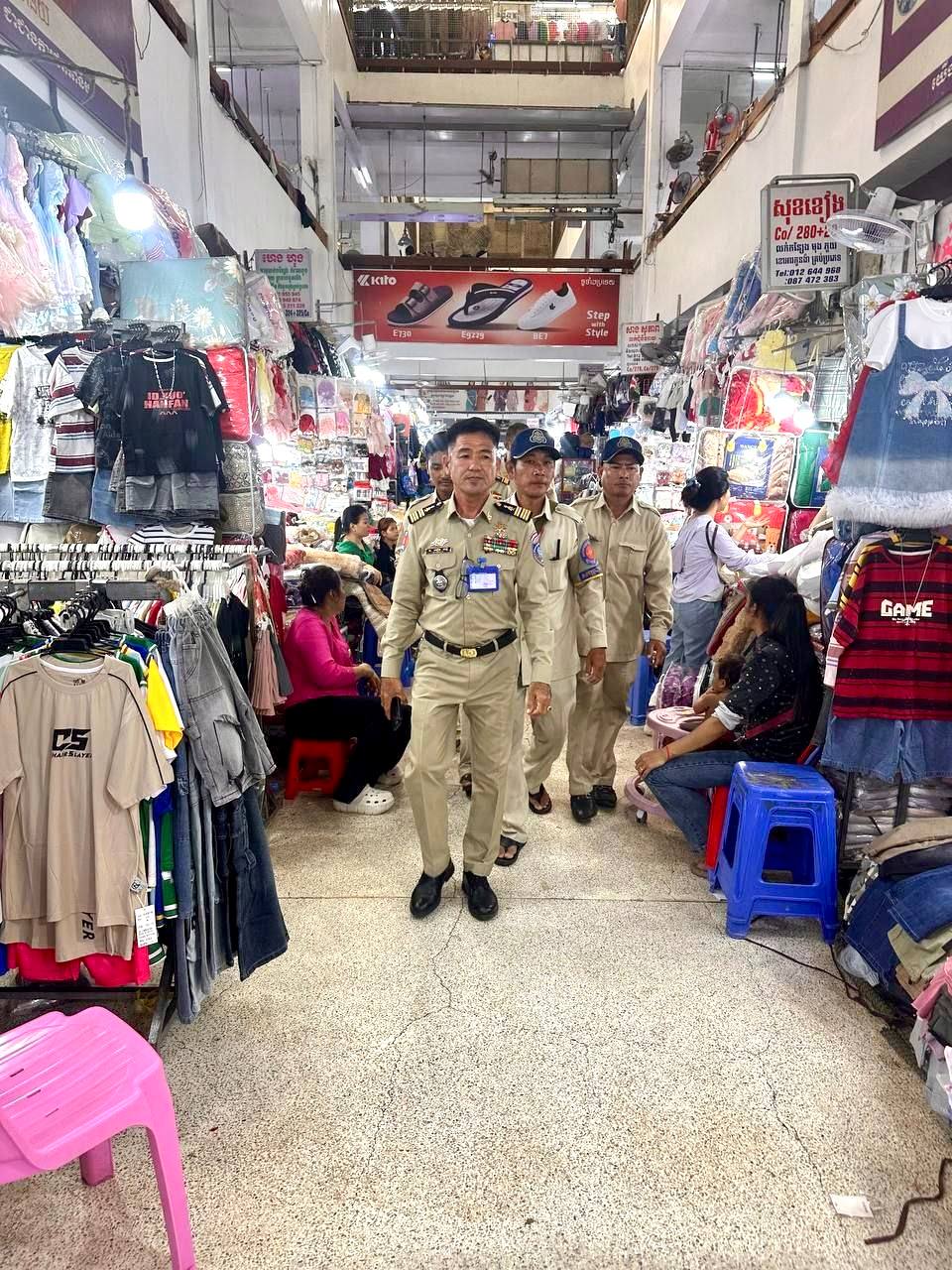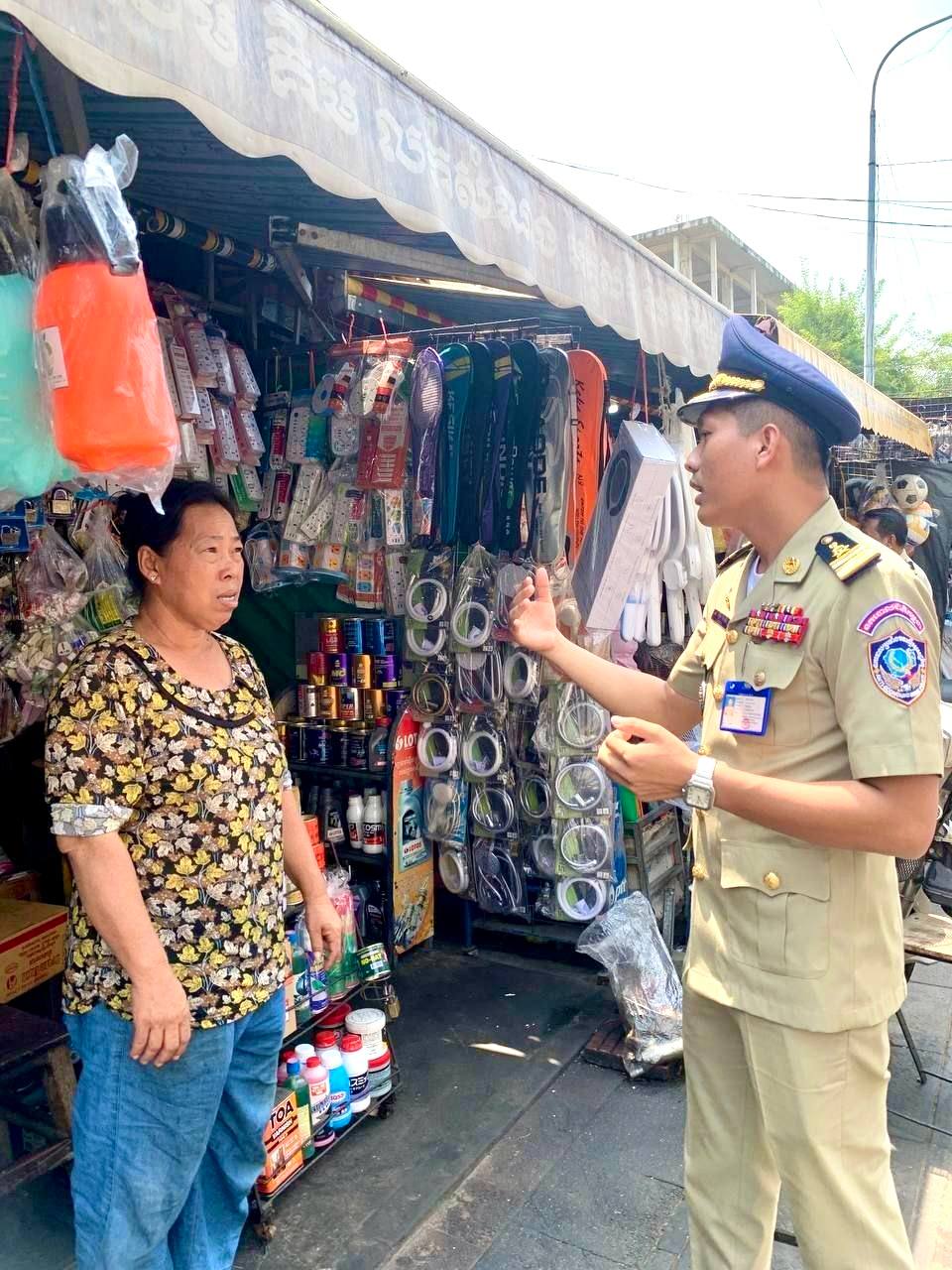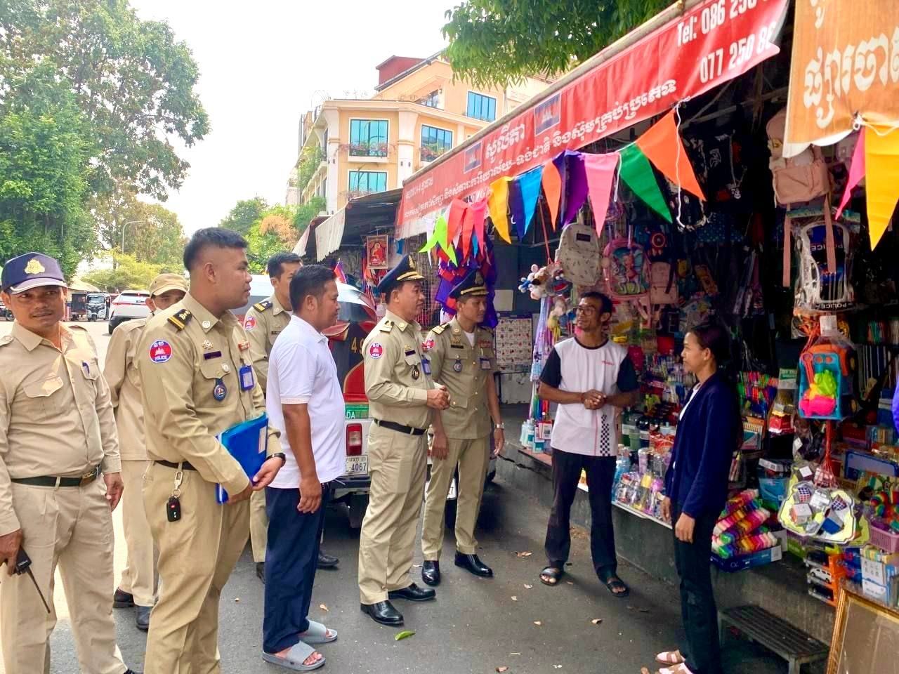 នគរបាលចុះទៅគ្រប់ទីផ្សារធំៗ ក្នុងភូមិសាស្ត្ររាជធានីភ្នំពេញ ដើម្បីណែនាំគ្រប់អាជីវករ មិនអនុញ្ញាតឱ្យនាំចូល តាំងលក់កាំភ្លើងបាញ់ទឹក ផាវ កាំជ្រួច ឬ គ្រឿងផ្ទុះផ្សេងៗ