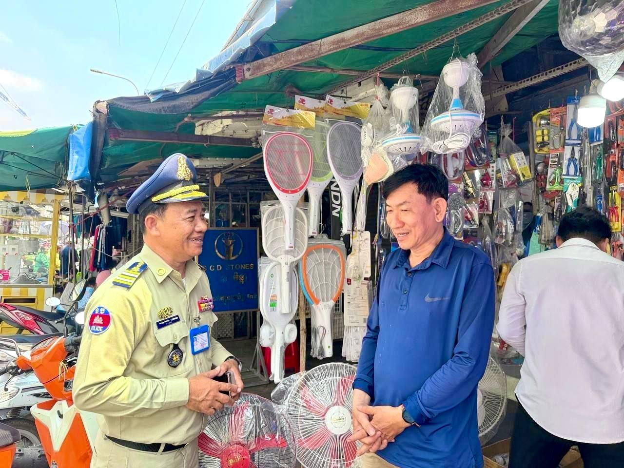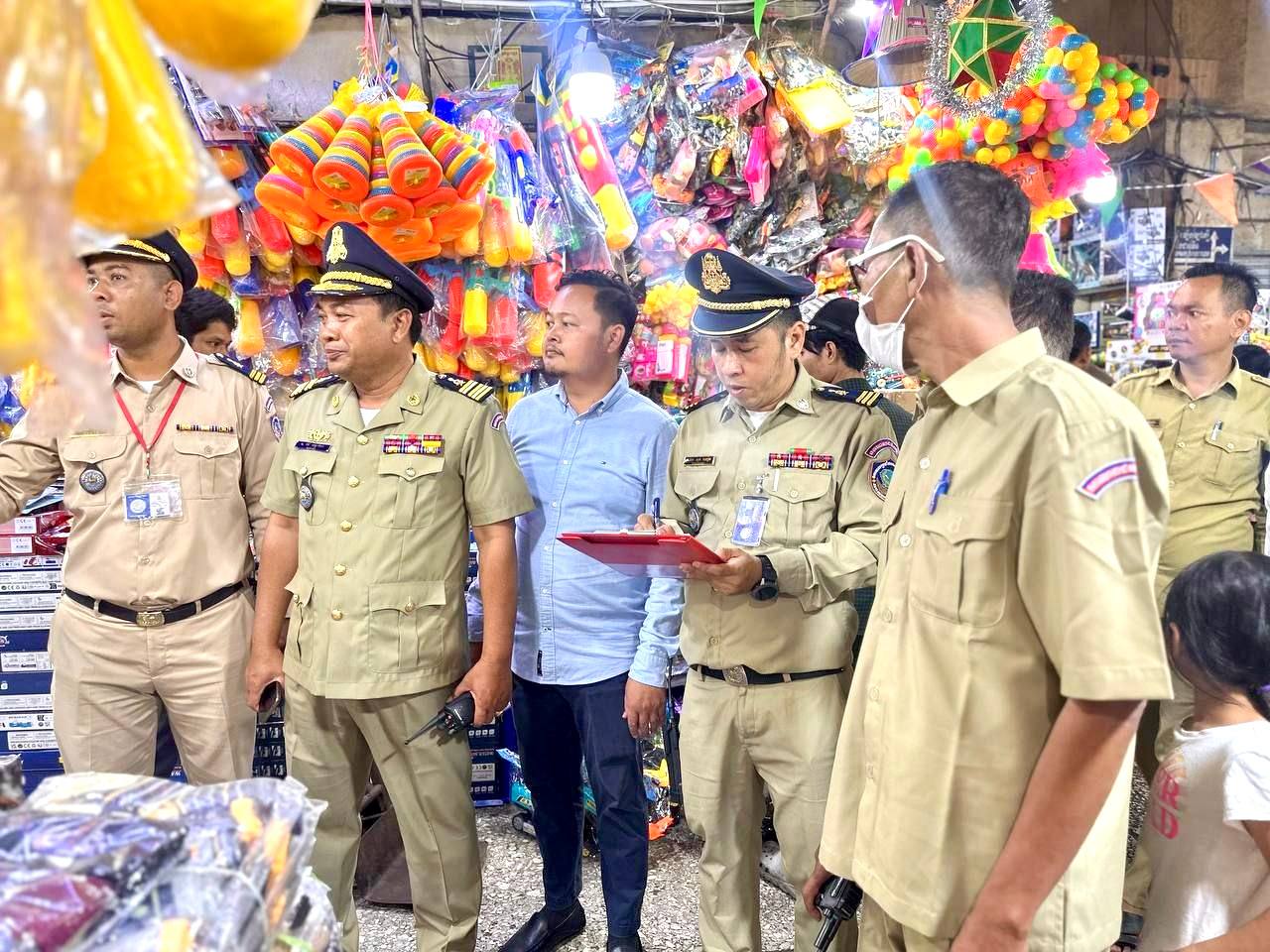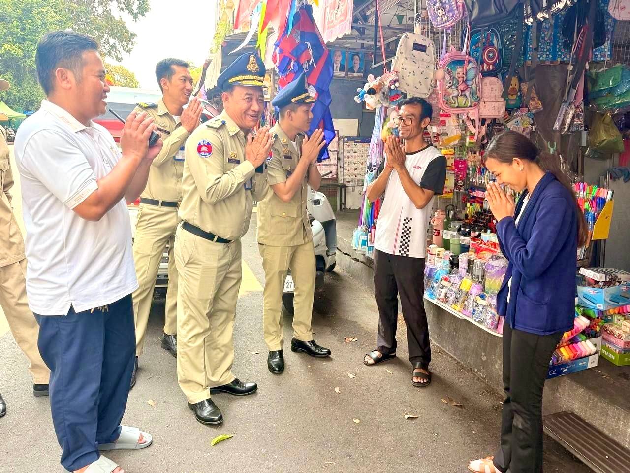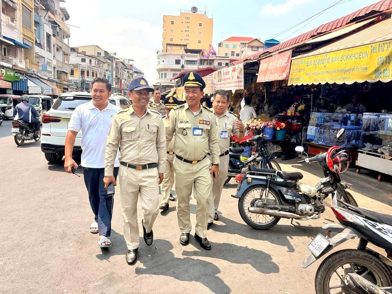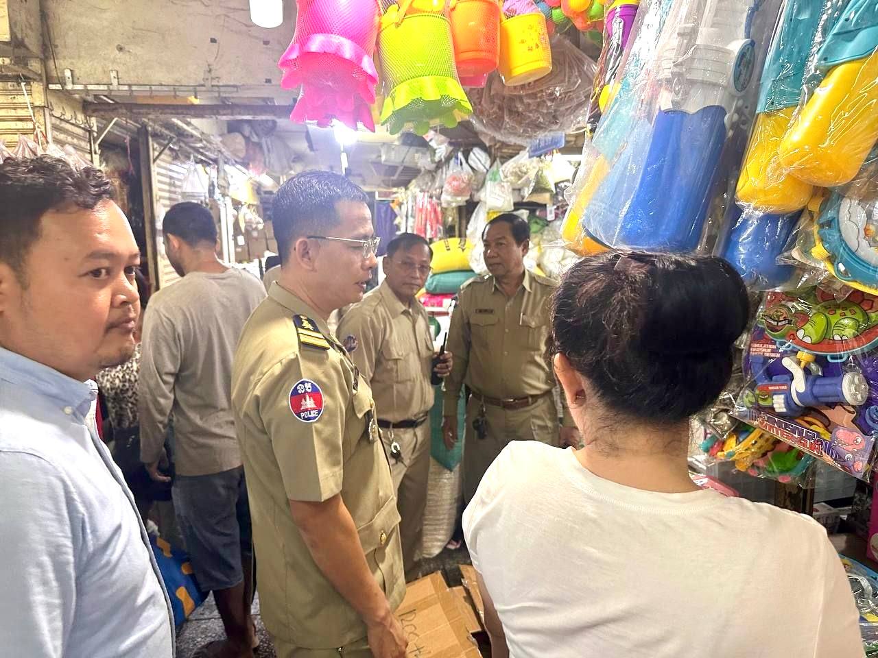 នគរបាលចុះទៅគ្រប់ទីផ្សារធំៗ ក្នុងភូមិសាស្ត្ររាជធានីភ្នំពេញ ដើម្បីណែនាំគ្រប់អាជីវករ មិនអនុញ្ញាតឱ្យនាំចូល តាំងលក់កាំភ្លើងបាញ់ទឹក ផាវ កាំជ្រួច ឬ គ្រឿងផ្ទុះផ្សេងៗ