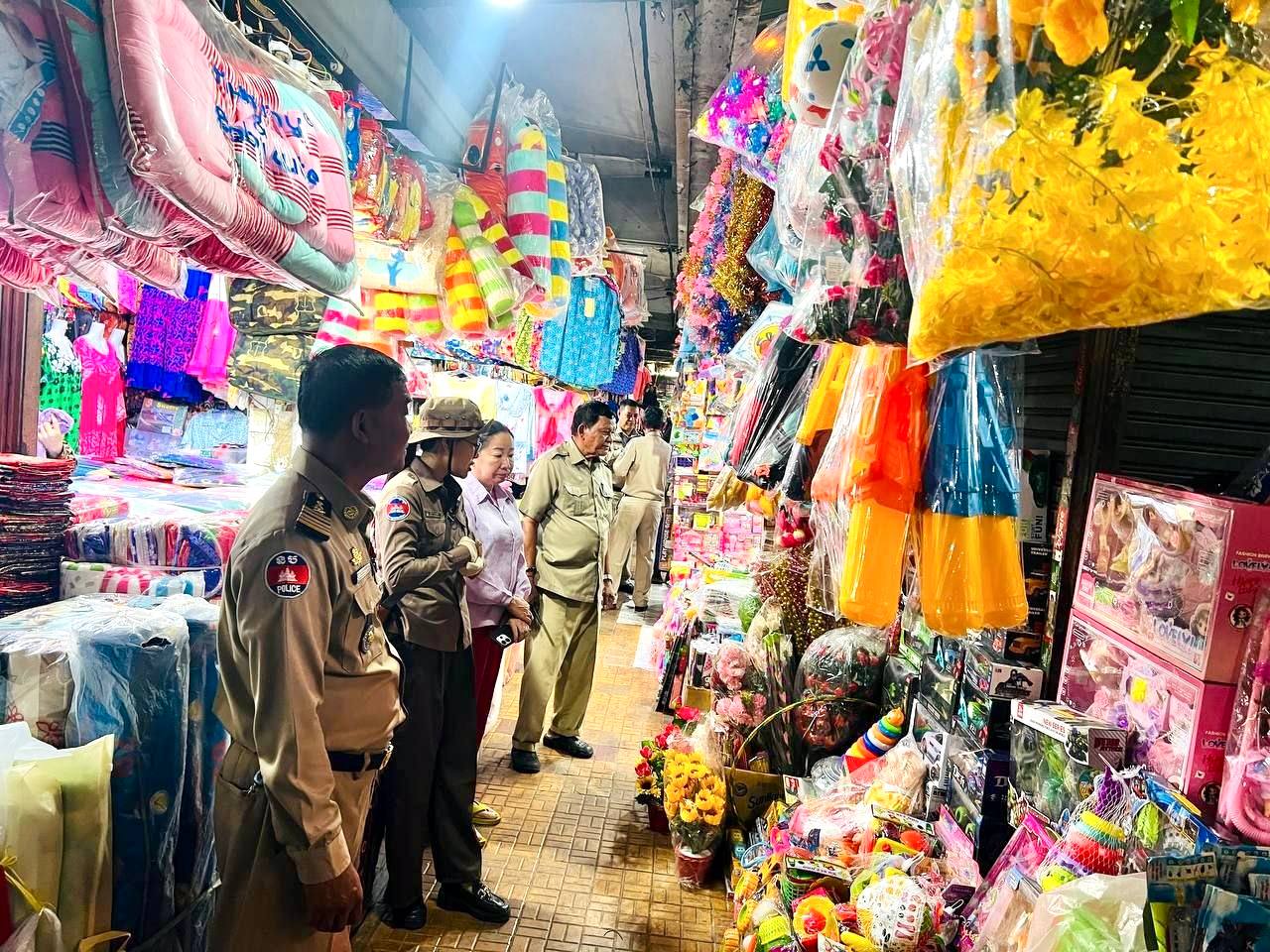 (ភ្នំពេញ)៖ អនុវត្តន៍តាមសេចក្តីណែនាំរបស់រដ្ឋបាលរាជធានីភ្នំពេញ និងតាមគោលការណ៍ដឹកនាំរបស់លោកឧត្តមសេនីយ៍ឯក ជួន ណារិន្ទ អគ្គស្នងការរង និងជាស្នងការនគរបាលរាជធានីភ្នំពេញ ស្តីពីការរក្សាសន្តិសុខ សុវត្ថិភាព សណ្តាប់ធ្នាប់ និងរបៀបរៀបរយសាធារណៈ ក្នុងរាជធានីភ្នំពេញ នាឱកាសបុណ្យចូលឆ្នាំថ្មី ប្រពៃណីជាតិ កម្លាំងនគរបាលប្រឆាំងបទល្មើសសេដ្ឋកិច្ច បានចុះទៅគ្រប់ទីផ្សារធំៗ ក្នុងភូមិសាស្ត្ររាជធានីភ្នំពេញ ដើម្បីណែនាំគ្រប់អាជីវករ មិនអនុញ្ញាតឱ្យនាំចូល តាំងលក់កាំភ្លើងបាញ់ទឹក ផាវ កាំជ្រួច ឬ គ្រឿងផ្ទុះផ្សេងៗ