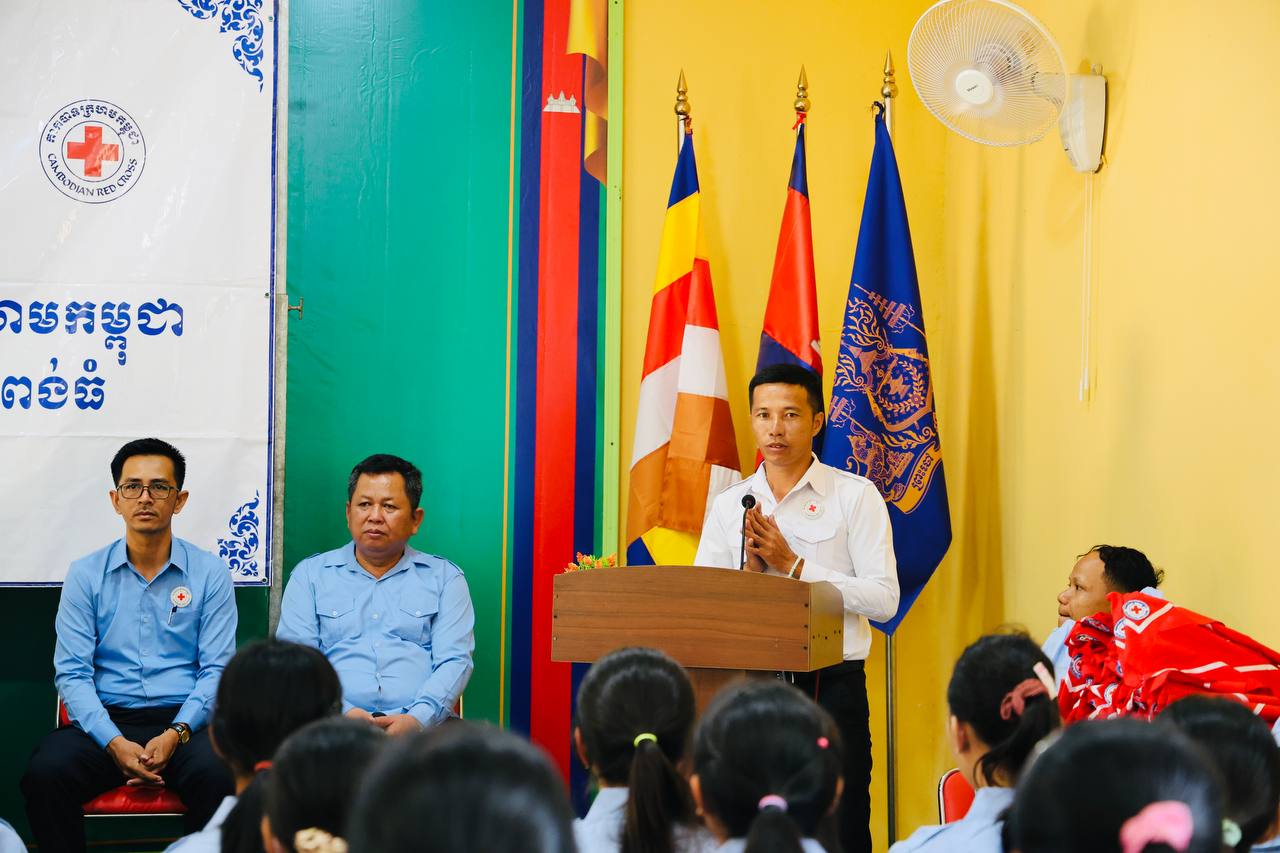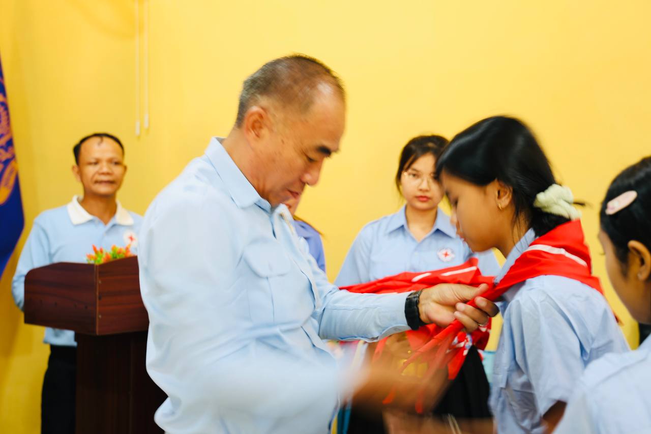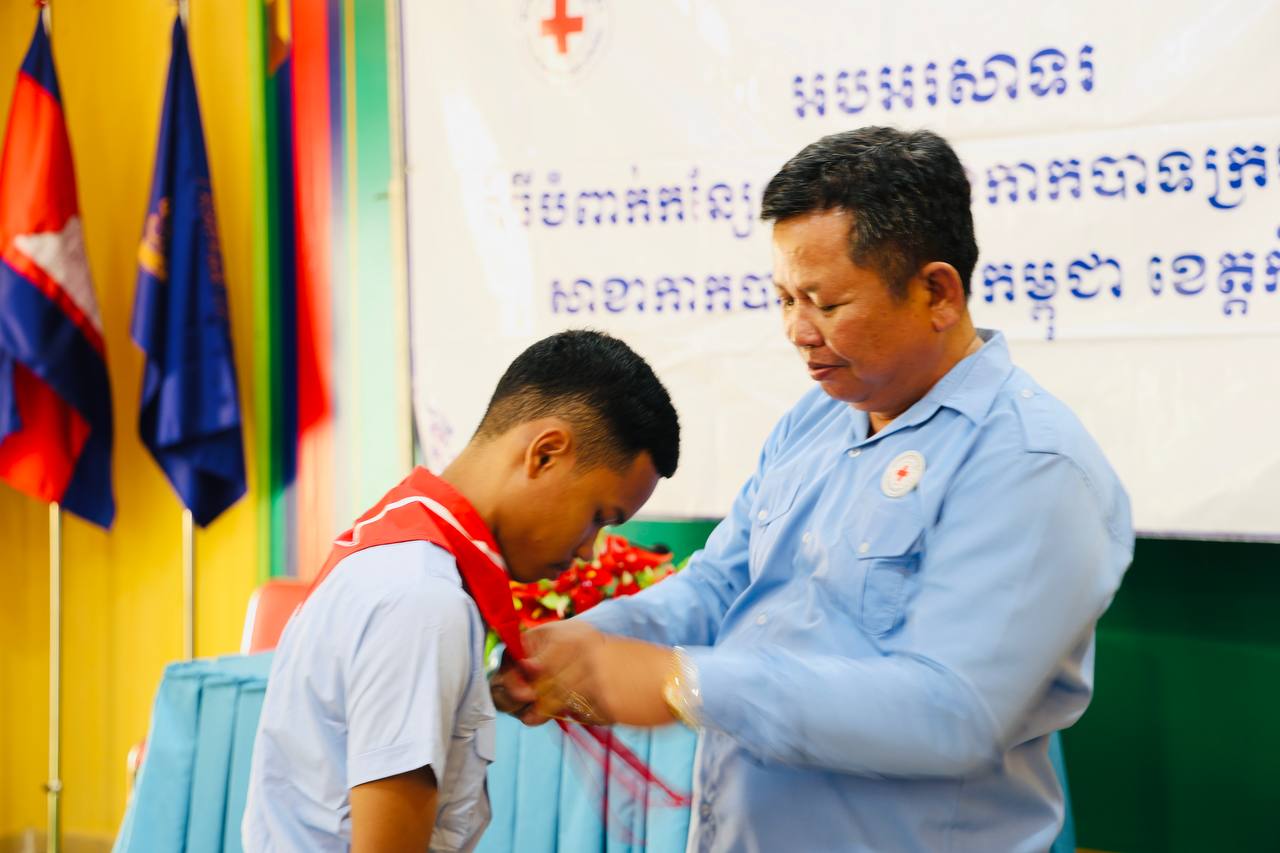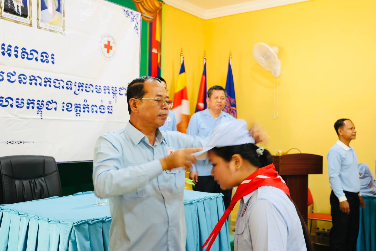 (កំពង់ធំ)៖ លោក សាយ គឹមឡម អភិបាលស្រុកស្ទោង ខេត្តកំពង់ធំ លើកទឹកចិត្តដល់សិស្សានុសិស្ស ត្រូវខិតខំសិក្សារៀនសូត្រឲ្យអស់ពីលទ្ធភាព ព្រោះមានតែចំណេះដឹងទេ ដែលអាចកំណត់ និងកែប្រែជោគវាសនាអនាគតរបស់យើងឲ្យត្រចះត្រចង់បាន។ លោក សាយ គឹមឡម បានថ្លែងក្នុងពិធីបំពាក់កន្សែងយុវជនកាកបាទក្រហមកម្ពុជា នៃវិទ្យាល័យរស្មីសោភ័ណ ស្រុកស្ទោង ខេត្តកំពង់ធំ ១០២នាក់ ថ្ងៃទី៣ ខែមេសា ឆ្នាំ២០២៦។