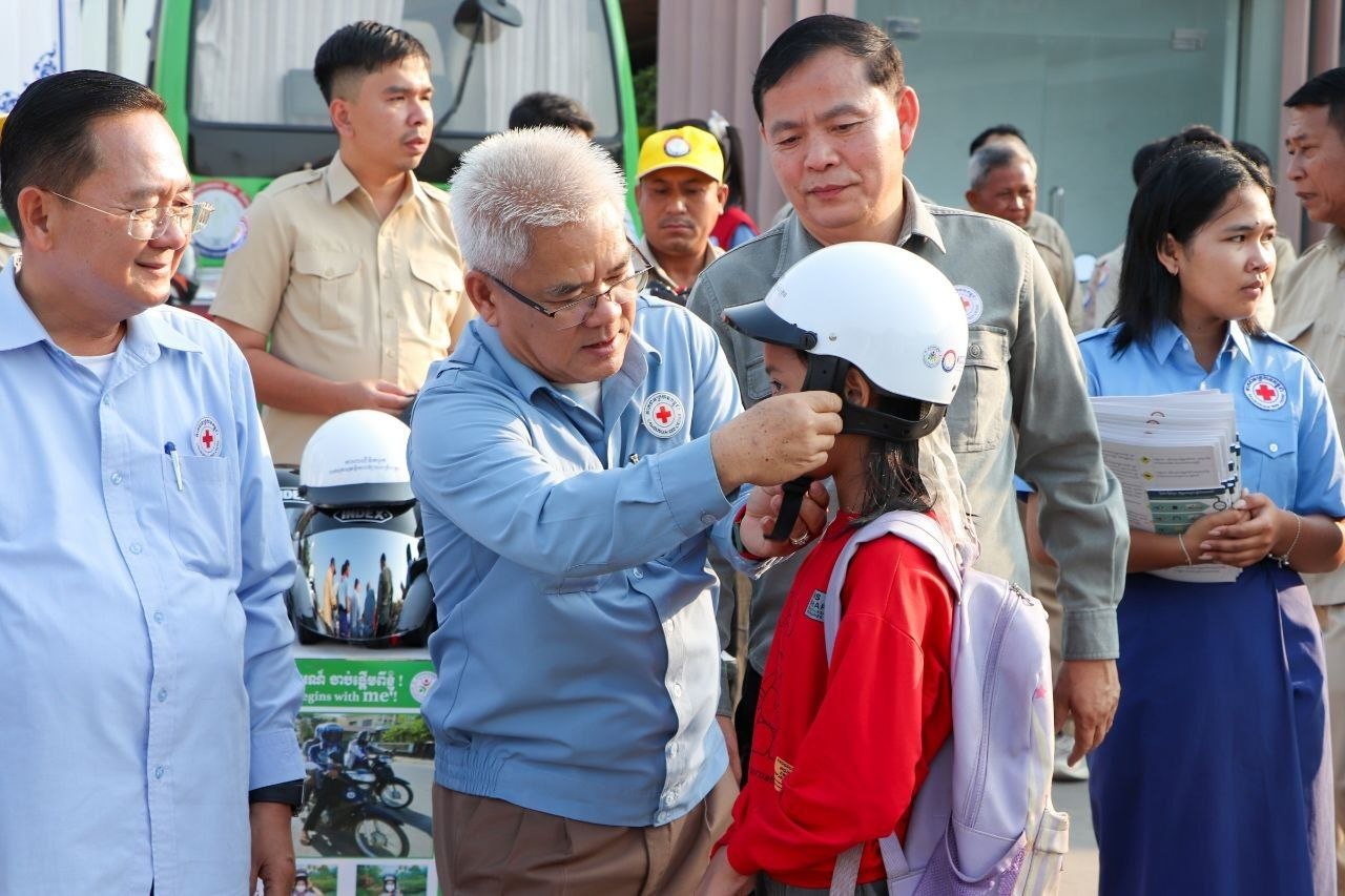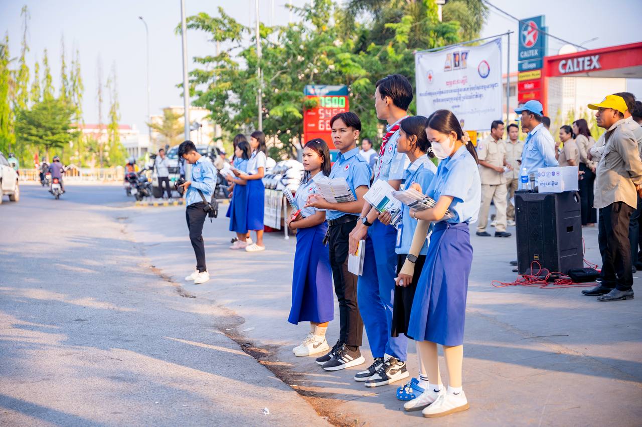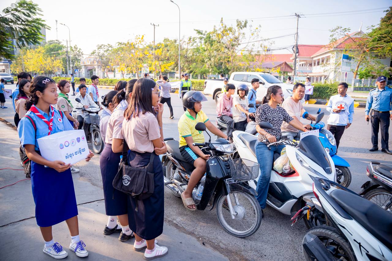 (បាត់ដំបង)៖ នៅថ្ងៃទី៣ ខែមេសា ឆ្នាំ២០២៦នេះ សាខាកាកបាទក្រហមកម្ពុជាខេត្តបាត់ដំបង បានធ្វើយុទ្ធនាការស្តីពី «ការចូលរួមលើកកម្ពស់សុវត្ថិភាពចរាចរណ៍ផ្លូវគោក និងបរិយាបន្ននៅកម្ពុជា» ដោយមានការអញ្ជើញជាអធិបតី ពីសំណាក់លោក សុខ លូ អភិបាលខេត្ត និងជាប្រធានគណៈកម្មាធិការសាខាកាកបាទក្រហមកម្ពុជាខេត្តបាត់ដំបង និងមានការអញ្ជើញចូលរួមពីលោក ព្រួញ រិទ្ធថា ប្រធានមន្ទីរសាធារណការ និងដឹកជញ្ជូនខេត្ត និងសហការី អនុសាខាក្រុង មន្ត្រីប្រតិបត្តិ និងយុវជនកាកបាទក្រហមកម្ពុជា អ្នកស្ម័គ្រចិត្ត និងមន្ត្រីនគរបាលចរាចរណ៍សរុបចំនួន ៩៩នាក់។