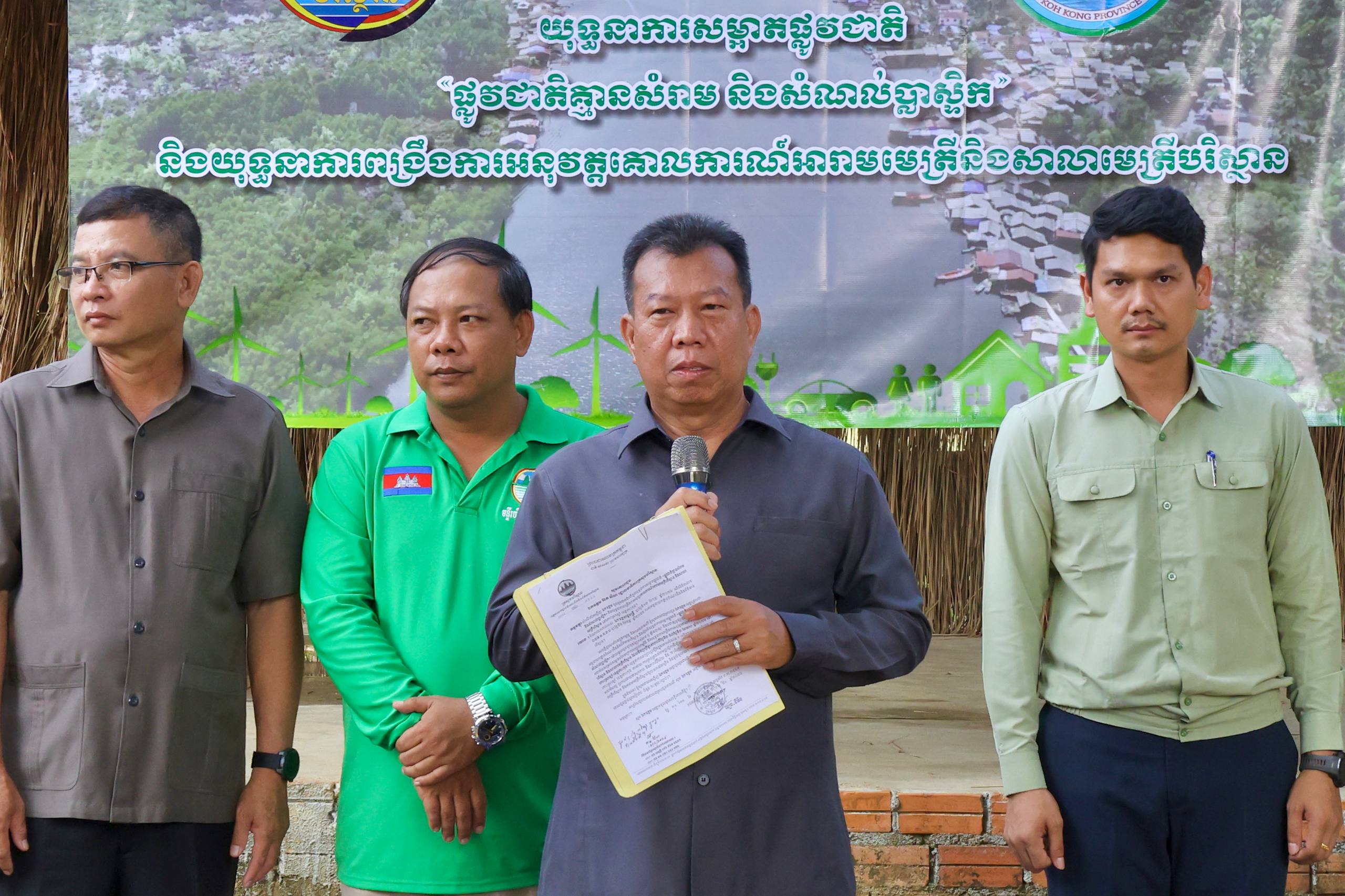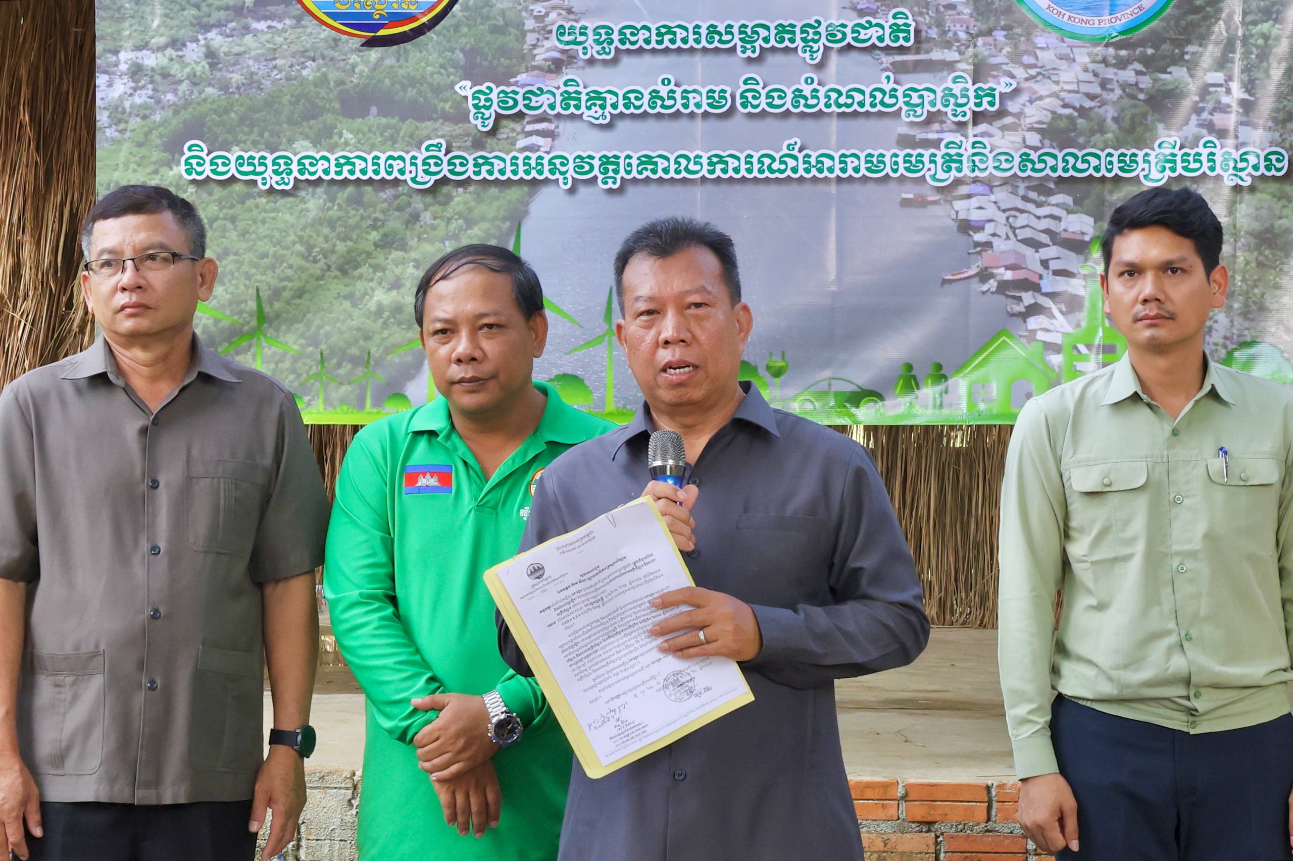 ពិធីនេះមានរៀបចំឡើងដោយអគ្គនាយកដ្ឋានចំណេះដឹង និងព័ត៌មានបរិស្ថាន ក្រសួងបរិស្ថាន សហការជាមួយរដ្ឋបាលខេត្ត និងមន្ទីរបរិស្ថានខេត្តកោះកុង ដោយមានការចូលរួមពីថ្នាក់ដឹកនាំ មន្រ្តីរាជការ តំណាងរដ្ឋបាលខេត្តកោះកុង រដ្ឋបាលស្រុក អាជ្ញាធរមូលដ្ឋានកងកម្លាំងប្រដាប់អាវុធ យុវជន លោកគ្រូអ្នកគ្រូ សិស្សានុសិស្ស និងប្រជាពលរដ្ឋជាច្រើននាក់ ដើម្បីទទួលបានចំណេះដឹងស្តីពីភាពស្អាត បៃតង និងចីរភាពនៃយុទ្ធសាស្រ្តចក្រាវិស័យបរិស្ថាន ការជំរុញសកម្មភាពសម្អាតភូមិដ្ឋានជាប្រចាំ ការទុកដាក់សំរាមឱ្យបានត្រឹមត្រូវ ការផ្តល់សម្ភារអនាម័យ ស្បោងបរិស្ថាន និងធុងទឹកស្អាតចំណុះ ៥០០០លីត ជូនសាលារៀនចំនួន២ និងវត្តអារាម ចំនួន១។