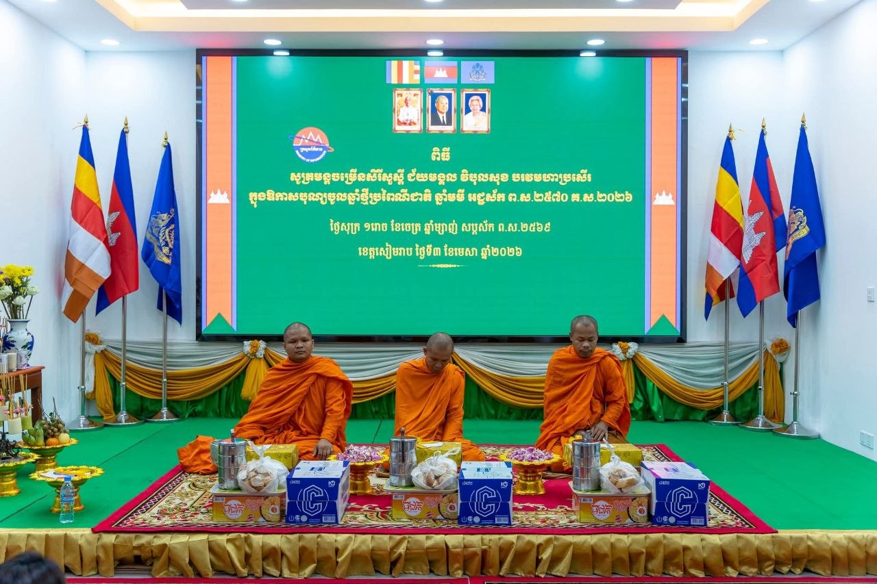(សៀមរាប)៖ មន្ទីរព័ត៌មានខេត្តសៀមរាប នៅថ្ងៃទី៣ ខែមេសា ឆ្នាំ២០២៦នេះ បានរៀបចំពិធីសូត្រមន្តចម្រើនព្រះបរិត្ត ប្រោសព្រំលើករាសី និងជួបសំណេះសំណាលជាមួយមន្ត្រីរាជការ ព្រមទាំងមន្ត្រីចូលនិវត្តន៍ ដើម្បីអបអរសាទរពិធីបុណ្យចូលឆ្នាំថ្មី ប្រពៃណីជាតិខ្មែរ ដែលនឹងឈានចូលមកដល់នាពេលឆាប់ៗខាងមុខនេះ។