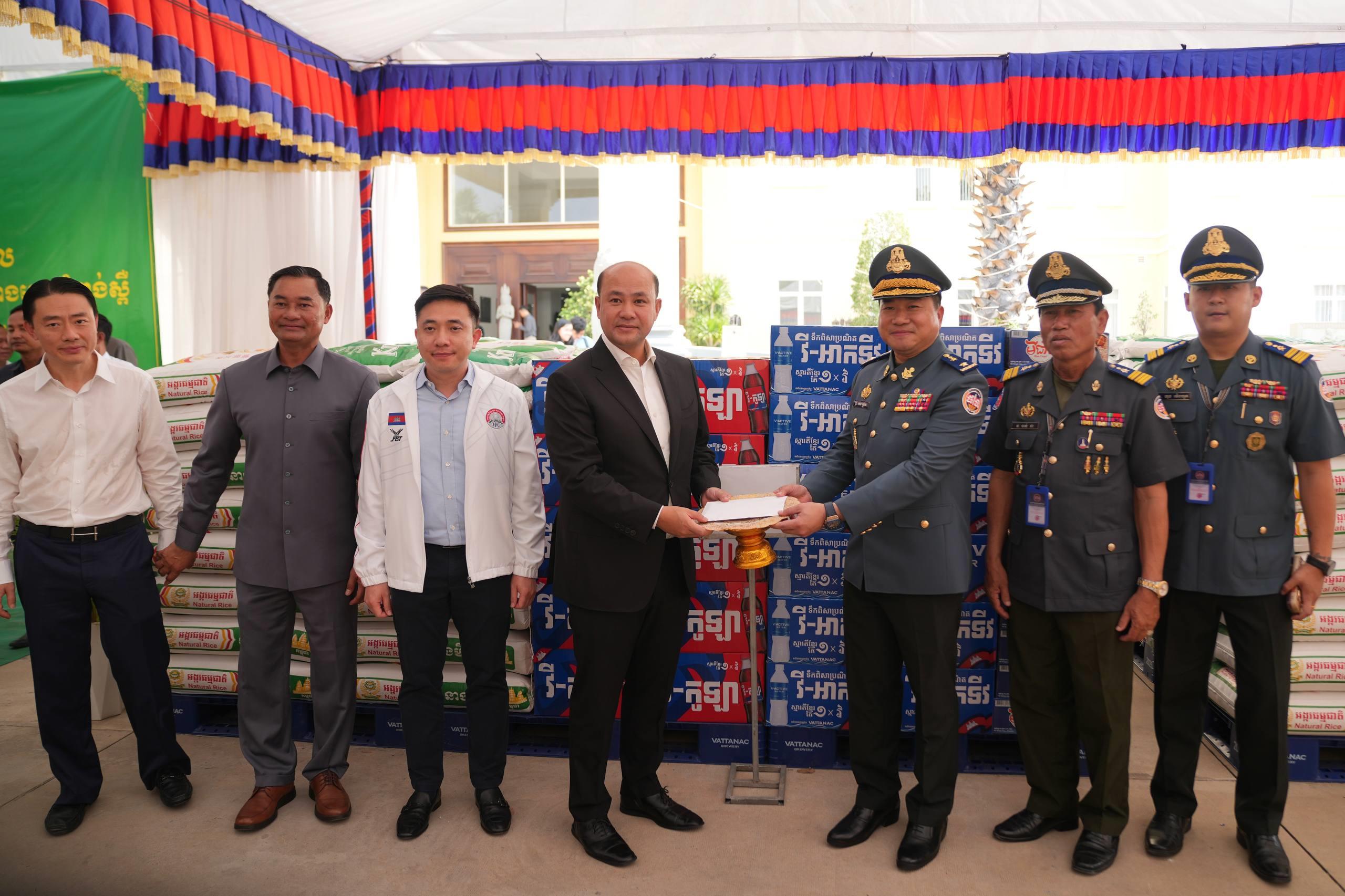 សូមជម្រាបថា អំណោយដែលត្រូវប្រគល់ជូនកងកម្លាំង នាឱកាសនោះ មួយអង្គភាពទទួលបាន អង្ករ៥តោន, មី១០០កេស, ទឹកសុទ្ធ១០០កេស, ភេសជ្ជៈ១០០កេស និងថវិកា១០លានរៀល ដែលជាអំណោយលោក ហ៊ុន ម៉ានី និងមានការចូលរួមចំណែកសម្ភារៈ ថវិកាបន្ថែមមួយចំនួនពីលោក សេង ញ៉ក់ តំណាងរាស្រ្ដមណ្ឌលខេត្តកំពង់ស្ពឺ និងអ្នកឧកញ៉ា សំអាង វឌ្ឍនៈផងដែរ៕