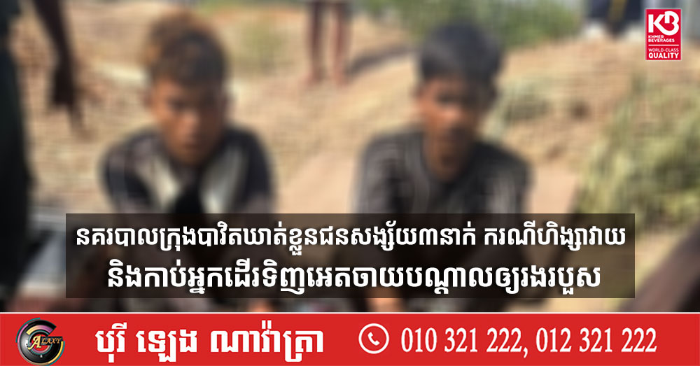 (ស្វាយរៀង)៖ នគរបាលក្រុងបាវិត បានឃាត់ខ្លួនជនសង្ស័យចំនួន៣នាក់ ពាក់ព័ន្ធករណីហិង្សាវាយ និងកាប់ប្រហារទៅលើអ្នកដើរទិញអេតចាយម្នាក់បណ្ដាលឲ្យរងរបួស។