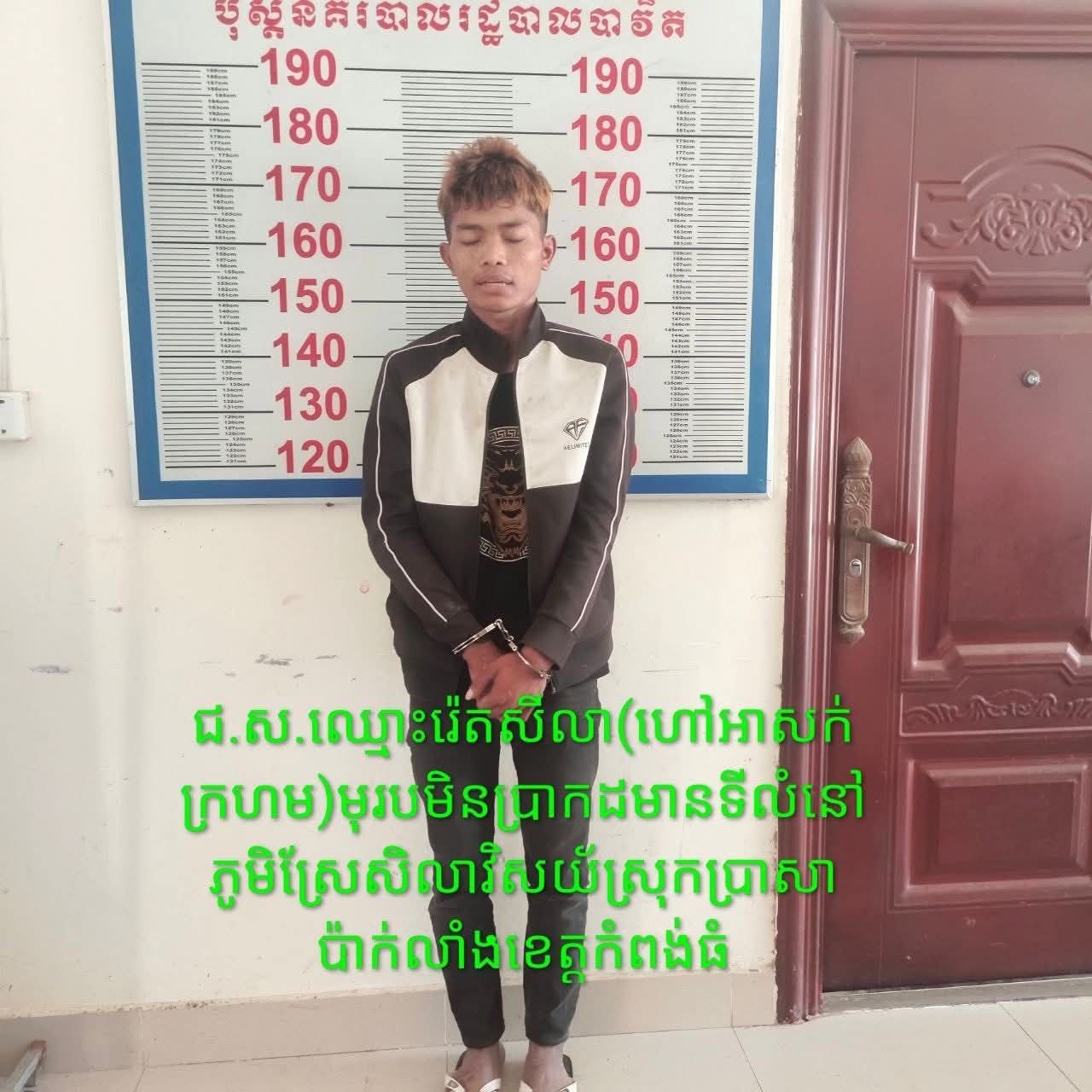 *ទី១៖ ឈ្មោះ រ៉េត សីលា (ហៅសក់ក្រហម) អាយុ២២ឆ្នាំ មុខរបរមិនប្រាកដ មានទីលំនៅភូមិស្រែ ឃុំសាលាវិសយ័ ស្រុកប្រាសាទបាល្ល័ង្គ ខេត្តកំពងធំ