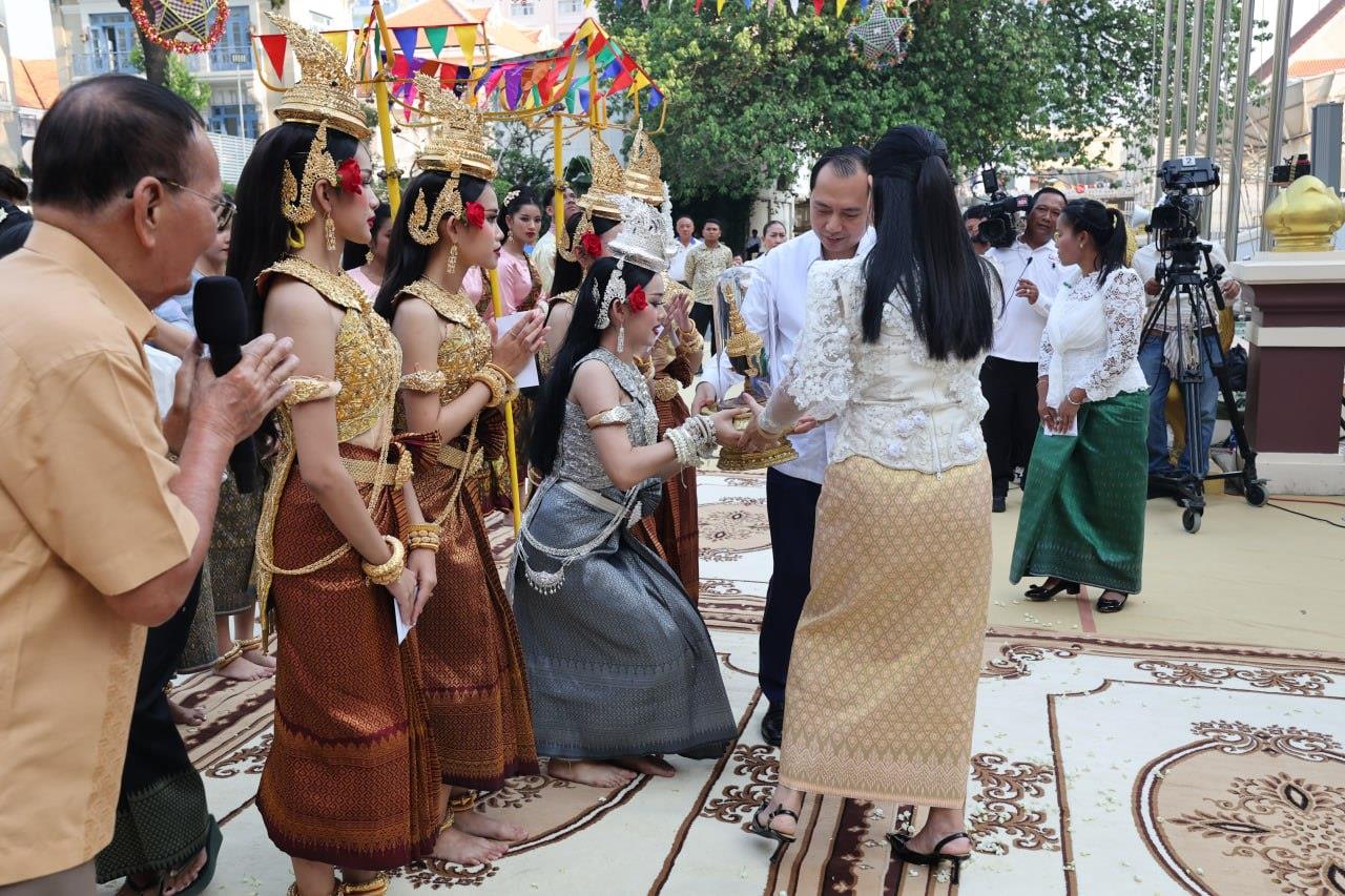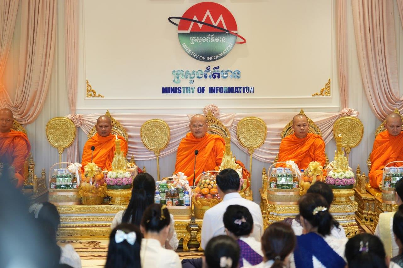 រដ្ឋមន្ត្រី នេត្រ ភក្ត្រា និងលោកស្រី ទុយ សិរីរតនៈ នេត្រភក្ត្រា រួមជាមួយមន្ត្រីរាជការនៃក្រសួងព័ត៌មាន ប្រារព្ធពិធីសូត្រមន្តសុំសេចក្តីសុខ សិរីសួស្តី ក្នុងឱកាសពិធីបុណ្យចូលឆ្នាំថ្មីប្រពៃណីជាតិខ្មែរ ២០២៦