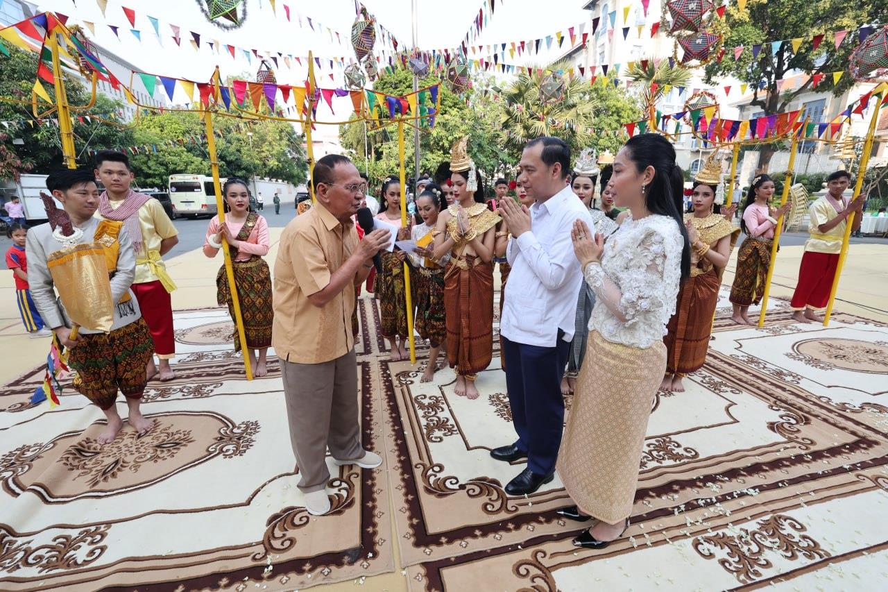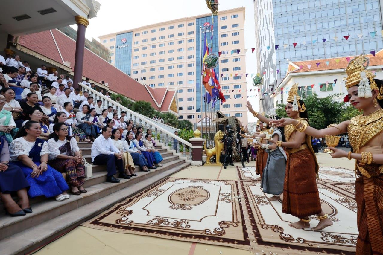 (ភ្នំពេញ)៖ ដើម្បីអបអរសាទរពិធីបុណ្យចូលឆ្នាំថ្មី ប្រពៃណីជាតិ ឆ្នាំមមី អដ្ឋស័ក ព.ស ២៥៧០ គ.ស ២០២៦ ដែលនឹងខិតជិតចូលមកដល់នាពេលខាងមុខនេះ នៅថ្ងៃទី០៣ ខែមេសា ឆ្នាំ២០២៦ លោក នេត្រ ភក្ត្រា រដ្ឋមន្ត្រីក្រសួងព័ត៌មាន និងលោកស្រី ទុយ សិរីរតនៈ នេត្រភក្ត្រា ប្រធានកិត្តិយសនៃសាខាសមាគមនារីកម្ពុជា ដើម្បីសន្តិភាព និងអភិវឌ្ឍន៍ ក្រសួងព័ត៌មាន ព្រមទាំងថ្នាក់ដឹកនាំ មន្ត្រីរាជការនៃក្រសួងព័ត៌មាន បានប្រារព្ធពិធីសូត្រមន្តអបអរសាទរឆ្នាំថ្មីប្រពៃណីជាតិខ្មែរ ដើម្បីសុំសេចក្តីសុខ សិរីសួស្តី។