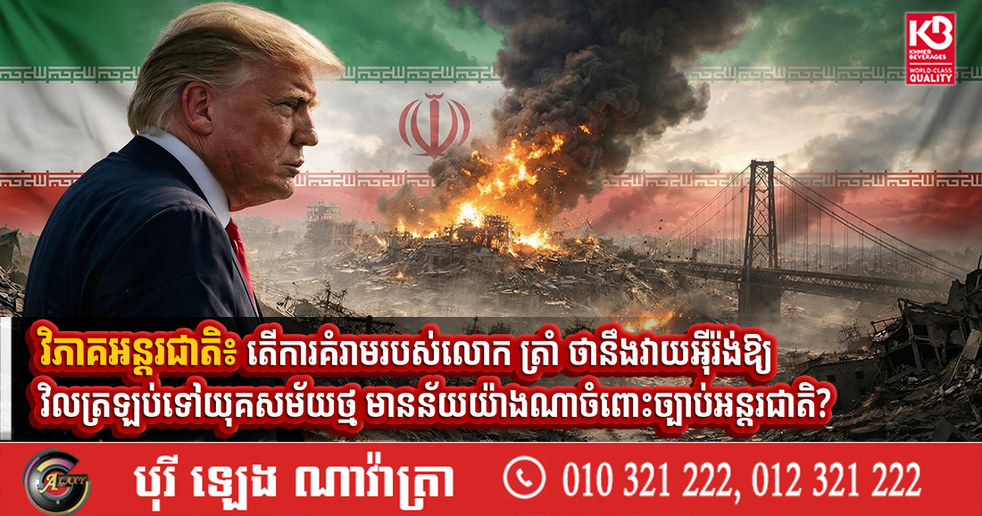 (វ៉ាស៊ីនតោន)៖ ប្រធានាធិបតីអាមេរិក លោក ដូណាល់ ត្រាំ កាលពីថ្ងៃពុធ ទី១ ខែមេសា ឆ្នាំ២០២៦ បានគំរាមកម្ទេចបណ្ដាញអគ្គិសនីសាជាថ្មី និងទម្លាក់គ្រាប់បែករហូតដល់ធ្វើឱ្យអ៉ីរ៉ង់ដែលមាន ប្រជាជន៩០លាននាក់វិលត្រឡប់ទៅយុគសម័យថ្ម ពោលគឺវាយឱ្យអ៉ីរ៉ង់អស់រលីងពីខោតែម្ដង។ នៅថ្ងៃព្រហស្បតិ៍ ទី២ ខែមេសា លោក ត្រាំ បានបង្ហោះសារឌឺដងផ្លែផ្កា និងអួតពីការវាយកម្ទេច បំផ្លាញស្ពានខ្ពស់ជាងគេបំផុតមួយក្នុងប្រទេសអ៉ីរ៉ង់ និងថែមទាំងព្រមានទៀតផងថាការបំផ្លិចបំផ្លាញនឹងបន្តកើតឡើង រហូតទាល់តែអ៉ីរ៉ង់ត្រឡប់ទៅរកតុចរចាដើម្បីបិទបញ្ចប់សង្រ្គាម អូសបន្លាយពេល ៥សប្ដាហ៍មកនេះ។