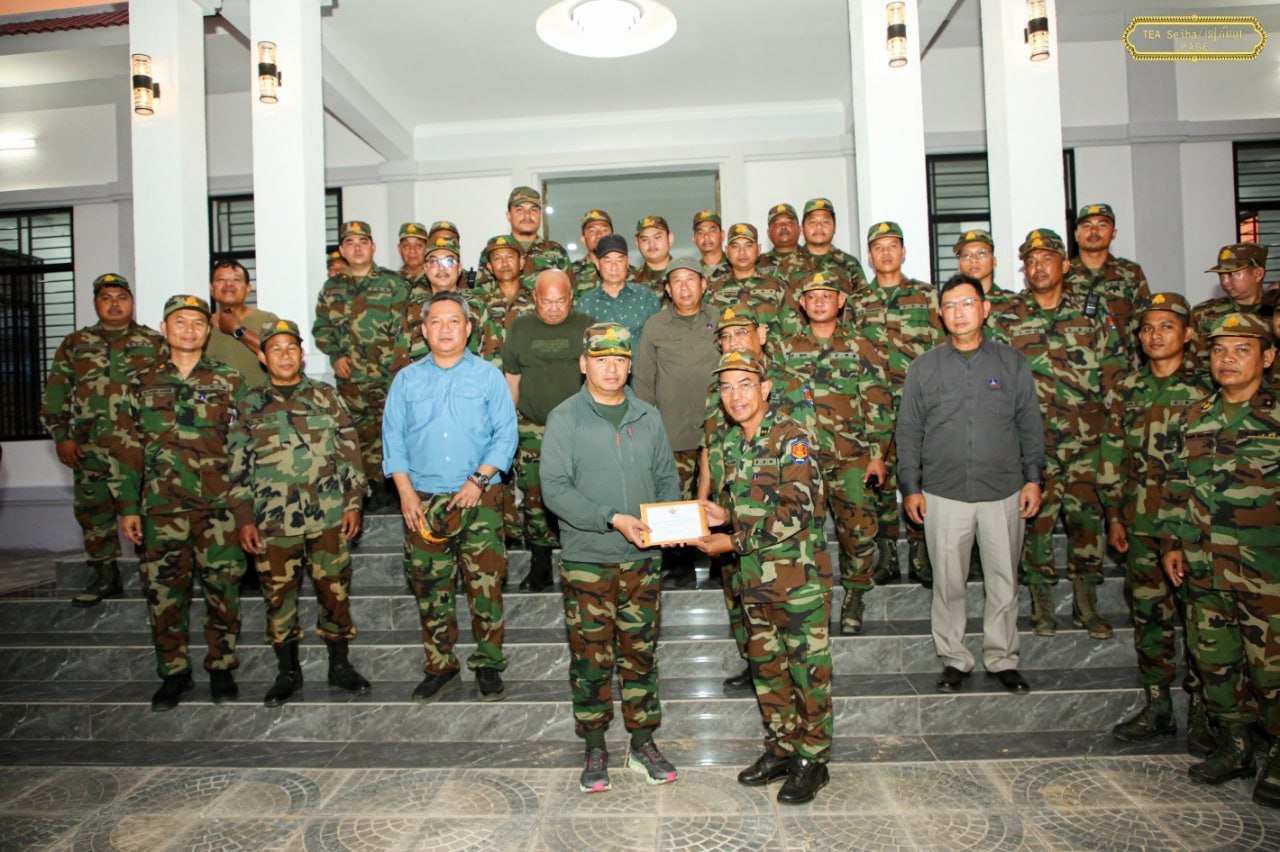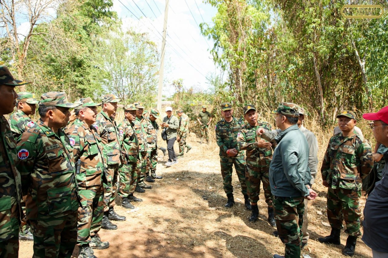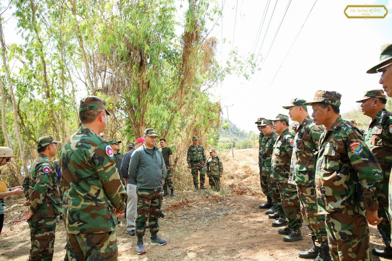 (ព្រំដែន)៖ នាយឧត្តមសេនីយ៍ ទៀ សីហា ឧបនាយករដ្ឋមន្ត្រី រដ្ឋមន្ត្រីក្រសួងការពារជាតិ នៅថ្ងៃទី៤ ខែមេសា ឆ្នាំ២០២៦នេះ បានចុះសួរសុខទុក្ខ និងជូនពរជ័យសិរីសួស្តីដល់យោធិនដែលកំពុងបំពេញបេសកកម្មដ៏ឧត្តុង្គឧត្តមក្នុងការការពារបូរណភាពទឹកដី នៅសមរភូមិមុខតាមបណ្តោយព្រំដែនកម្ពុជា-ថៃ នៅទិសយោធភូមិភាគទី៥ ក្នុងភូមិសាស្រ្តខេត្តបន្ទាយមានជ័យ ខេត្តបាត់ដំបង ក្នុងឱកាសនៃបុណ្យចូលឆ្នាំថ្មី ប្រពៃណីជាតិ ឆ្នាំមមី អដ្ឋស័ក ពុទ្ធសករាជ ២៥៧០ ដែលនឹងឈានមកដល់នៅពេលខាងមុខ។