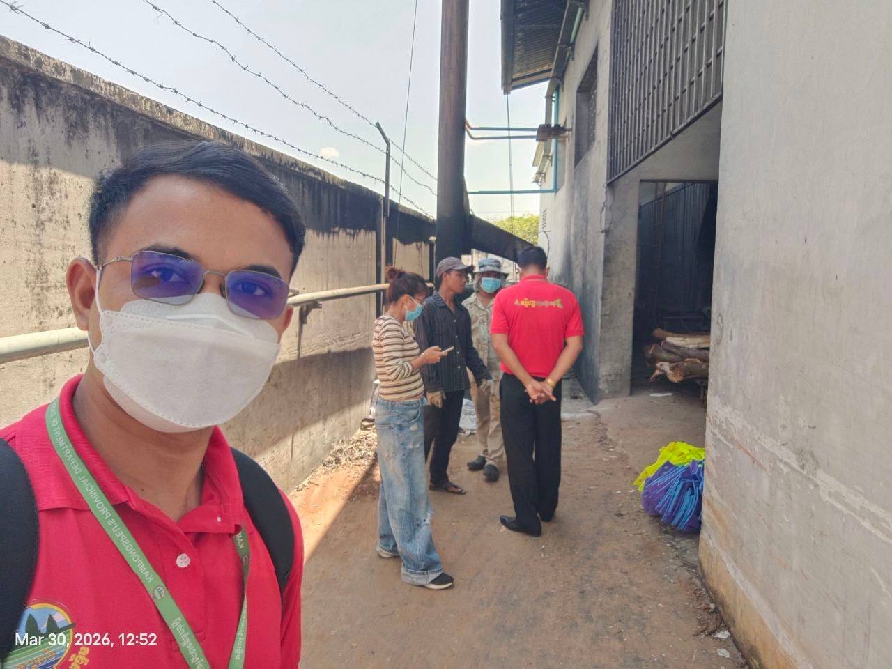 ក្នុងពេលបេសកម្មចុះពិនិត្យករណីរោងចក្រដំណាប់ស្វាយដែលមានរូបភាព បានចុះផ្សាយនេះ គឺជារូបភាពមន្ត្រីកំពុងសសេរកំណត់ហេតុ និងធ្វើការណែនាំ ដល់ម្ចាស់រោងចក្រឱ្យទទួលខុសត្រូវក្នុងការរៀបចំគ្រប់គ្រងសំរាម សំណល់រឹង-រាវ ឱ្យបានត្រឹមត្រូវតាមបច្ចេកទេស ដោយមន្ត្រីបានអនុវត្តតាមតួនាទី ភារកិច្ចស្របតាមលិខិតបទដ្ឋានគតិយុត្តជាធរមាន ក្រមបរិស្ថាន និងធនធានធម្មជាតិដល់ប្រជាពលរដ្ឋ រោងចក្រ សហគ្រាស គ្រប់គ្រឹះស្ថាន ព្រមទាំងចុះពិនិត្យ ដោះស្រាយរាល់ការបំពុលដល់សាធារណជន បរិស្ថាន និងសង្គម ធានាបាននូវសុខភាពសាធារណៈ បរិស្ថានស្អាតល្អ និងទទួលបាននូវទេសចរណ៍ជាតិ អន្តរជាតិ ជា ការអភិវិឌ្ឍរីកចម្រើនប្រកបដោយចីរភាព។