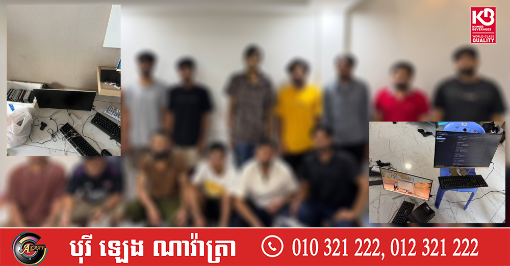 ឃាត់ខ្លួនជនជាតិបរទេសចំនួន ១៤នាក់ ក្នុងបុរីកំបូលស៊ីធី ពាក់ព័ន្ធការស្នាក់នៅខុសច្បាប់ និងសង្ស័យបង្កប់បទល្មើស Online Scam