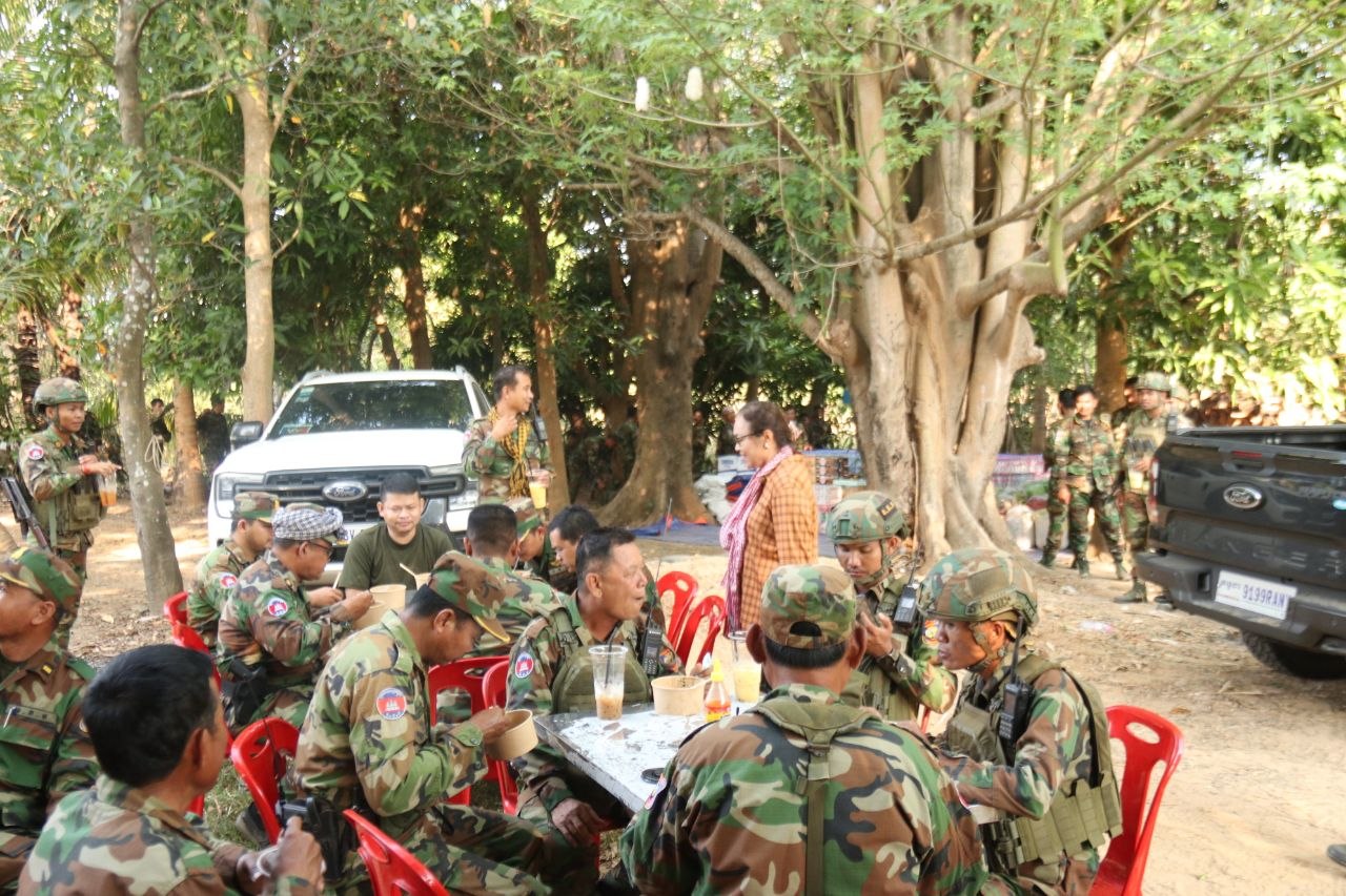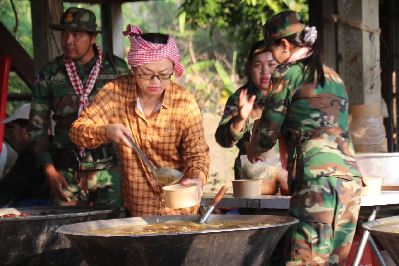 ក្នងដំណើរនេះដែរ លោកស្រី ចាយ ច័ន្ទរ៉ានី និងក្រុមការងារកងពល បានរៀបចំធ្វើស៊ុបគោ គុយទាវ ក្តៅៗ ដោយផ្ទាល់ដៃដ៏មានឱជារសជូនដល់បងប្អូនកងទ័ពកងពលតូចអន្តរាគមន៍លេខ៤ ពិសារនាពេលព្រឹកព្រលឹម រួមទាំងកាហ្វេ និងភេសជ្ជៈថែមទៀតផង។ ក្រៅពីស៊ុបគោ គុយទាវ ក្តៅៗ និងភេសជ្ជៈទាំងនោះ លោកស្រី ក៏បាននាំយកគ្រឿងឧបភោគបរិភោគនិងស្បៀងបម្រុងជាច្រើនរួមមានសាច់គោ សាច់ជ្រូក ត្រី បន្លែស្រស់ៗជាច្រើនមុខ និងថវិកាចំនួន ២.០០០.០០០រៀល ជូនវីរកងទ័ពជួរមុខយើង។
