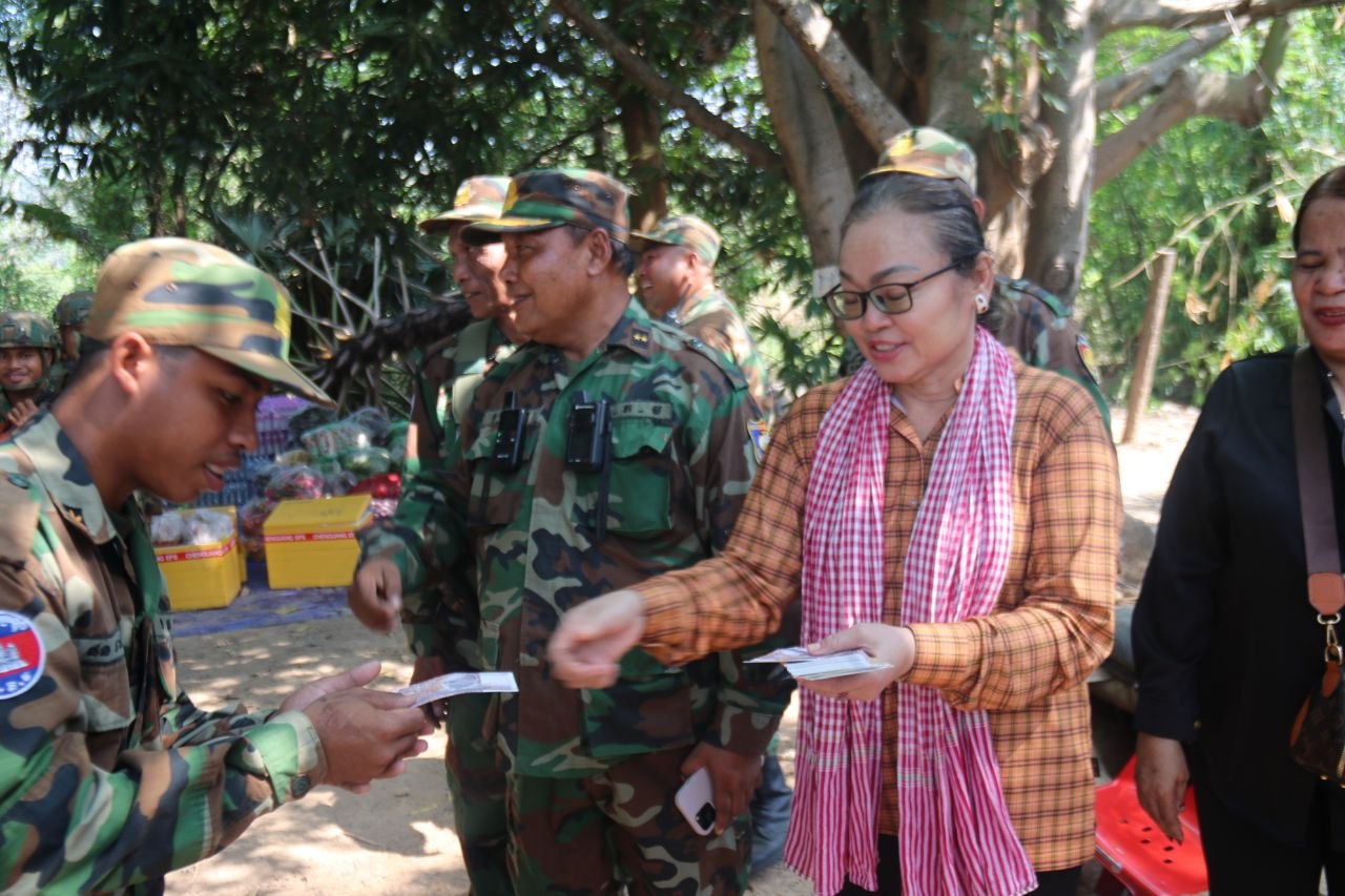 (ភ្នំពេញ)៖ ក្នុងស្មារតីខ្មែរតែមួយ ស្មារតីសាមគ្គីភាព ដោយក្តីនឹករលឹក និងការដឹងគុណយ៉ាងជ្រាលជ្រៅចំពោះការលះបង់ដ៏ធំធេងរបស់វីរកងទ័ពជួរមុខនៅព្រឹកថ្ងៃទី៥ ខែមេសា ឆ្នាំ២០២៦នេះ លោកស្រី ចាយ ច័ន្ទរ៉ានី ភរិយា ឧត្តមសេនីយ៍ទោ ហ៊ុល សំអុន មេបញ្ជាការកងពលតូចដឹកជញ្ជូនលេខ៩៩ បានដឹកនាំកងទ័ពធ្វើដំណើរទៅកាន់សមរភូមិមុខជាលើកទី១៥ ដើម្បីចុះសួរសុខទុក្ខក្នុងឱកាសបុណ្យចូលឆ្នាំប្រពៃណីខ្មែរ ដែលនឹងខិតជិតមកដល់នាពេលខាងមុខ និងសម្តែងការគោរពដឹងគុណចំពោះវីរភាពរបស់កងទ័ព កងពលតូចអន្តរគមន៍លេខ៤ ចំណុះកងពលធំអន្តរាគមន៍លេខ២ ដែលកំពុងឈរជើងការពារបូរណភាពទឹកដីតាមបន្ទាត់ព្រំដែនកម្ពុជា-ថៃ។
