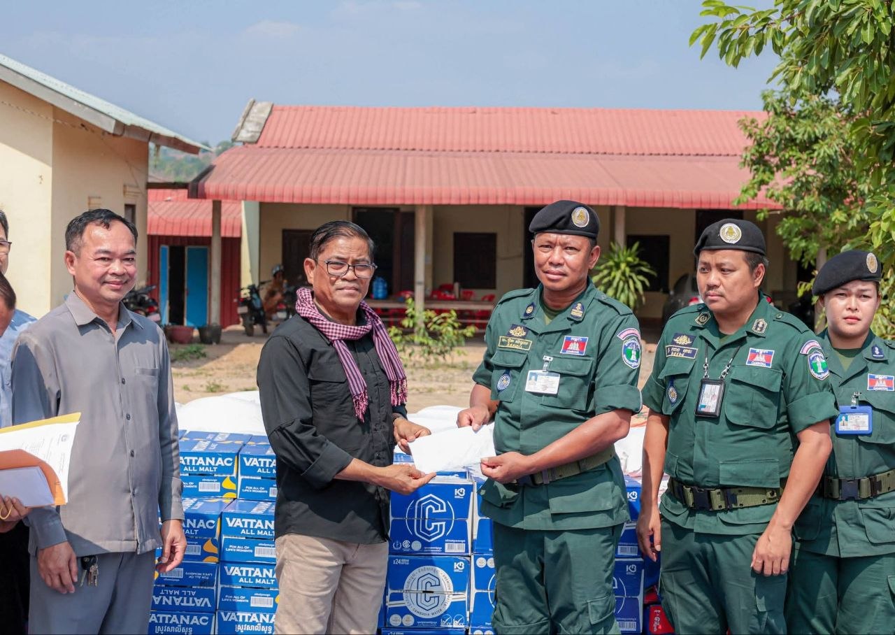 (រតនគិរី)៖ ក្នុងឱកាស នៃពិធីបុណ្យចូលឆ្នាំថ្មីប្រពៃណីជាតិខ្មែរ ឆ្នាំមមី អដ្ឋស័ក ព.ស២៥៧០ គស២០២៦ ដែលនឹងឈានមកដល់នាពេលខាងមុខនេះ លោកញ៉ែម សំអឿន អភិបាលខេត្តរតនគិរី និងជាប្រធានគណៈបញ្ជាការឯកភាពខេត្ត អមដំណើរដោយ អភិបាលរងខេត្ត មេបញ្ជាការកងកម្លាំងទាំង៣ និងប្រធានមន្ទីរ អង្គភាពជុំវិញខេត្ត នៅថ្ងៃទី៤ ខែមេសា ឆ្នាំ២០២៦ បានអញ្ជើញចុះជួបសំណេះសំណាលសួរសុខទុក្ខ និងនាំយកអំណោយ ប្រគល់ជូនកងកម្លាំងការពារព្រំដែន កម្ពុជា-វៀតណាម-ឡាវ ចំនួន ៥ អង្គភាព រួមមាន កម្លាំនគរបាលវរៈព្រំដែនគោគ លេខ២០៣ និងលេខ៦២៣, កម្លាំងវរៈយោធាការពារព្រំដែនគោគ លេខ១១៣, កម្លាំងមន្ត្រីឧទ្យាននុរក្សបរិស្ថាន និងកងកម្លាំងវិស្វកម្ម ស្ថាបនាផ្លូវក្រវាត់ព្រំដែន។