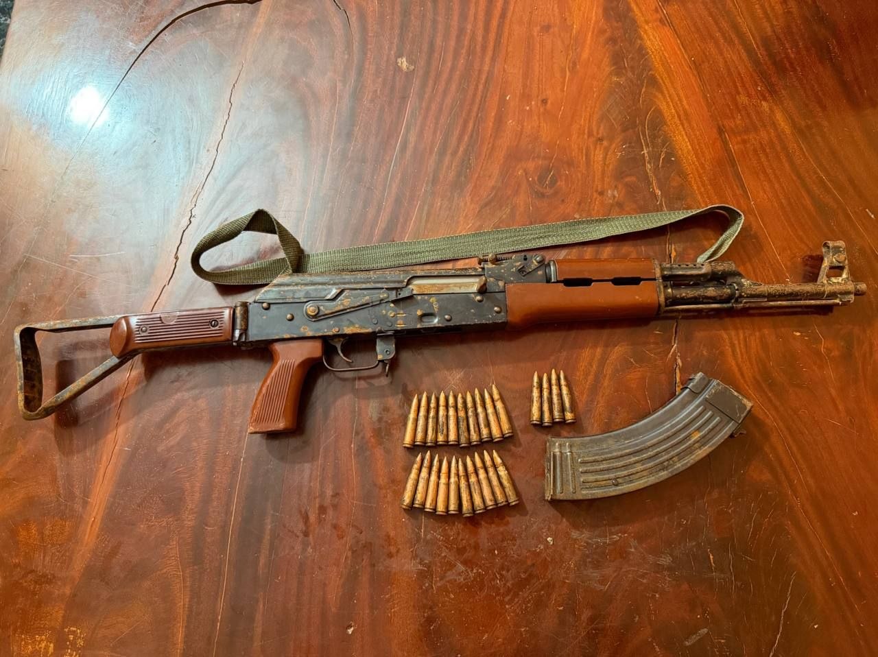 -អាវុធ AK ស្វាយបត់ ចំនួន១ដើម បង់កាំភ្លើងចំនួន១ គ្រាប់កាំភ្លើងចំនួន២៤គ្រាប់