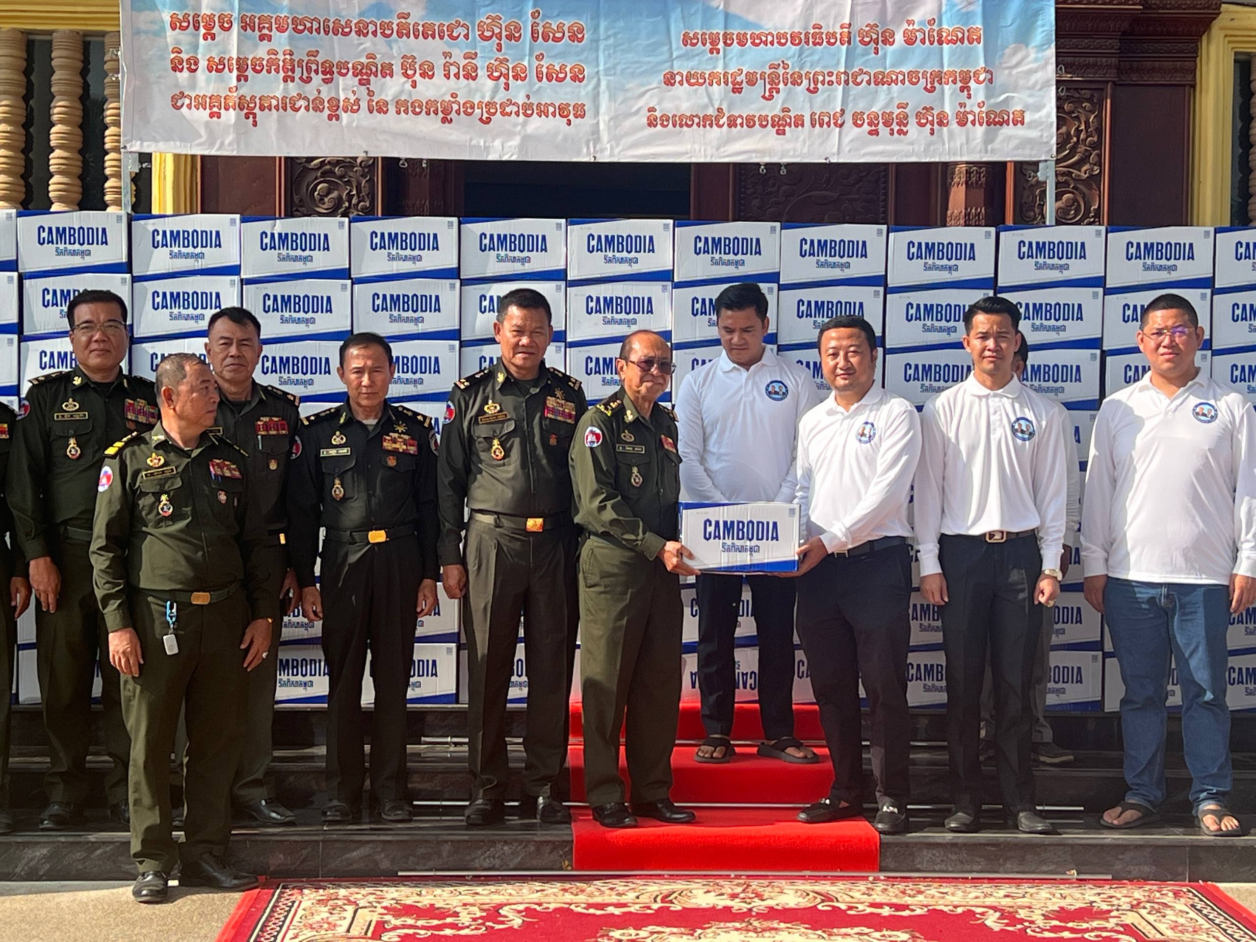 (ភ្នំពេញ)៖ លោក កែវ ផុង ជំនួយការផ្ទាល់សម្តេចតេជោ ហ៊ុន សែន ប្រធានព្រឹទ្ធសភា និងជាប្រធានក្រុមសេនាតេជោសន្តិភាព នៅថ្ងៃទី០៦ ខែមេសា ឆ្នាំ២០២៦ បាននាំយកទឹកបរិសុទ្ធចំនួន ២០០០កេស ជូនដល់បញ្ជាការដ្ឋានកងទ័ពជើងគោក ដើម្បីឧបត្ថម្ភដល់កងទ័ព ដែលបច្ចុប្បន្ននេះបាននិងកំពុងបំពេញបេសកកម្មការពារជាតិនៅសមរភូមិមុខ ក្នុងឱកាសបុណ្យចូលឆ្នាំថ្មី ឆ្នាំមមី អដ្ឋស័ក ពុទ្ធសករាជ ២៥៧០ ដែលនឹងឈានមកដល់នៅពេលខាងមុខ។